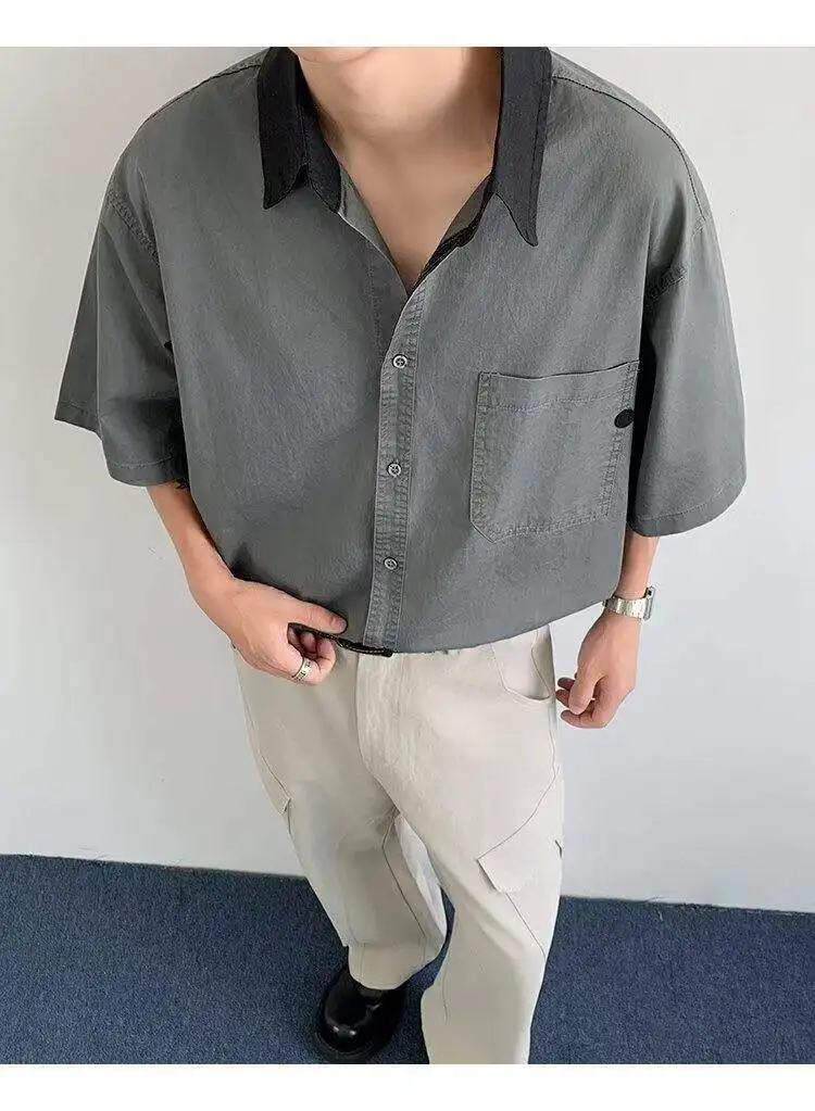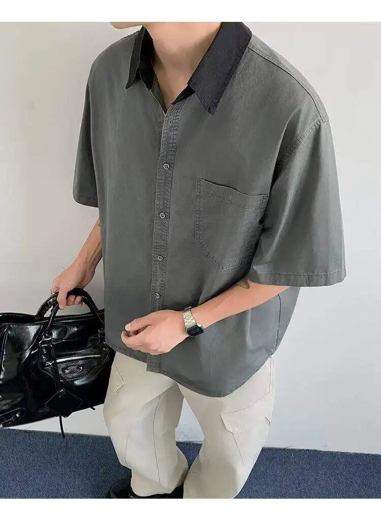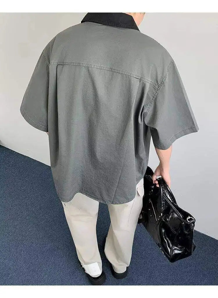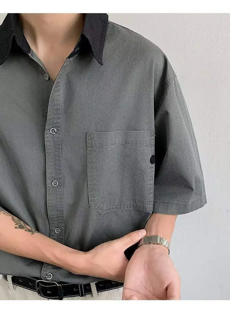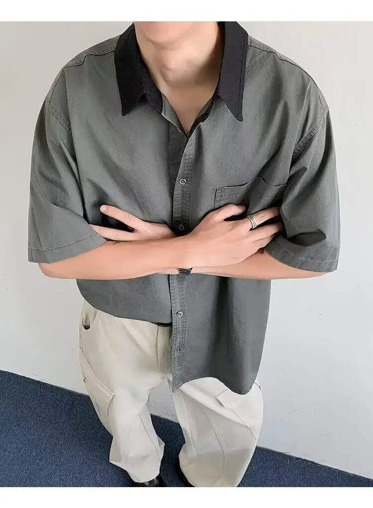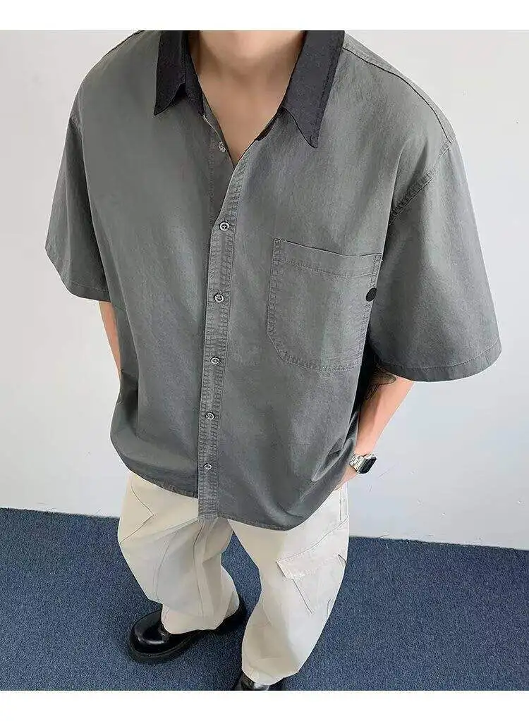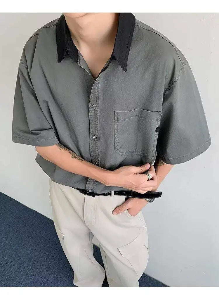 WIAOFELLAS  -  Niche Design Men's Shirts Turn-down Collar Contrast Color Pocket Short Sleeved Single Breasted Loose Male Clothing
