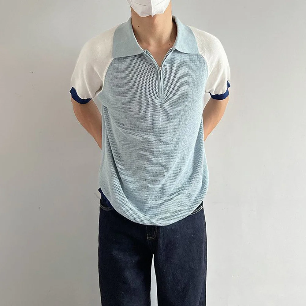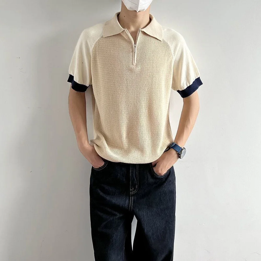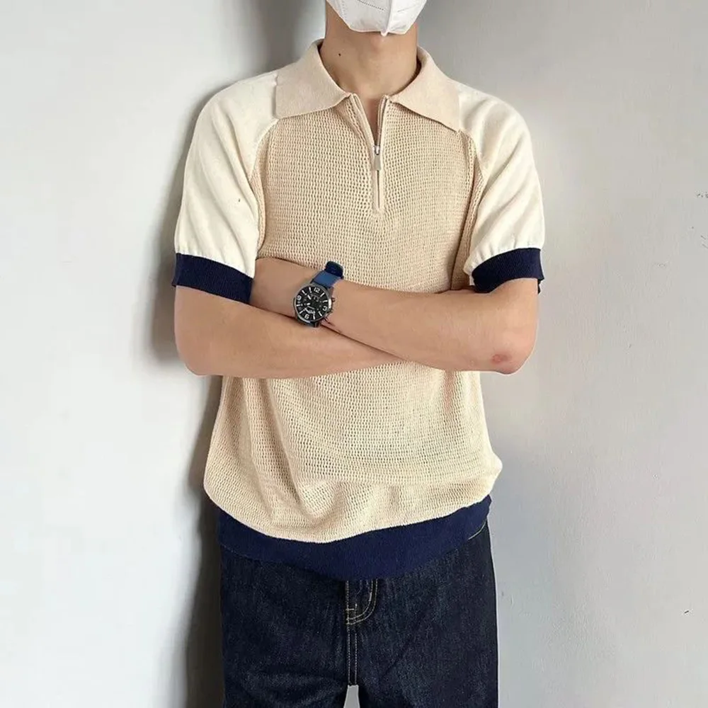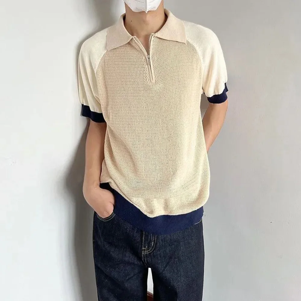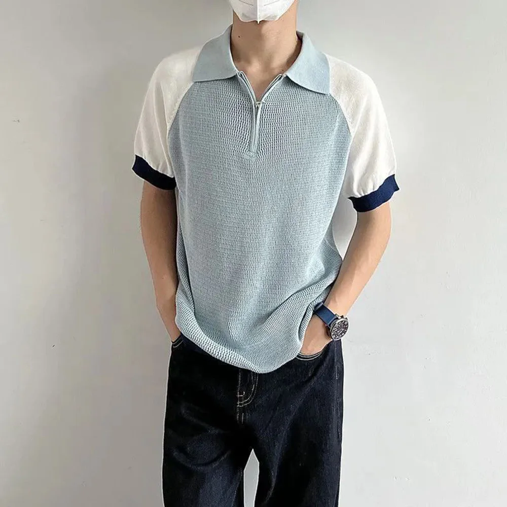WIAOFELLAS - Polo Shirt Retro Y2k Contrast Color Stitching T Shirts Youth Energy Trend Knitted Breathable Daily Summer Thin Short Sleeve Tops