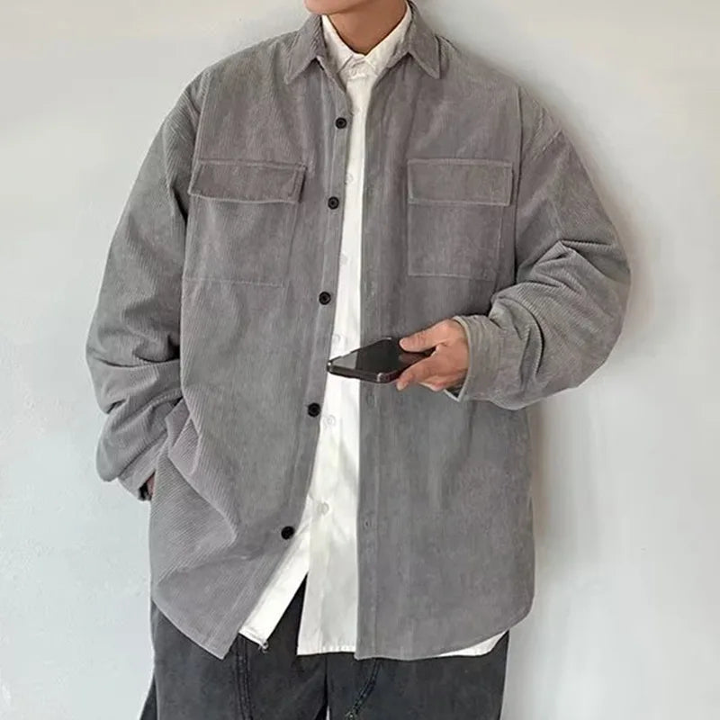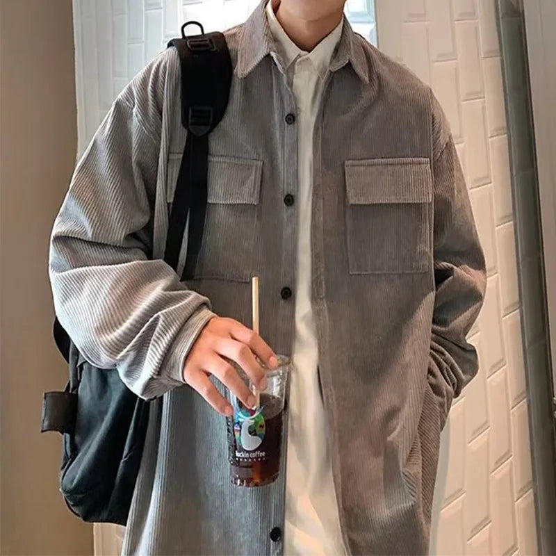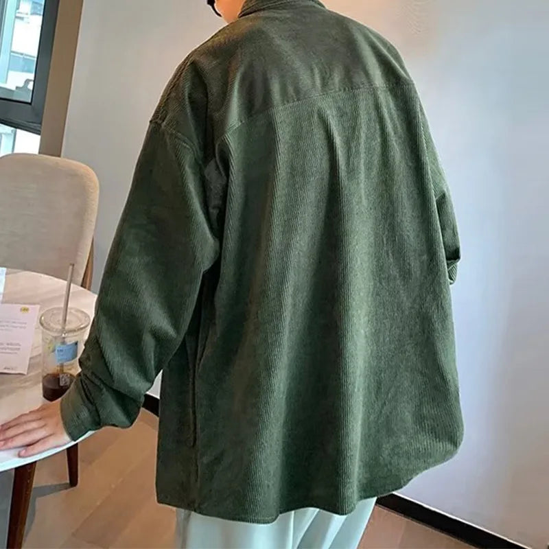 WIAOFELLAS - Retro Corduroy Shirt Men Loose Casual Workwear Jacket American Style Fashion