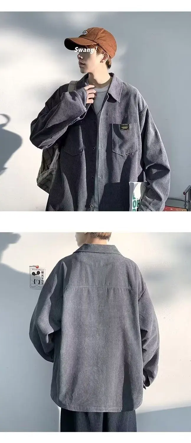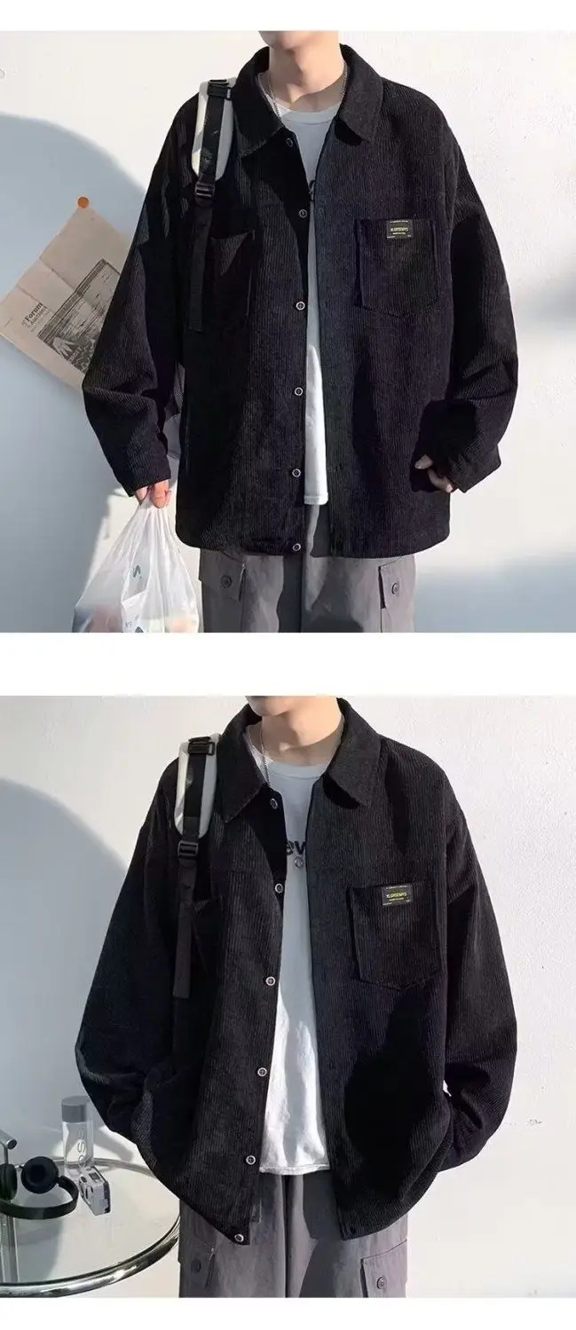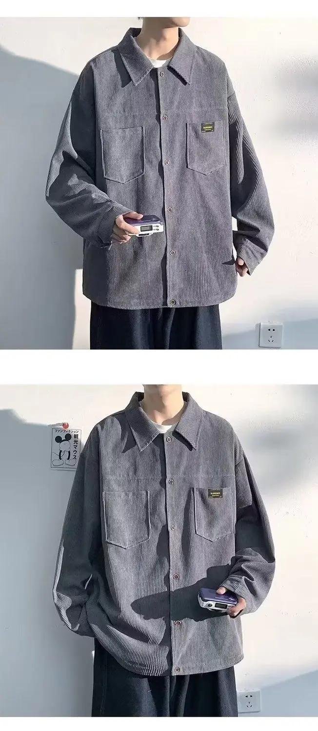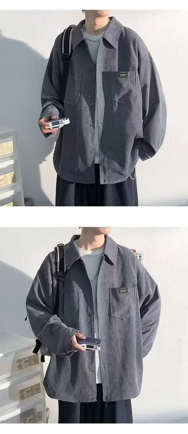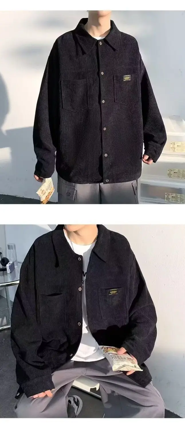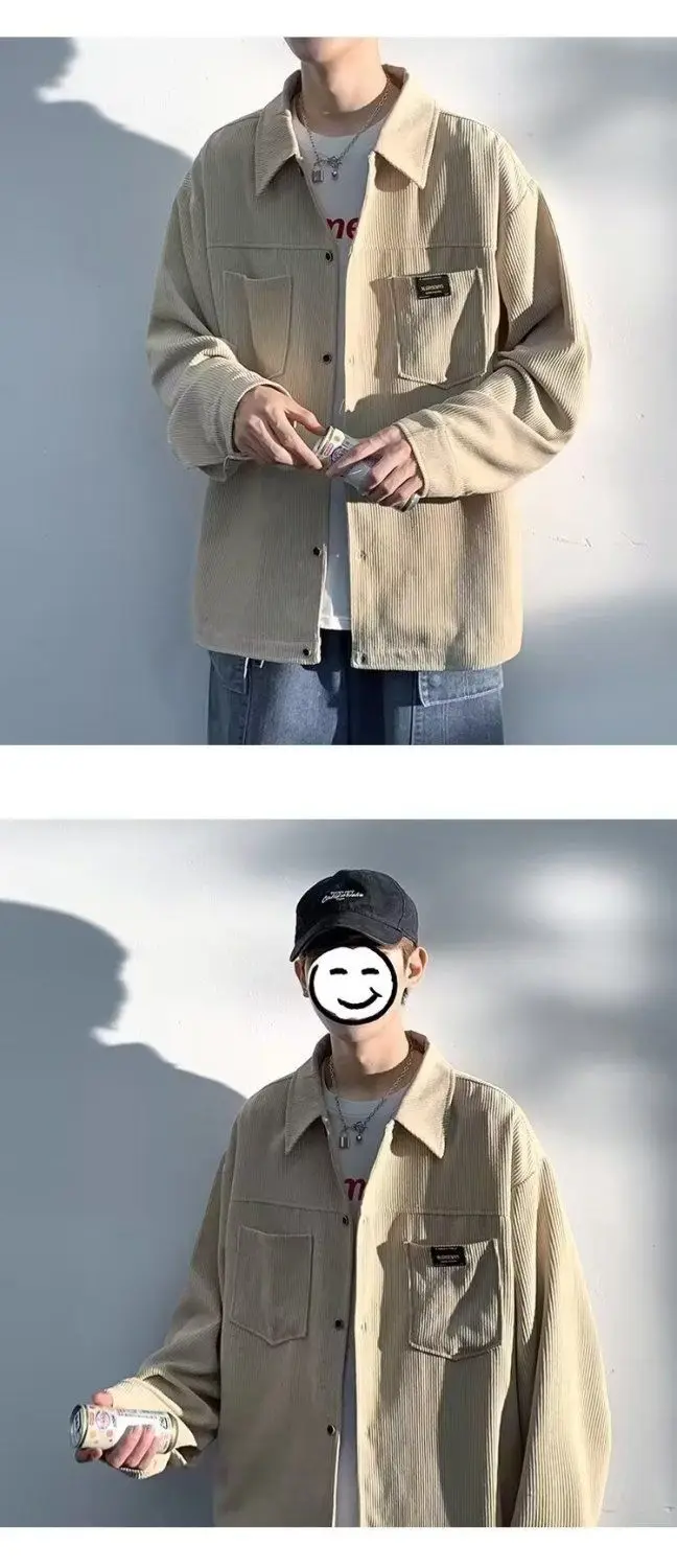 WIAOFELLAS - Retro Solid Color Lapel Jacket Men's Versatile Khaki Work Shirt
