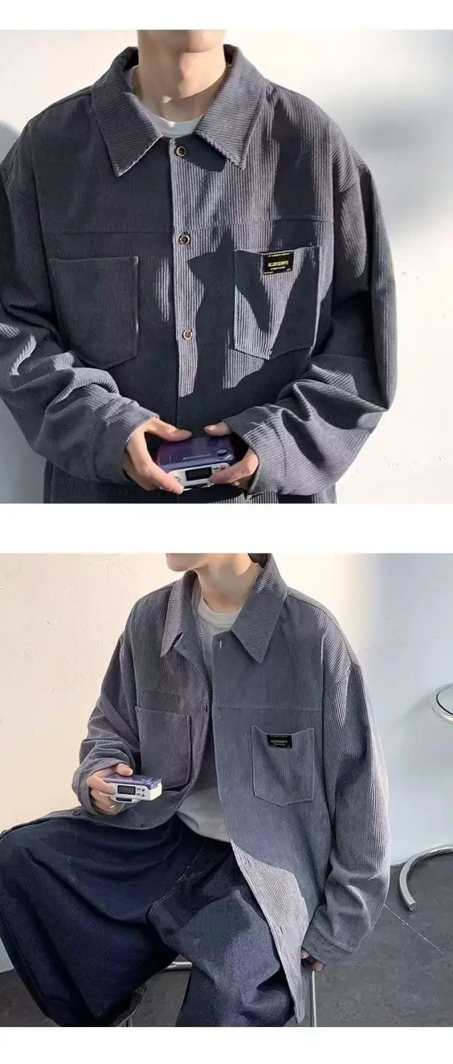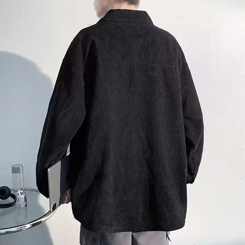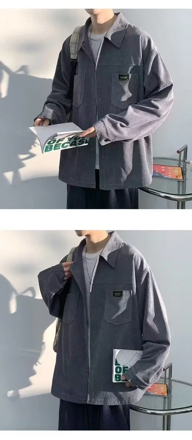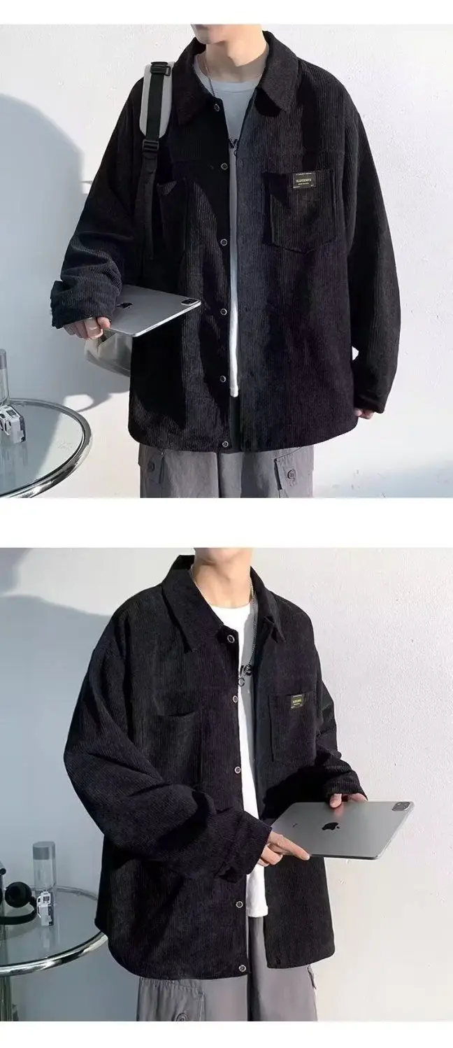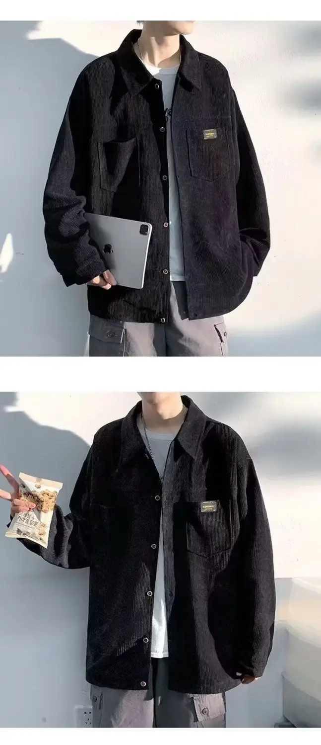 WIAOFELLAS - Retro Solid Color Lapel Jacket Men's Versatile Khaki Work Shirt