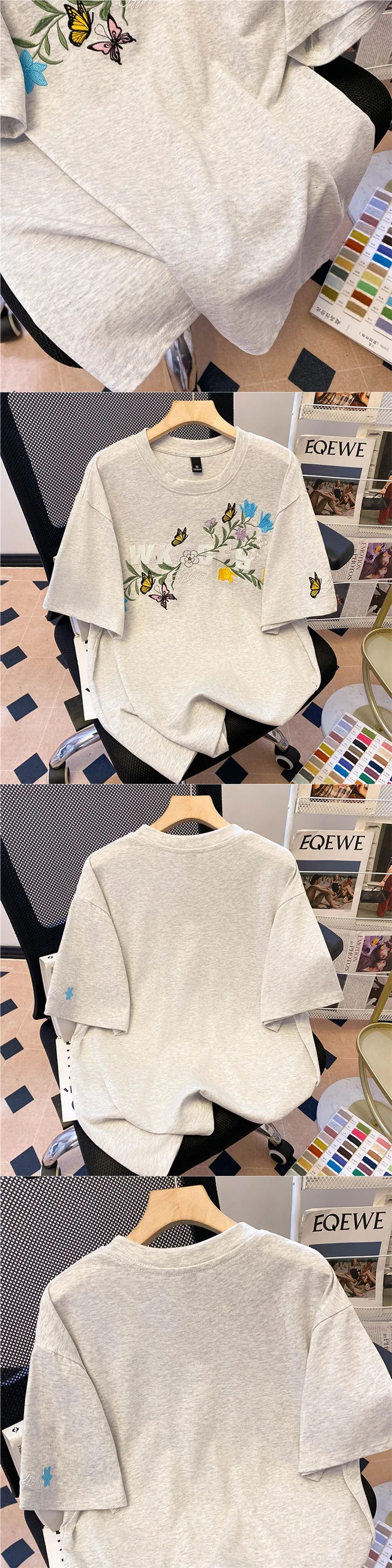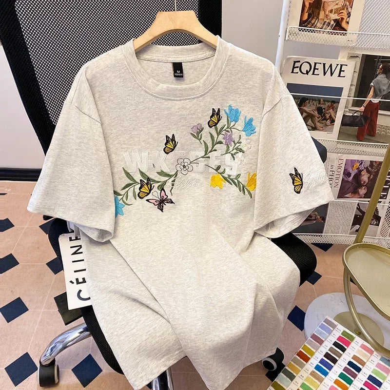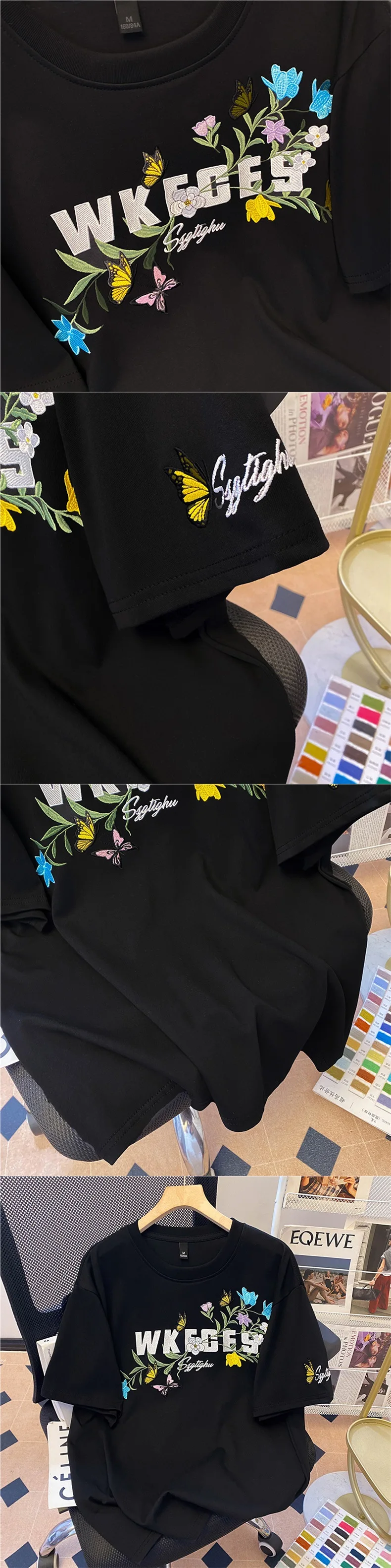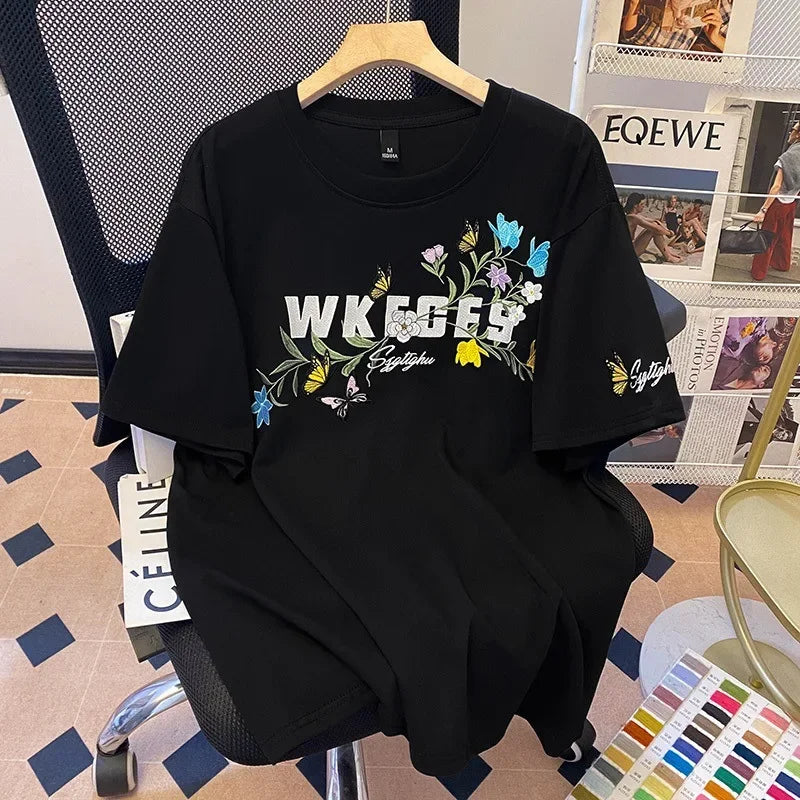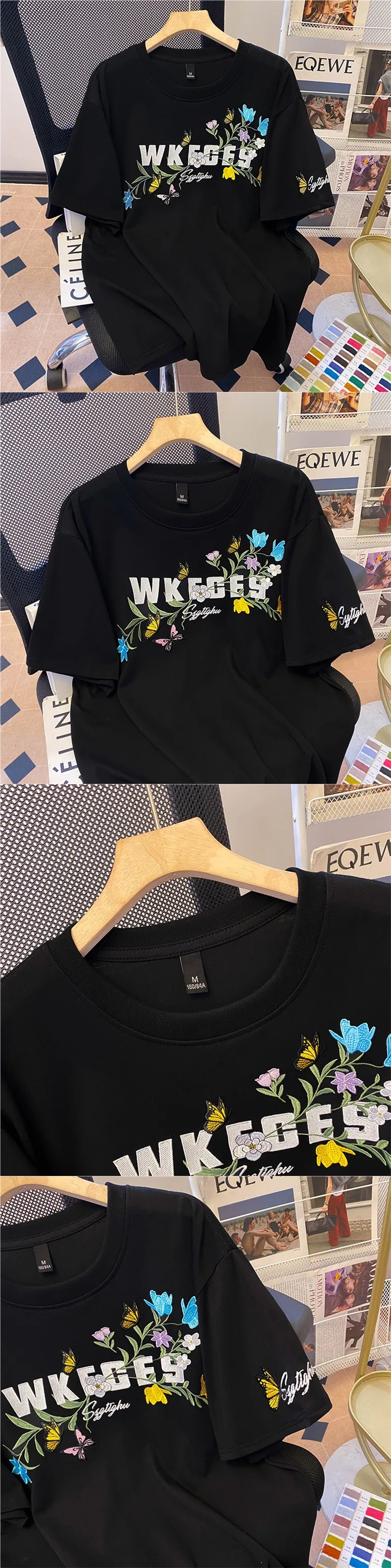 WIAOFELLAS - Short Sleeve T-Shirt Men Summer New Fashion Embroidery Shoulder round Neck Top Women Stylish Versatile Ins Crew Neck Tee