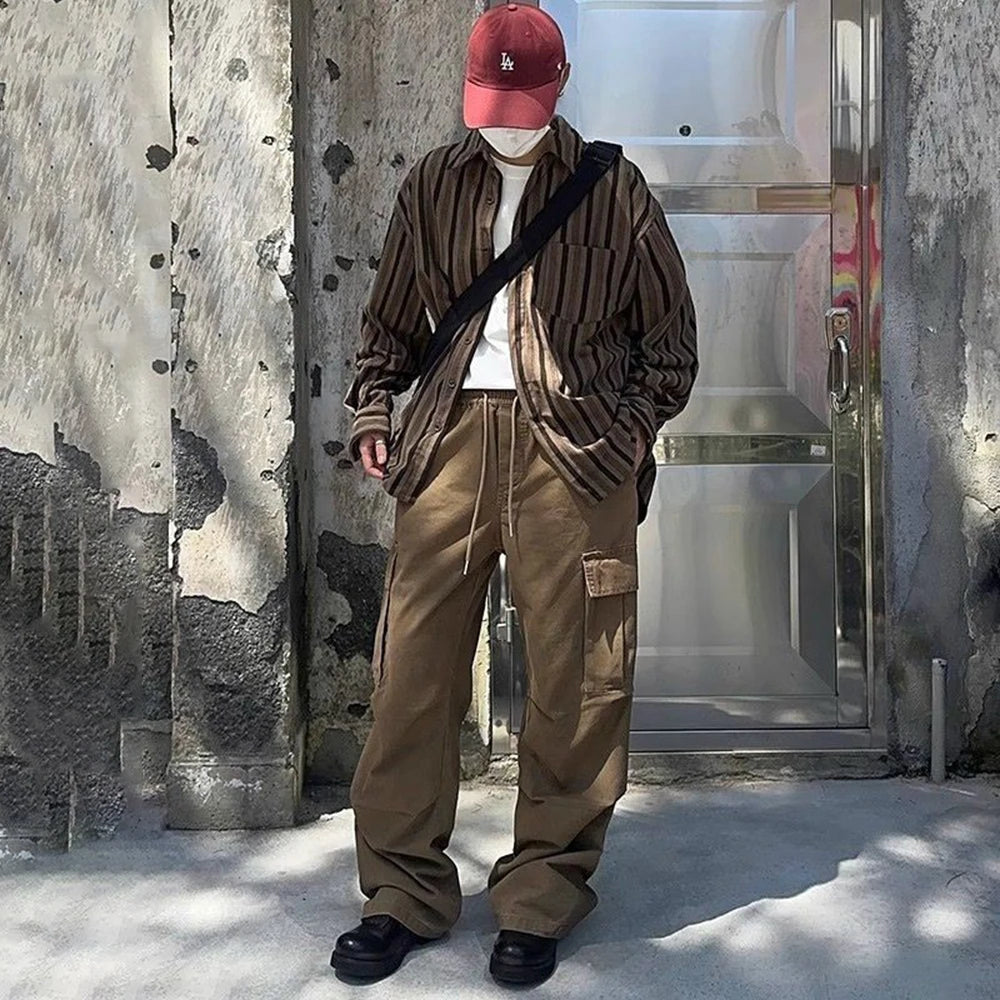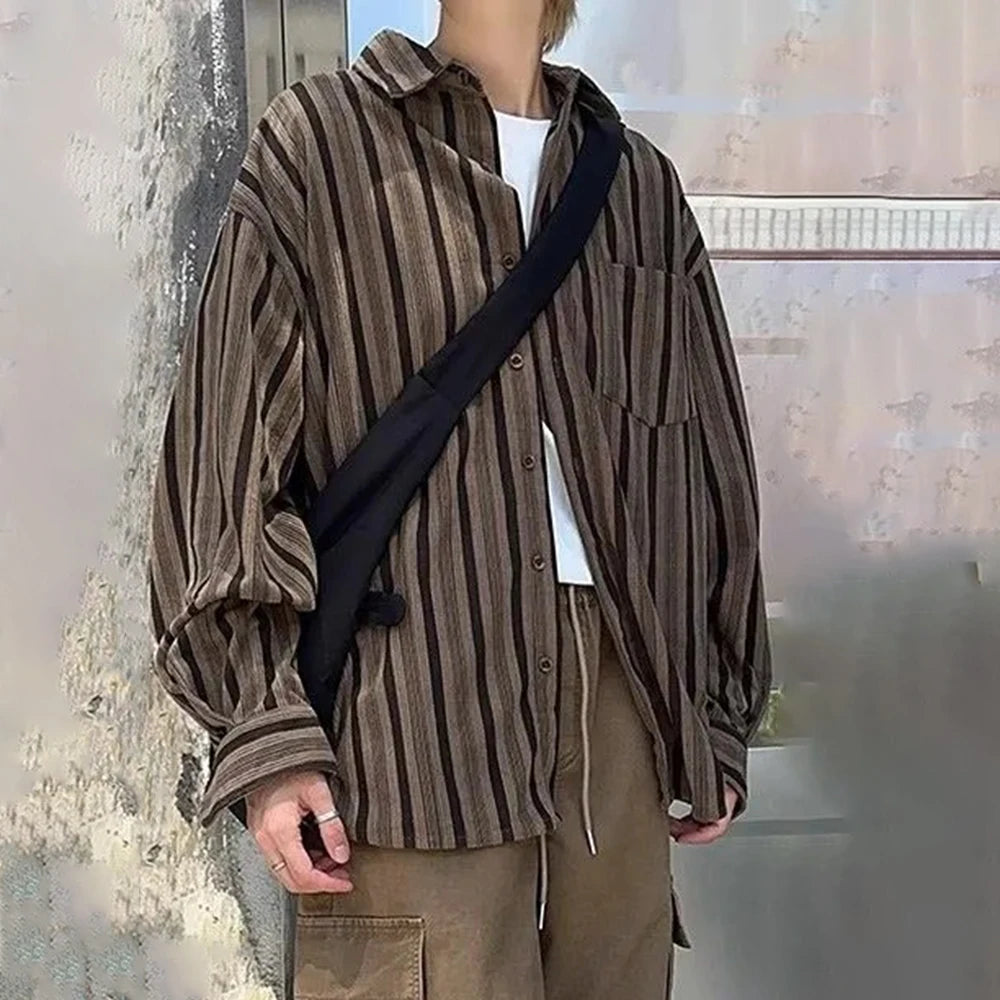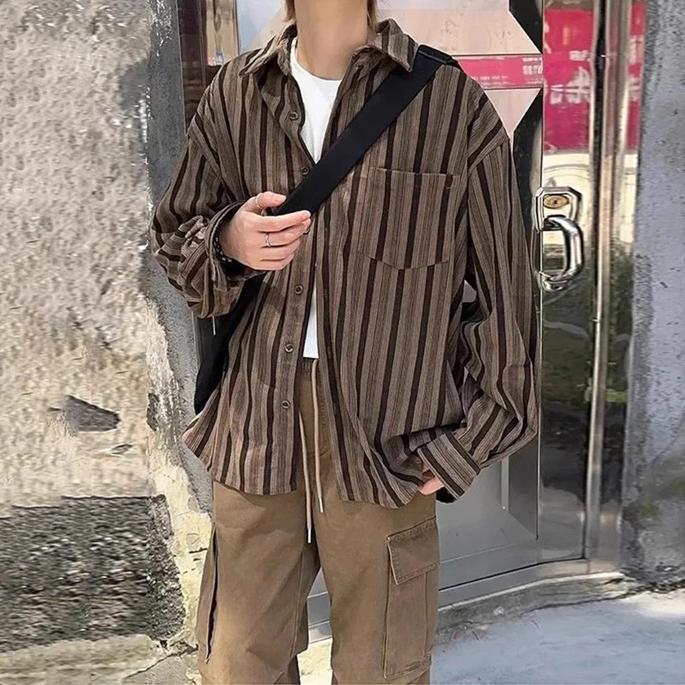 WIAOFELLAS  -  Spring and Autumn Fashion Loose Shirt Men's American Street Silhouette Retro College Style Handsome Y2K Long Sleeve Top Men