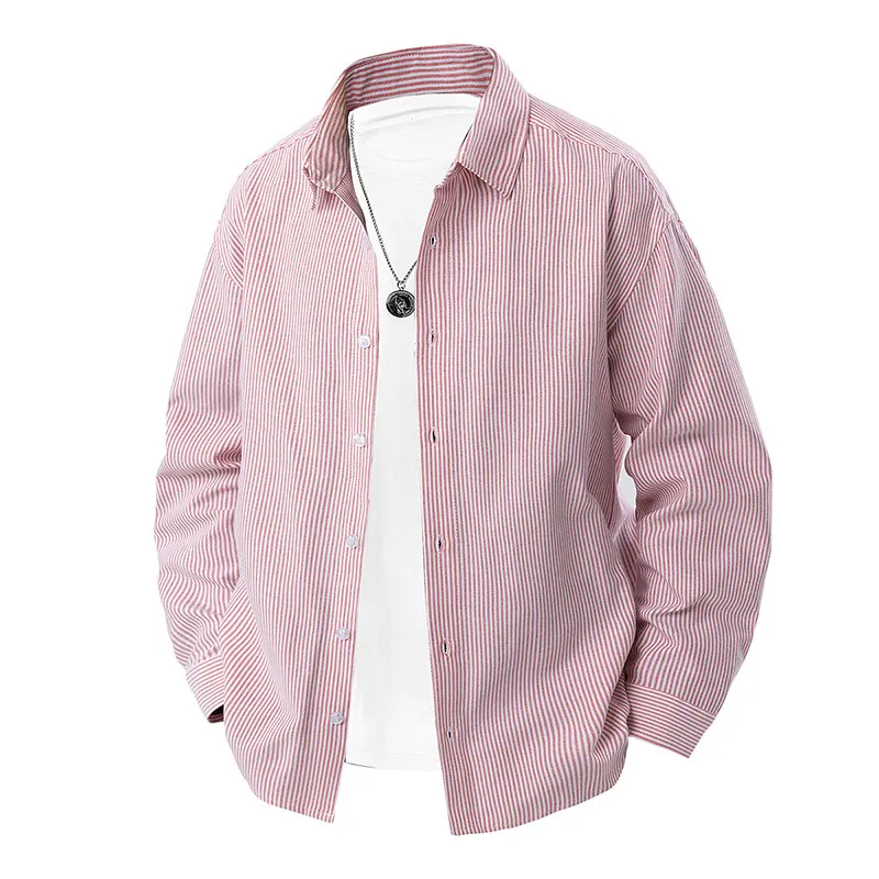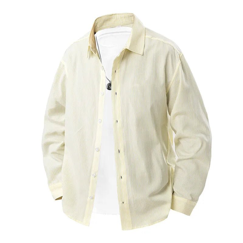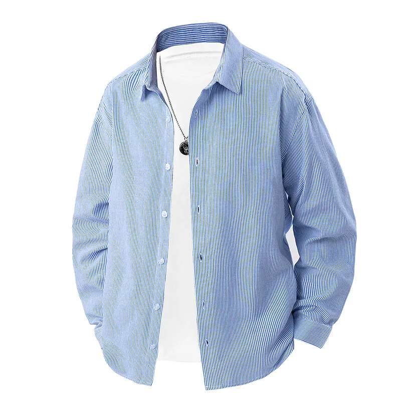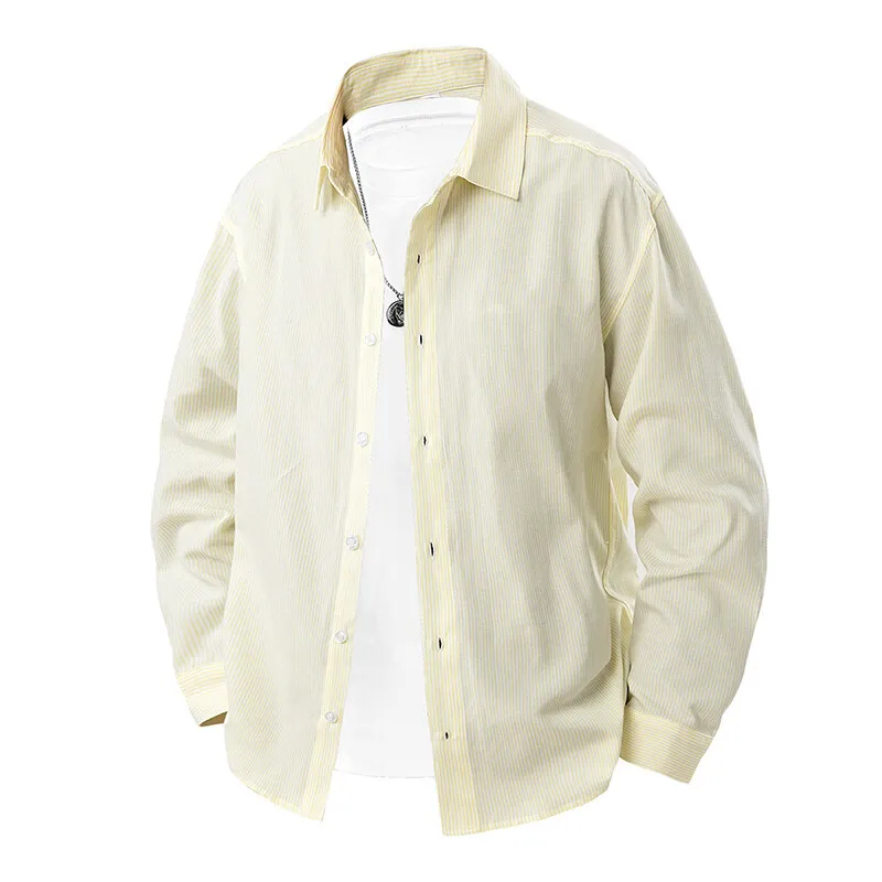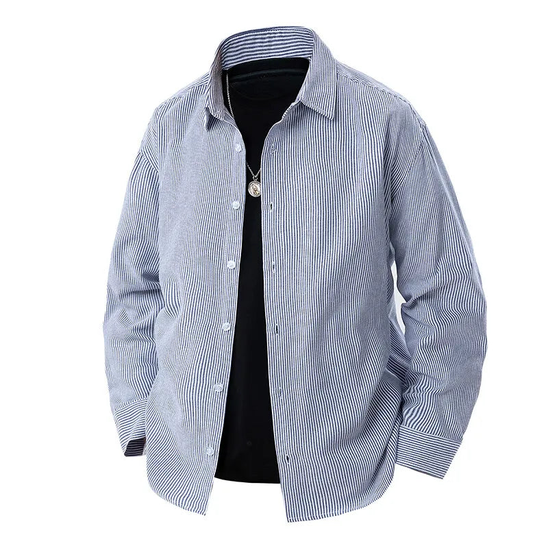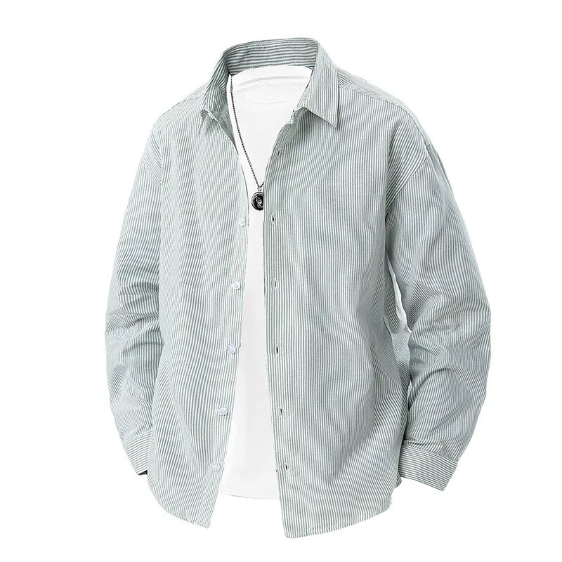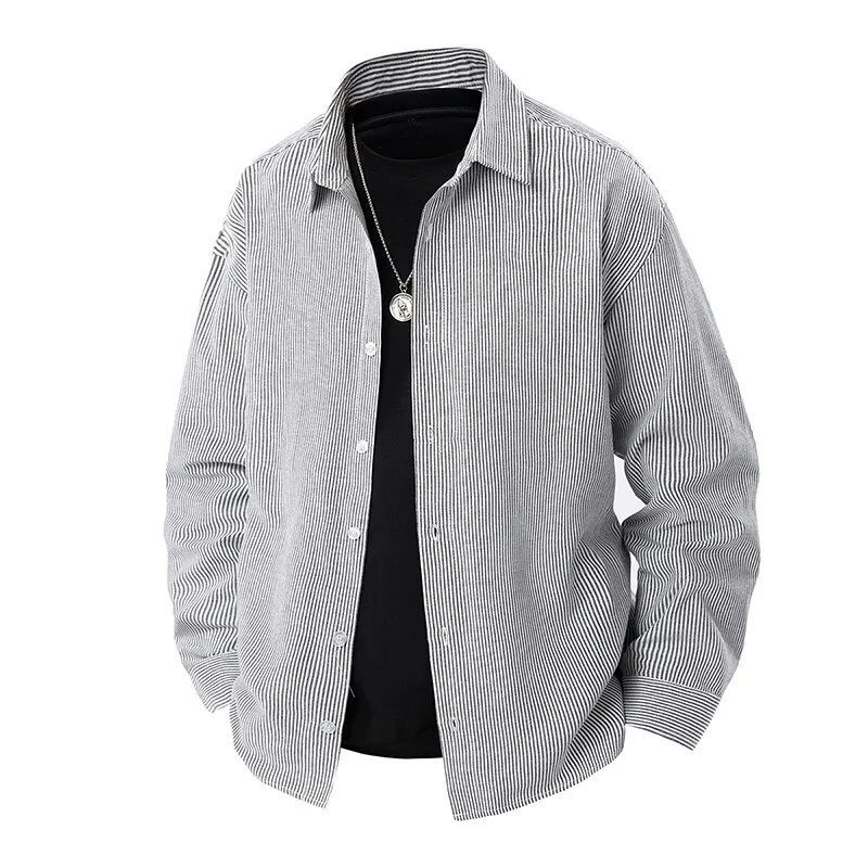 WIAOFELLAS  -  Spring Autumn Men's Striped Casual Shirts Lapel Loose Sports Shirt Male Long Sleeve Streetwear Blouse Handsome Simple Tops Man