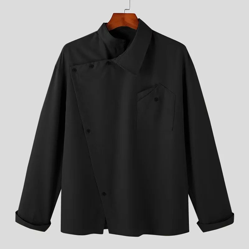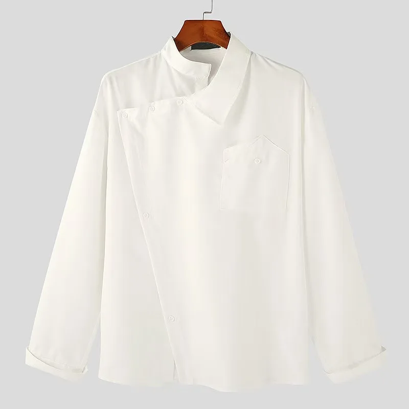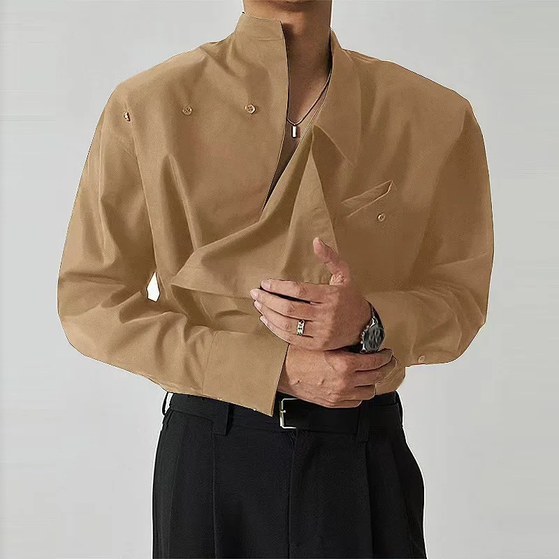 WIAOFELLAS - Spring Autumn New Men's Shirt Design Irregular Turn-down Collar Tops French Fashion Show Unique Buckle Men Long Sleeve Shirt