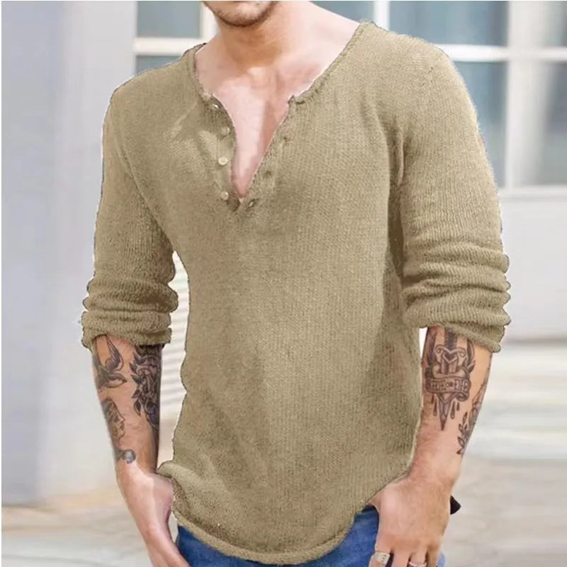 WIAOFELLAS - Spring Summer Casual Mens Knitted Polo Shirts Loose Long Sleeve Buttoned Lapel Knit Men Clothes Vintage Solid Tees Shirt