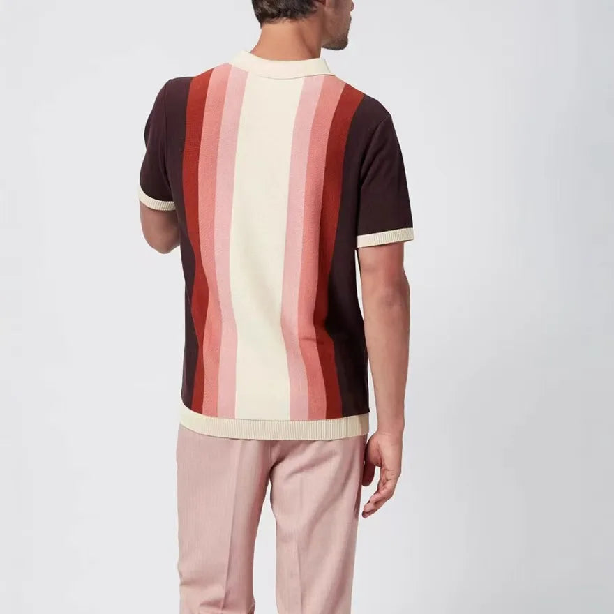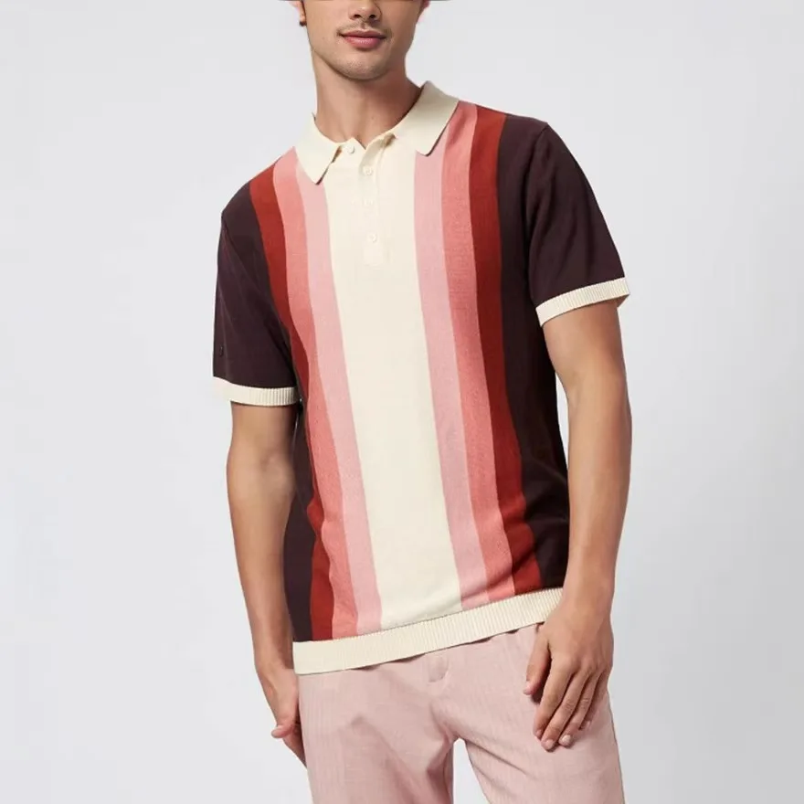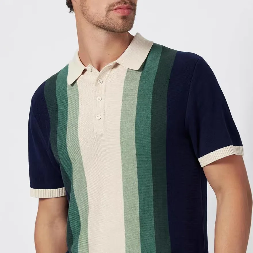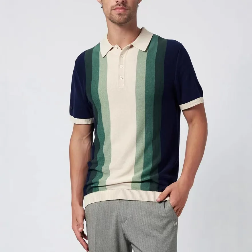 WIAOFELLAS  -  Spring Summer New Knit Polo Shirt Men Casual Turn-down Collar Button Fashion Splicing Color Tops Ice Silk Tees Shirts For Male