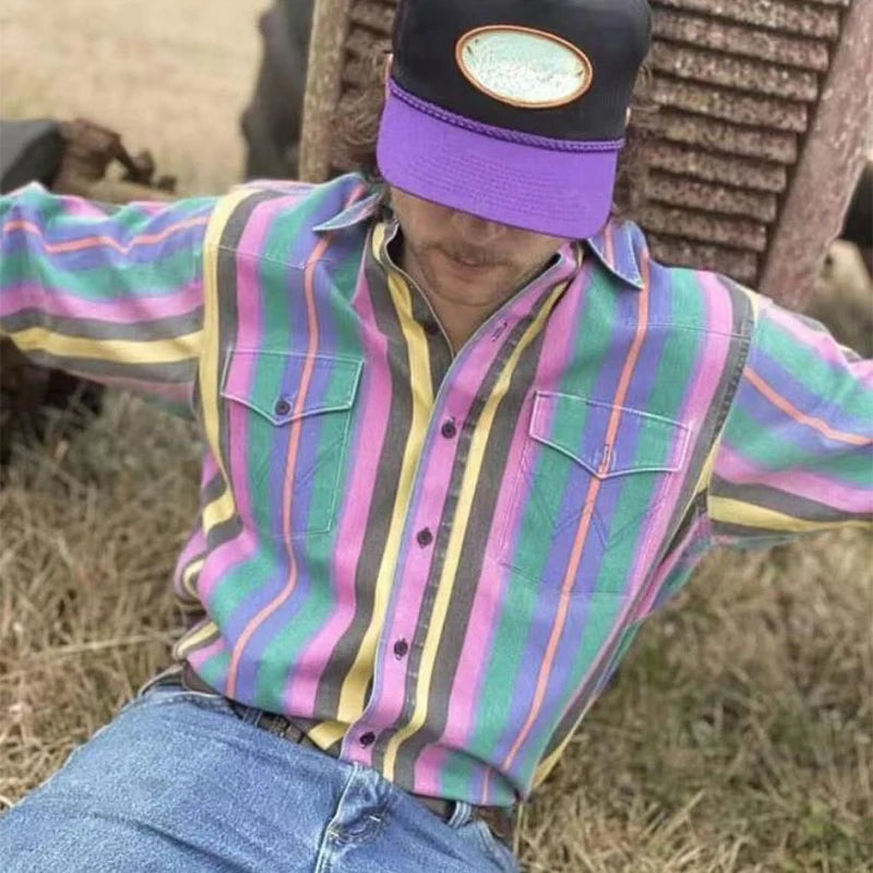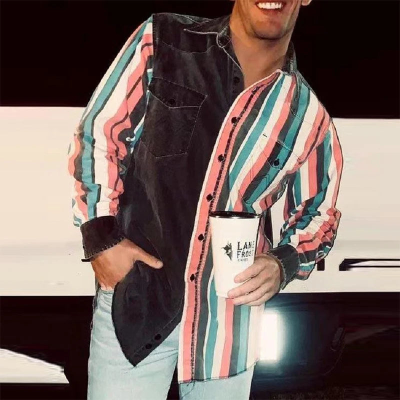 WIAOFELLAS - Streetwear Men's Vintage Striped Shirts Spring Casual Long Sleeve Buttoned Lapel Tops Cardigan Leisure Mens Clothes Shirt