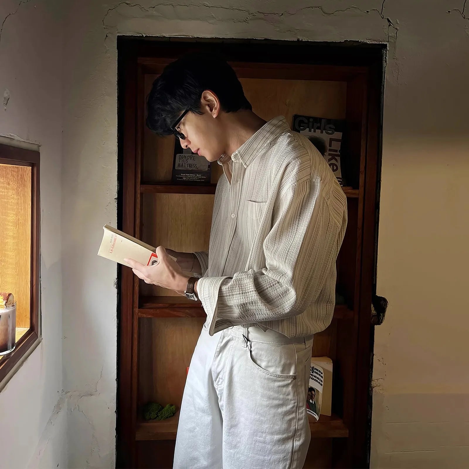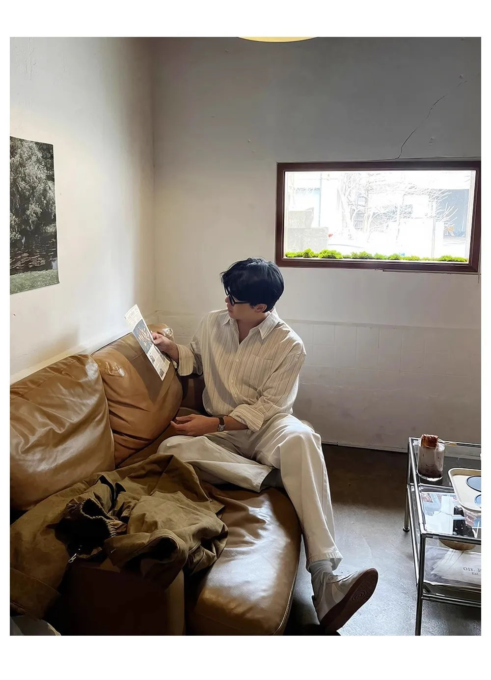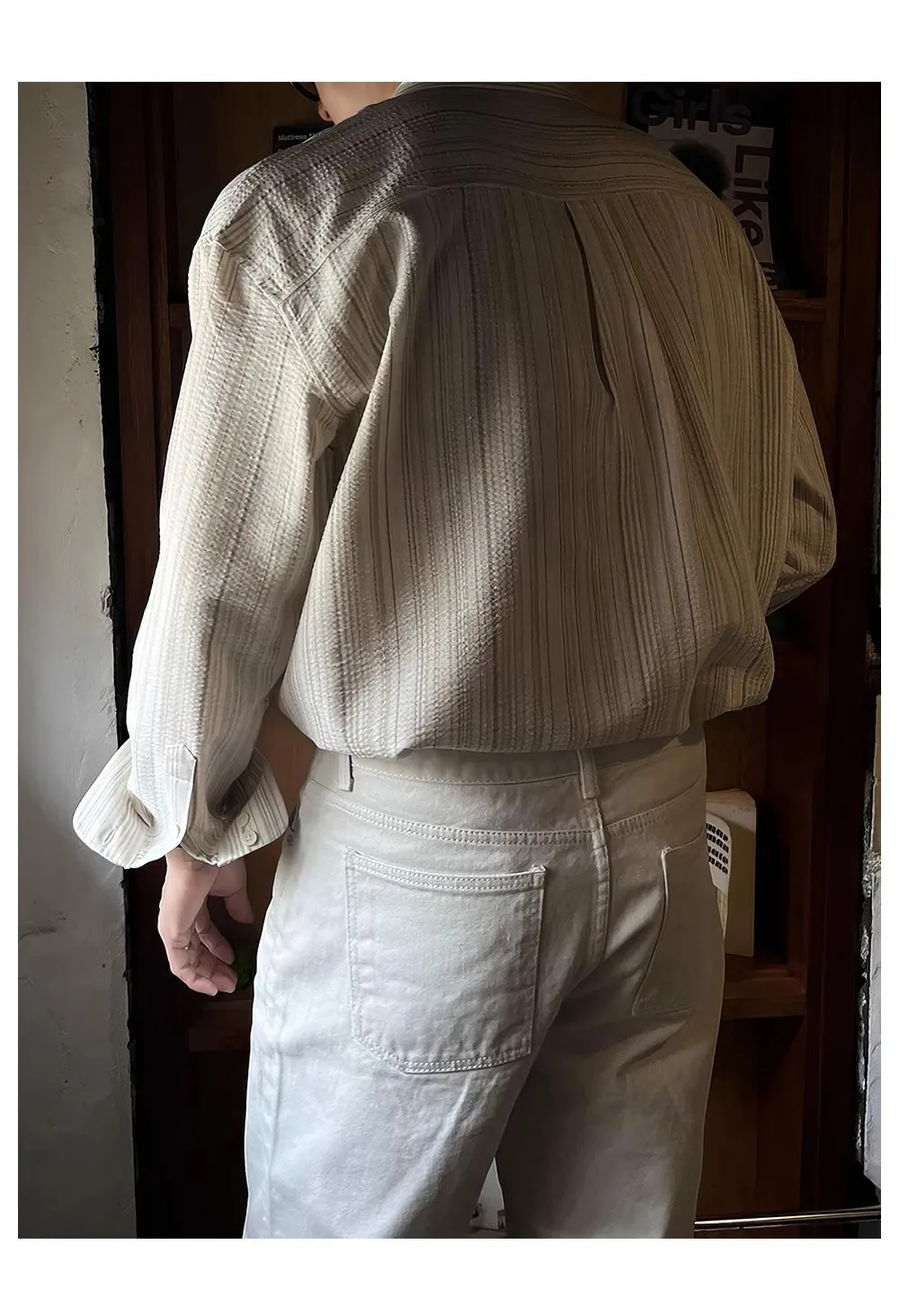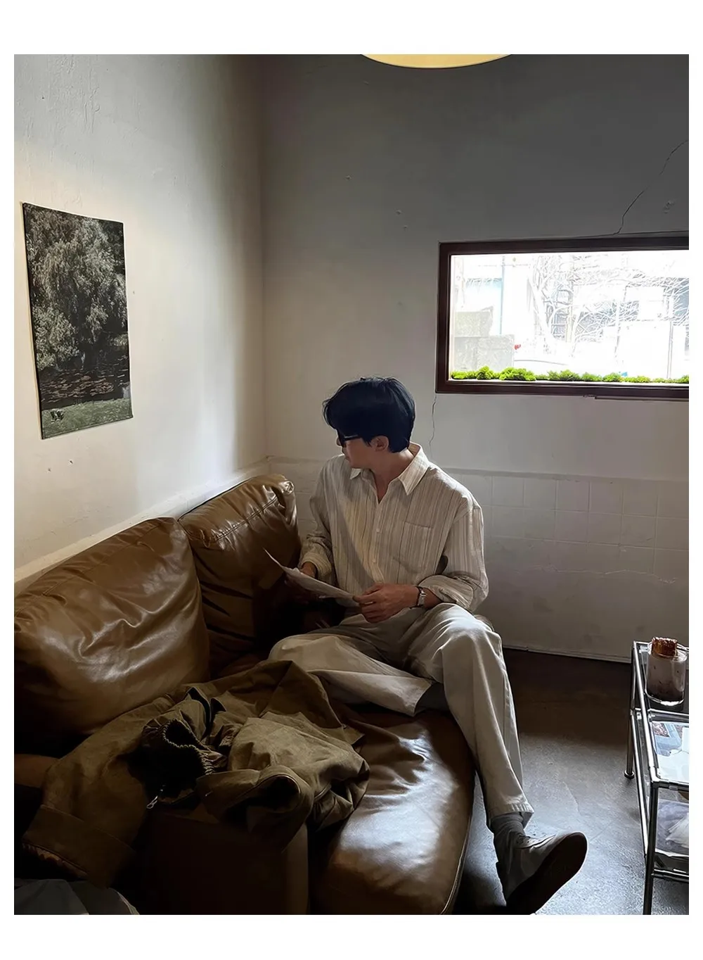 WIAOFELLAS - Stripe Long Sleeve Shirt Men Early Autumn High Quality Texture Casual Wrinkle Free Drape