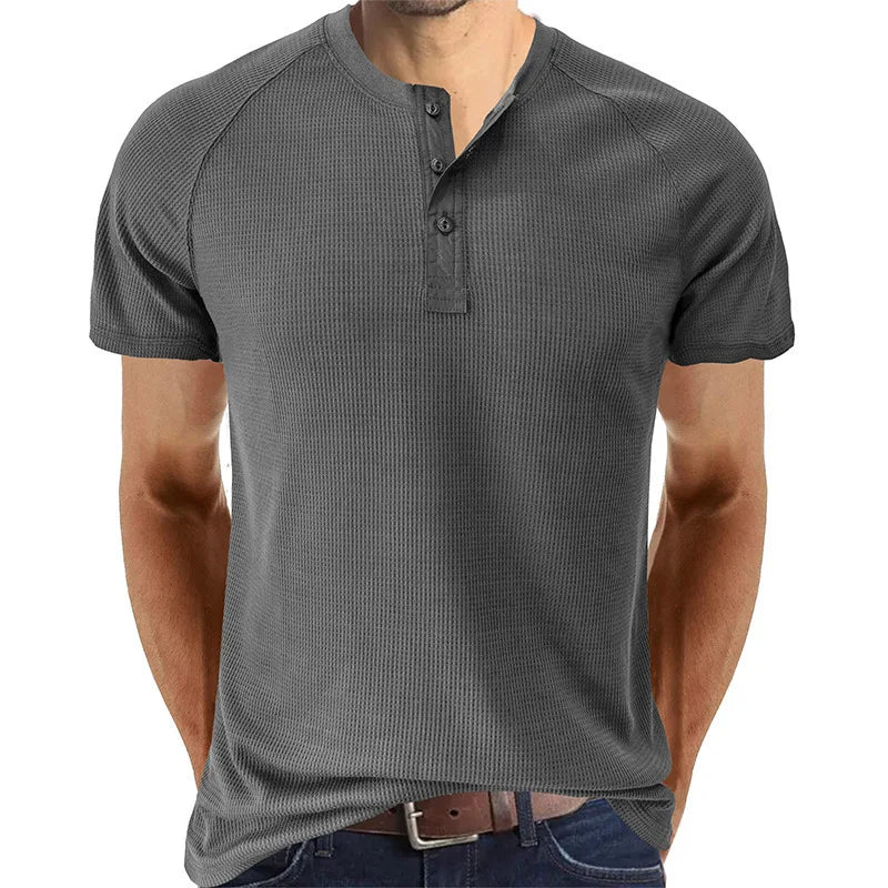 WIAOFELLAS - Summer European and American Men's Waffle Henry Shirt Mens Short Sleeve T-shirt