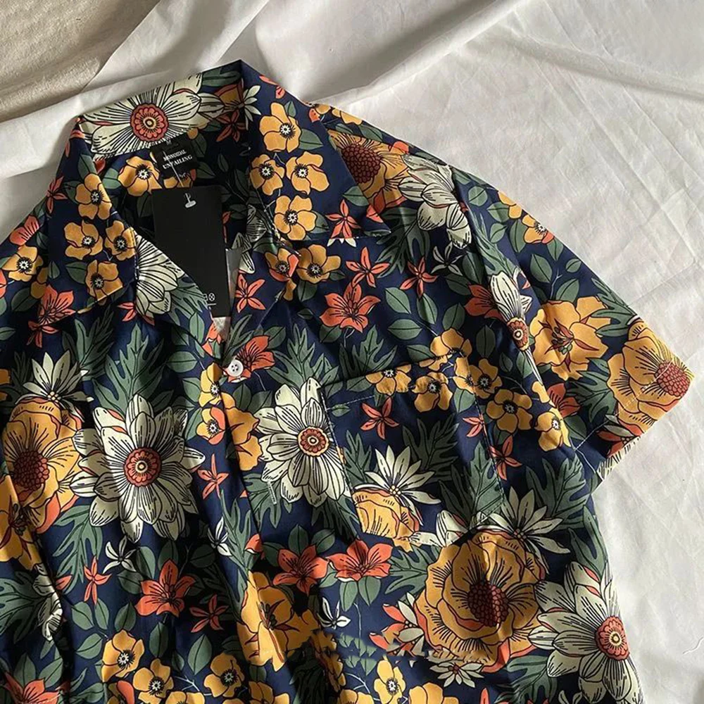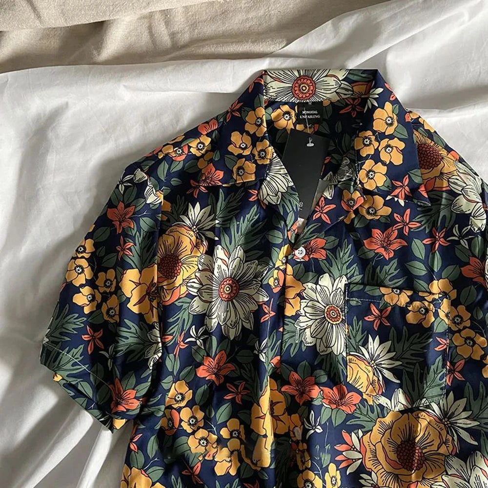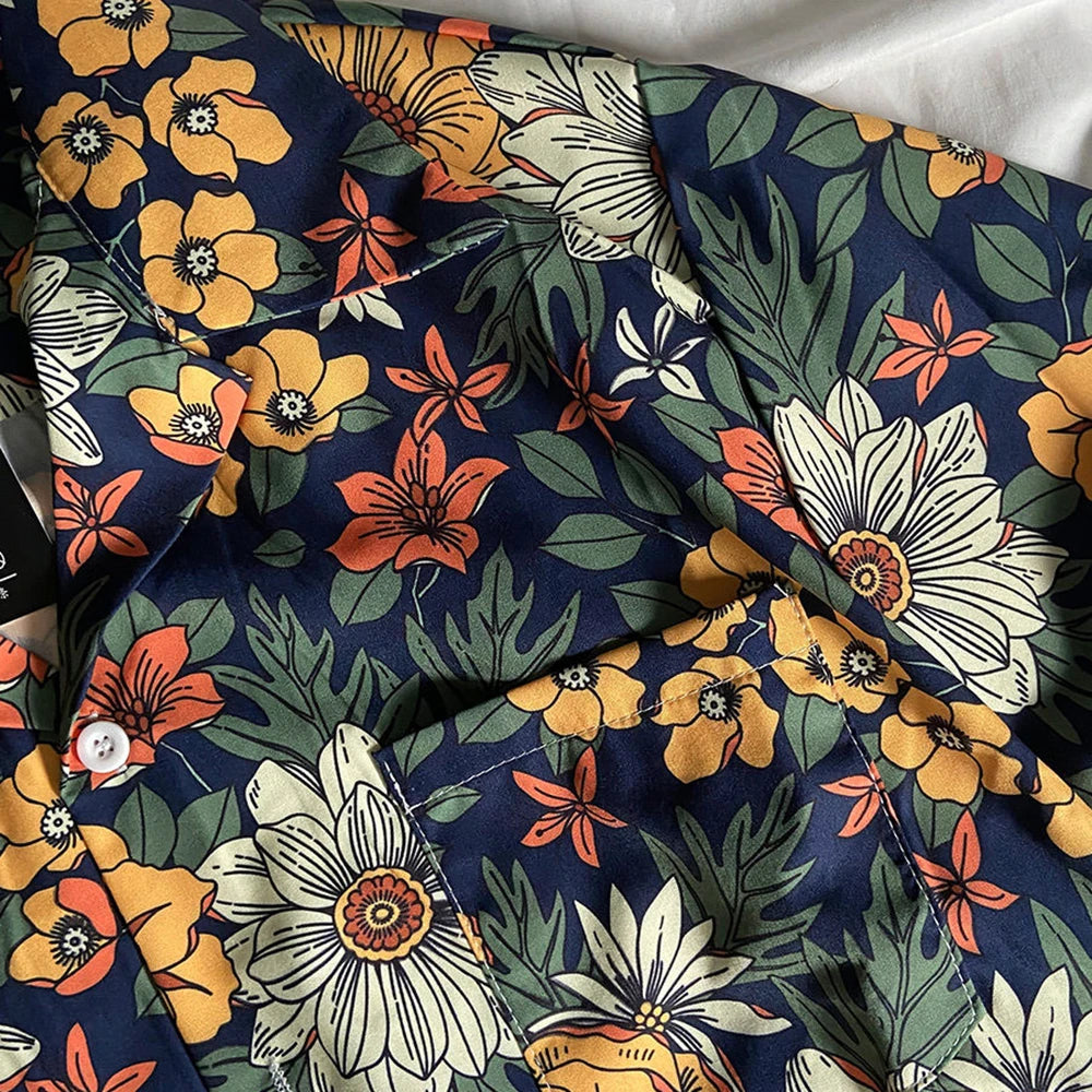WIAOFELLAS - Summer Fashionable Plant Floral Cuban Collar Short-Sleeved Floral Shirt For Men Women Trendy Hawaiian Japanese Retro Shirt