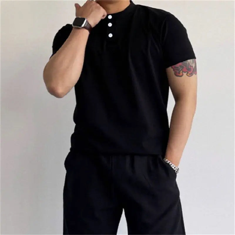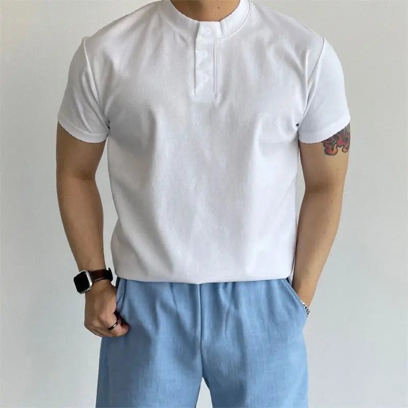 WIAOFELLAS - Summer Knitted T-shirt for Men Short Sleeve Round Neck T-shirt Slim Fit Casual Business Tee Tops M-3XL