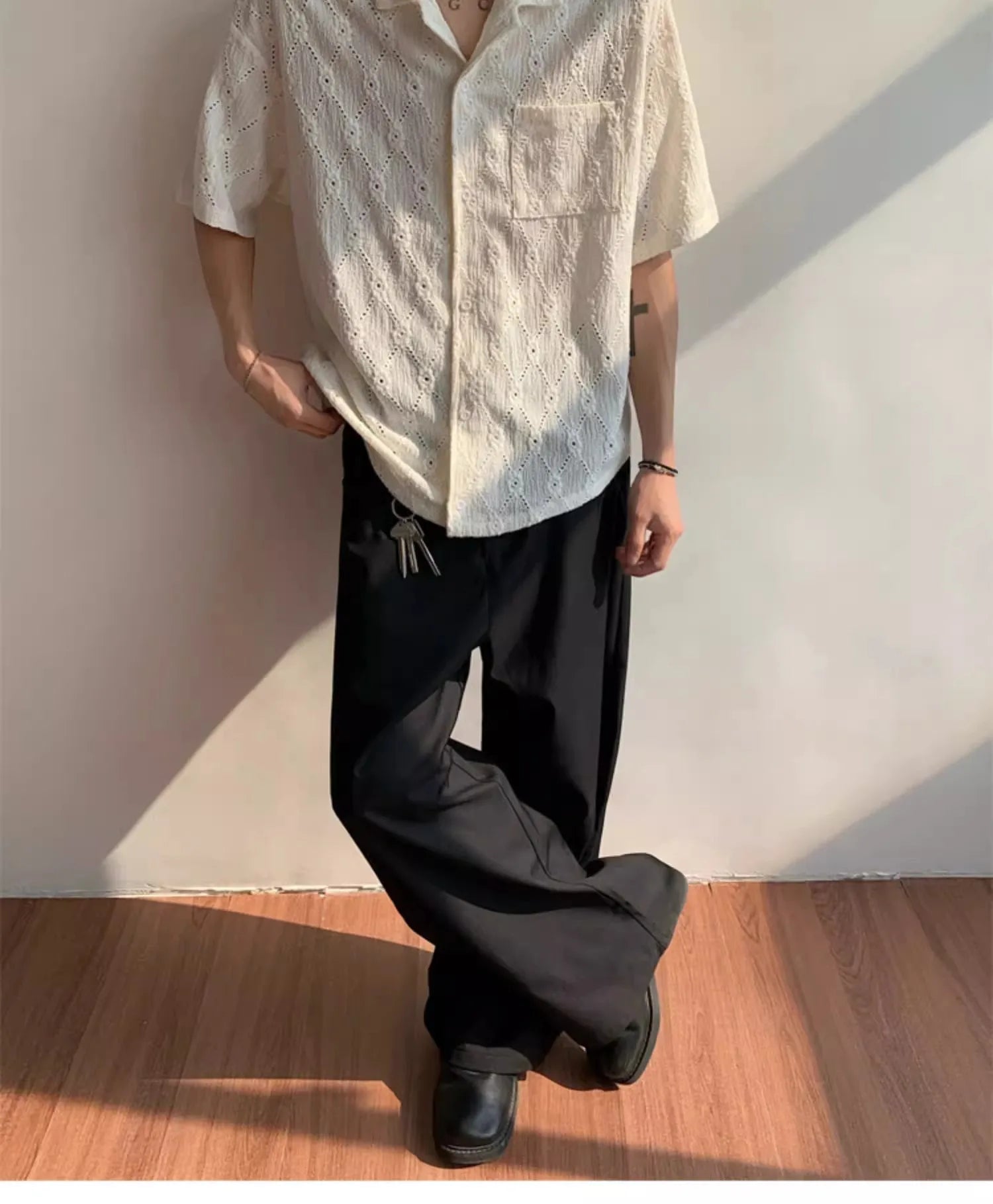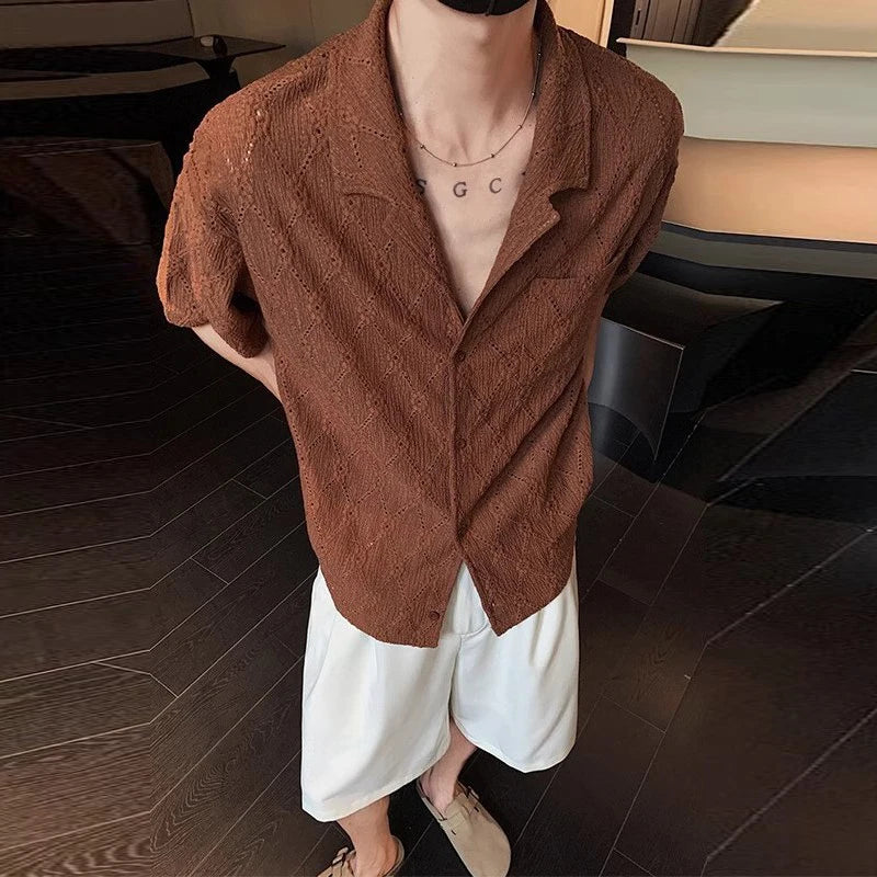 WIAOFELLAS - Summer Men's Clothing Light Luxury Jacquarded Suit Collar Shirts Streetwear Button-down Short Sleeve Retro Leisure Fashion M-3XL
