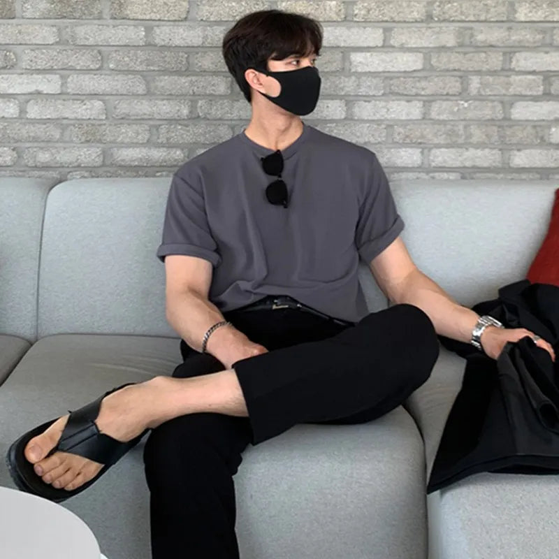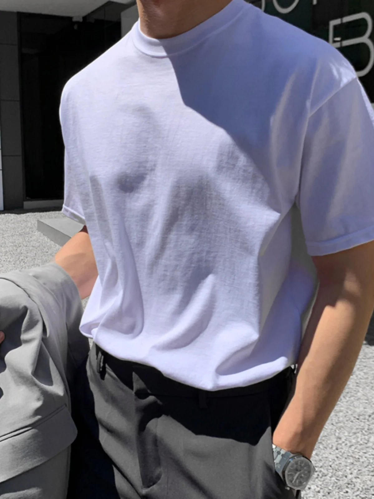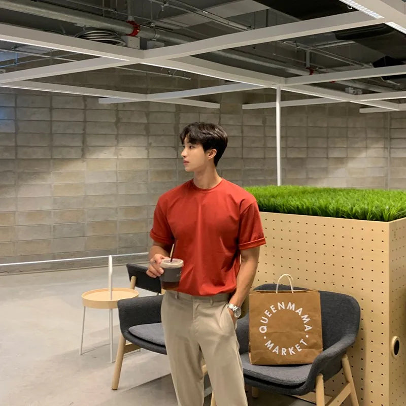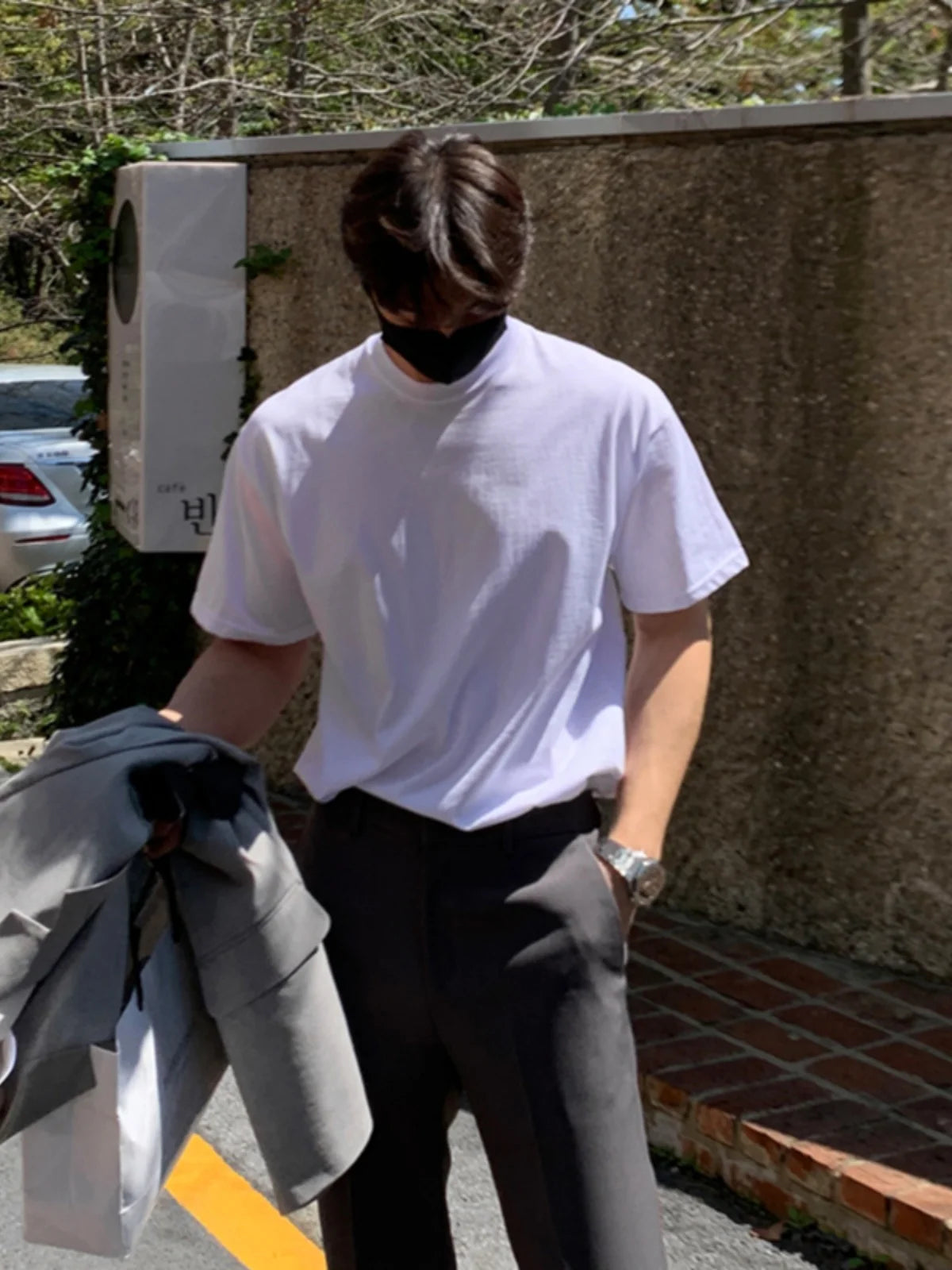 WIAOFELLAS - Summer Men's Loose Solid Short Sleeve T-shirt for Men Cotton Tee Men Causal O-neck Basic Tshirt Streetwear Quality Men Top B182
