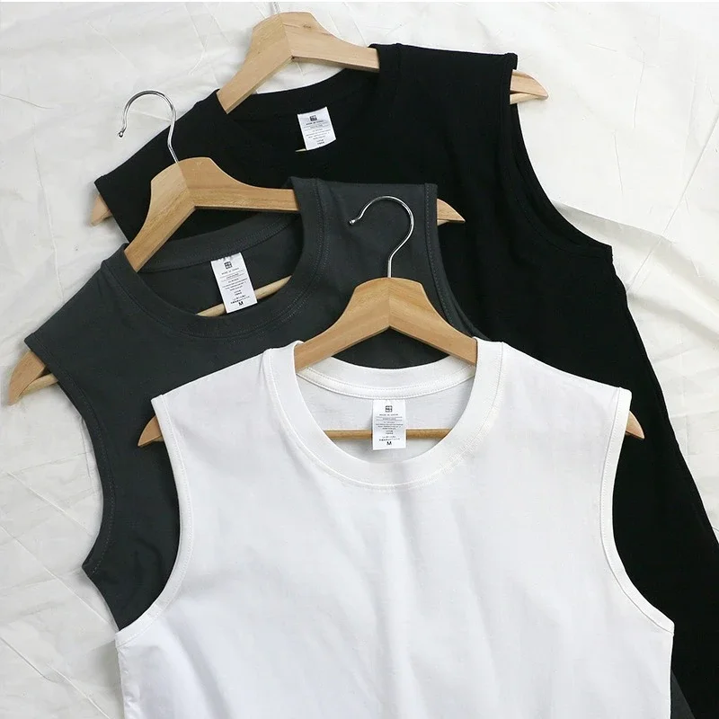 WIAOFELLAS - Summer Men's Tank Tops 230g Heavyweight Cotton Sleeveless Vest Loose Fit Casual Sports Undershirt T-Shirt Breathable & Versatile