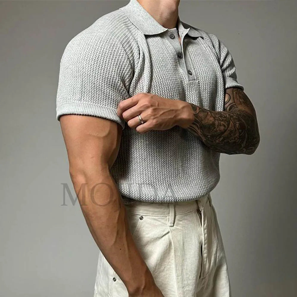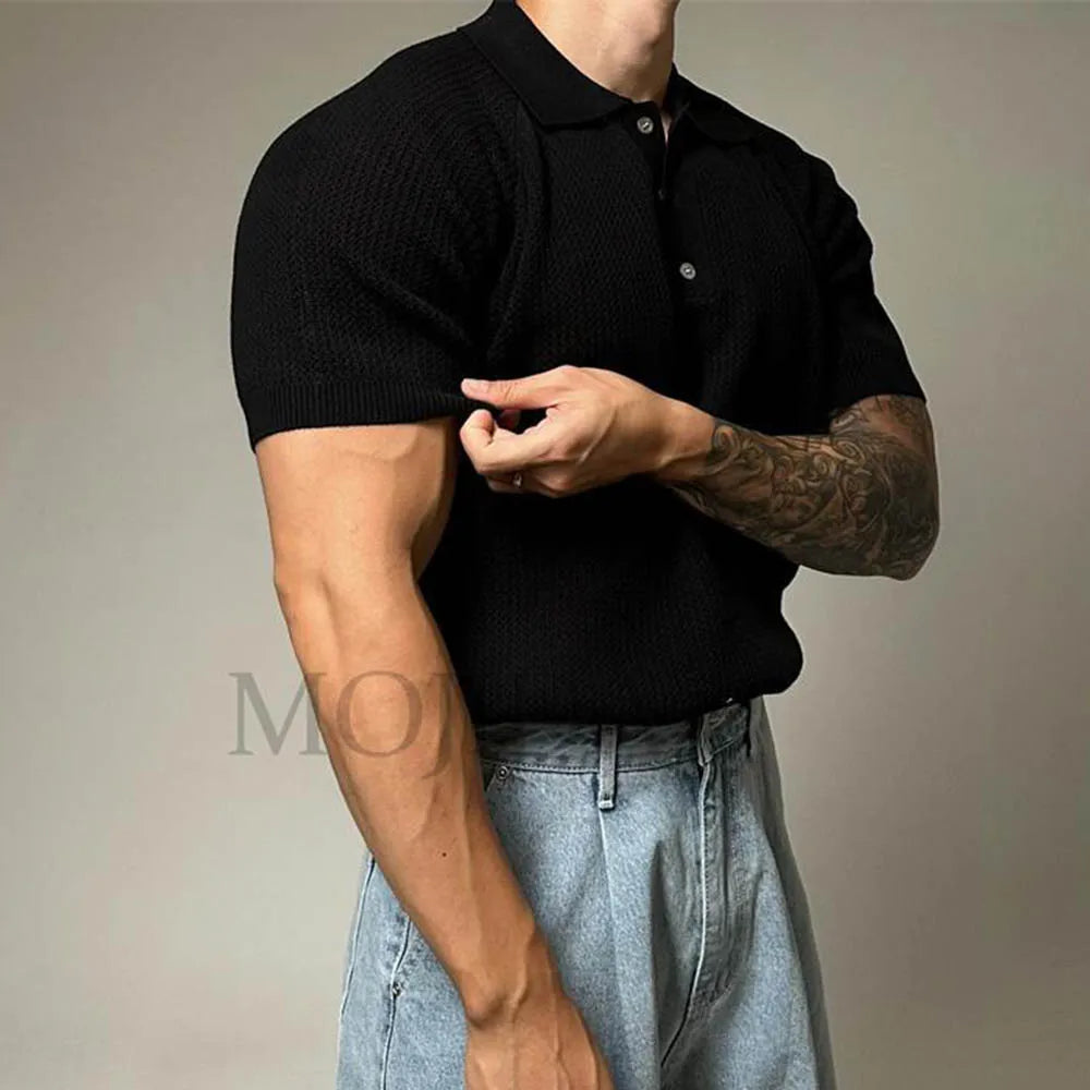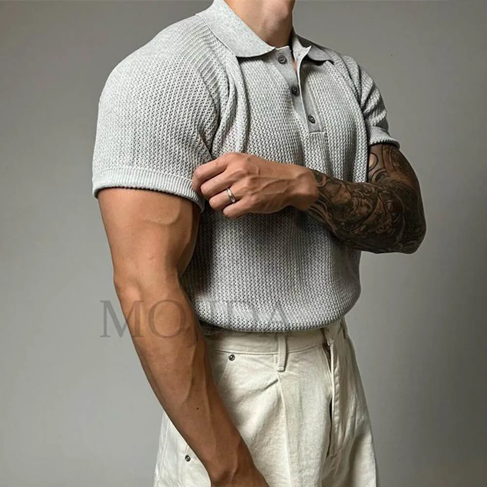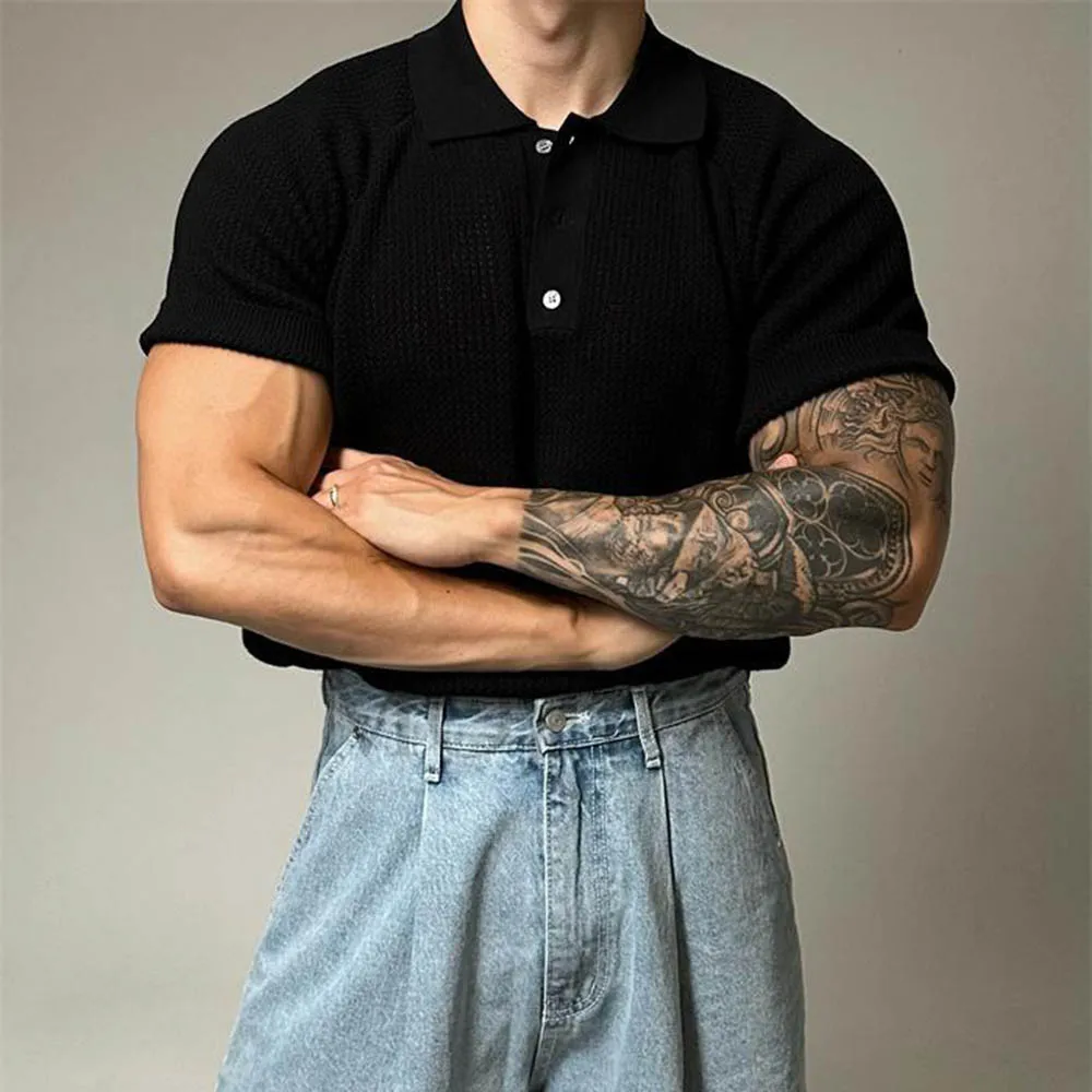 WIAOFELLAS - Summer New Men's Solid Color Knitted Short-Sleeved T-Shirt American Retro Fashion Trend Loose Casual Breathable Men's Tops