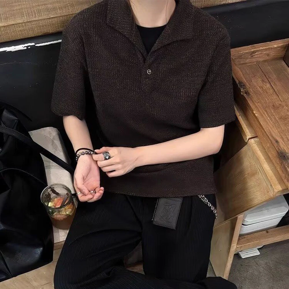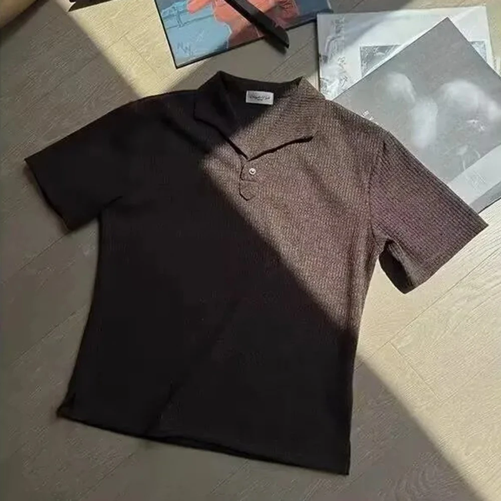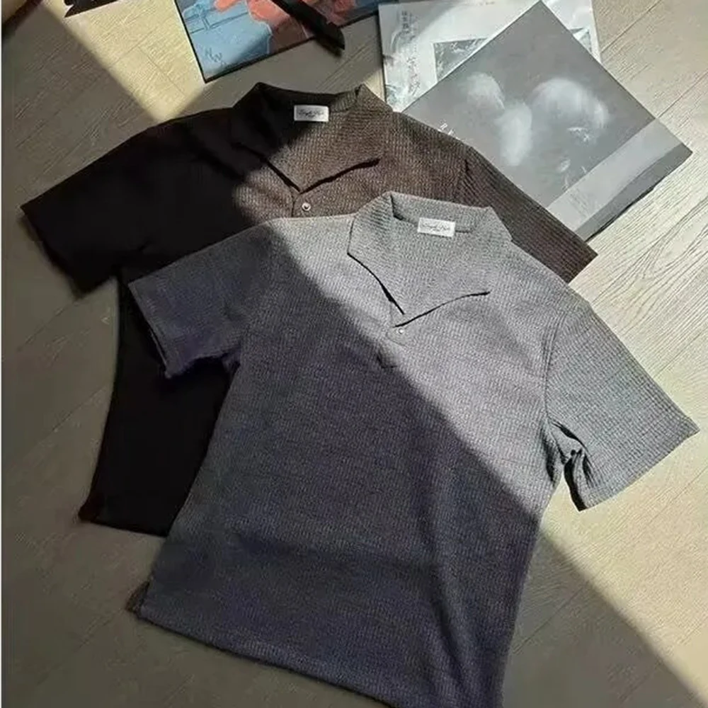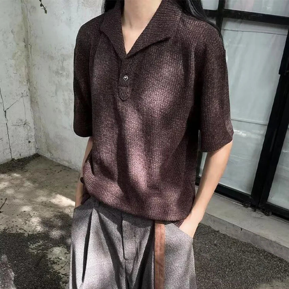 WIAOFELLAS - Summer New Men's Solid Color Short-Sleeved Polo Shirt American Retro Fashion Trend Street Loose Breathable Niche Men's Tops