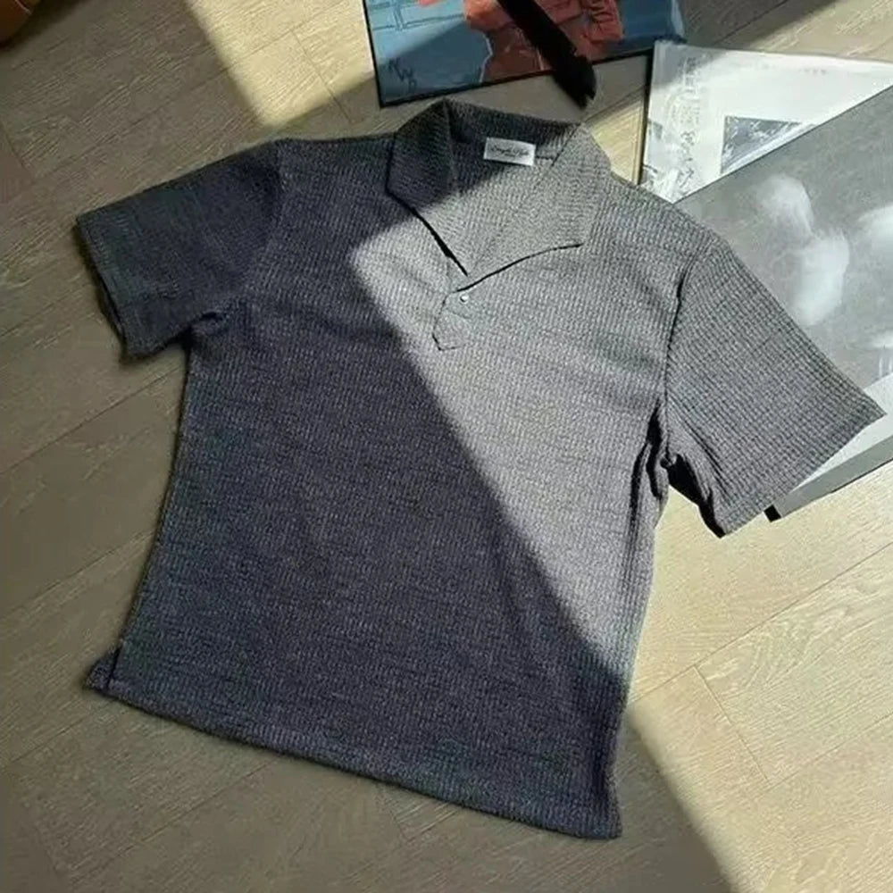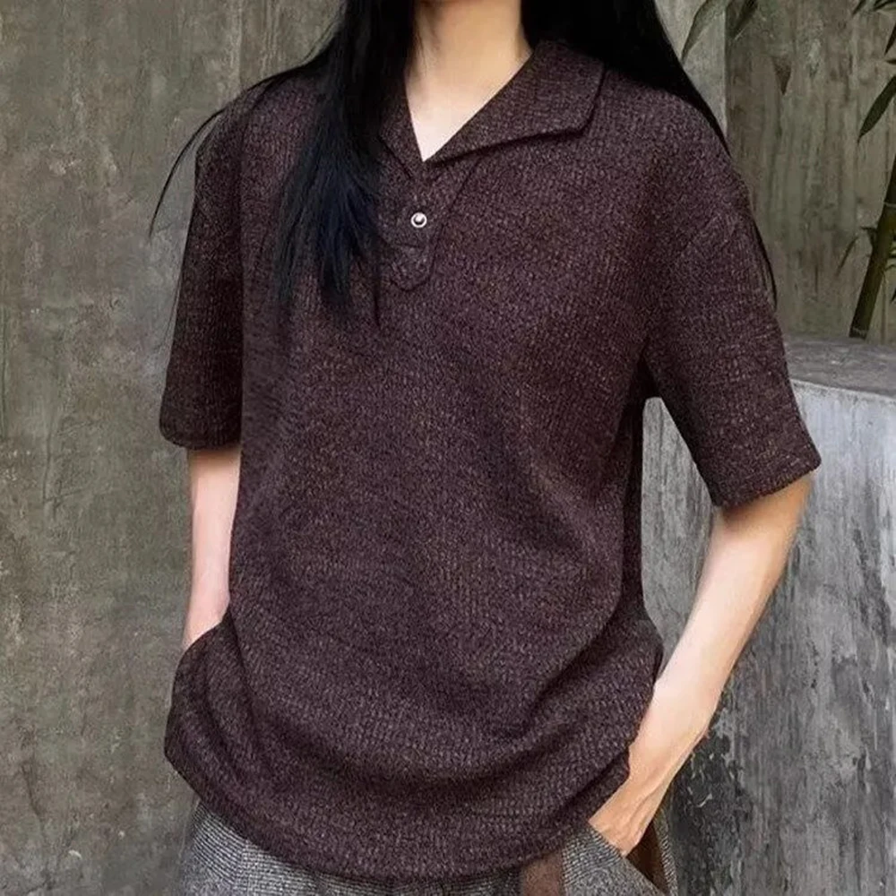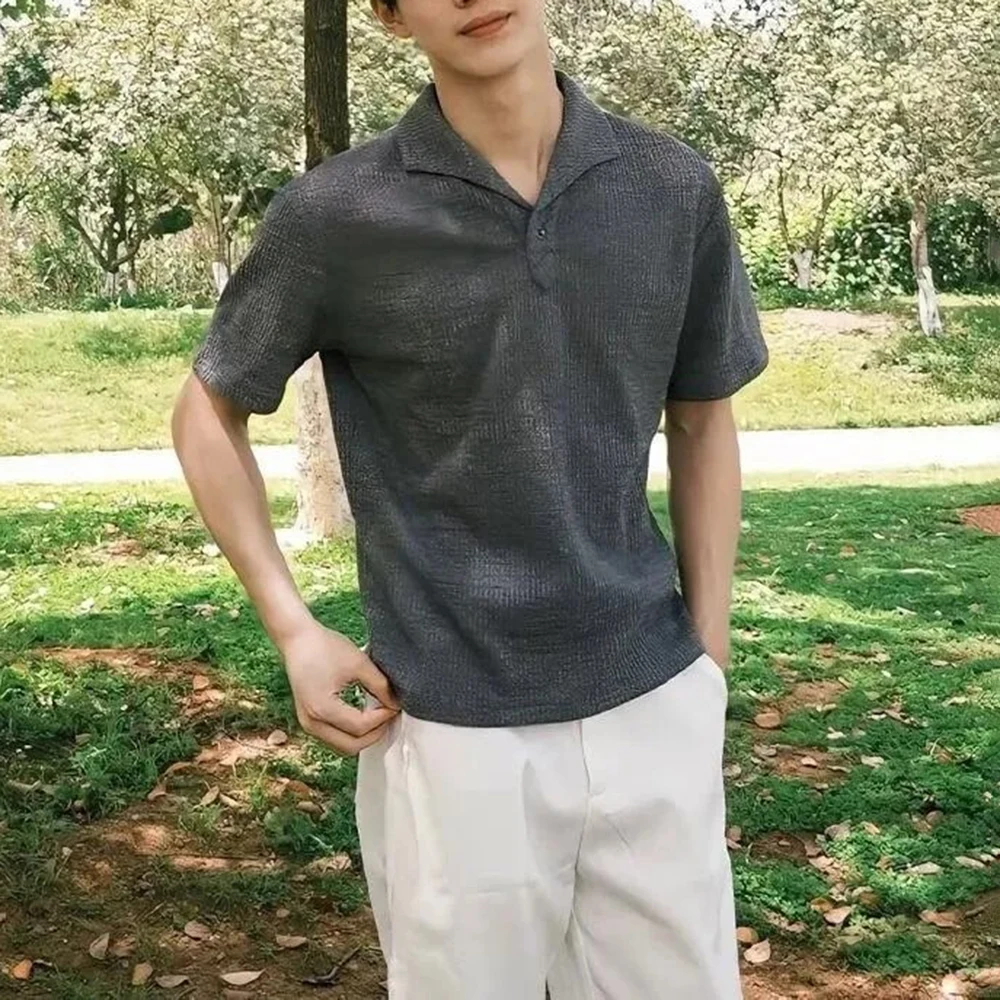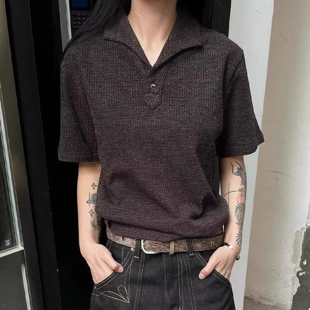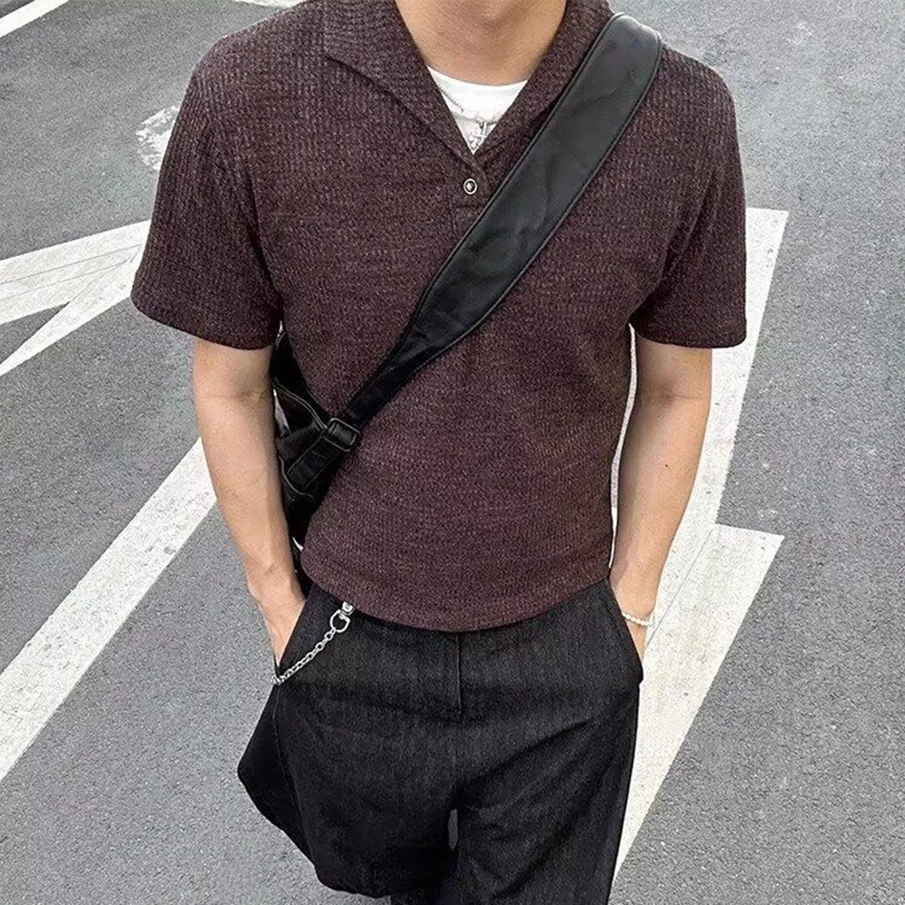 WIAOFELLAS - Summer New Men's Solid Color Short-Sleeved Polo Shirt American Retro Fashion Trend Street Loose Breathable Niche Men's Tops