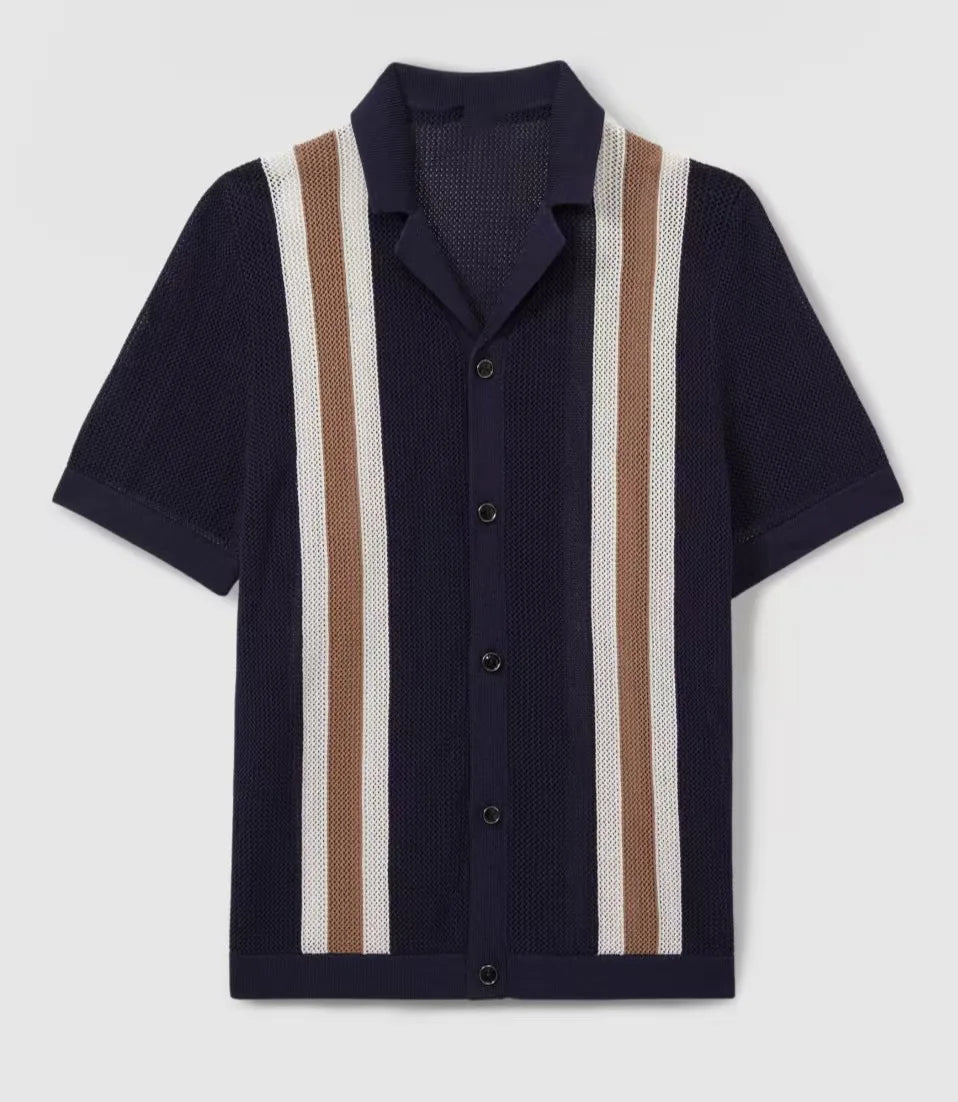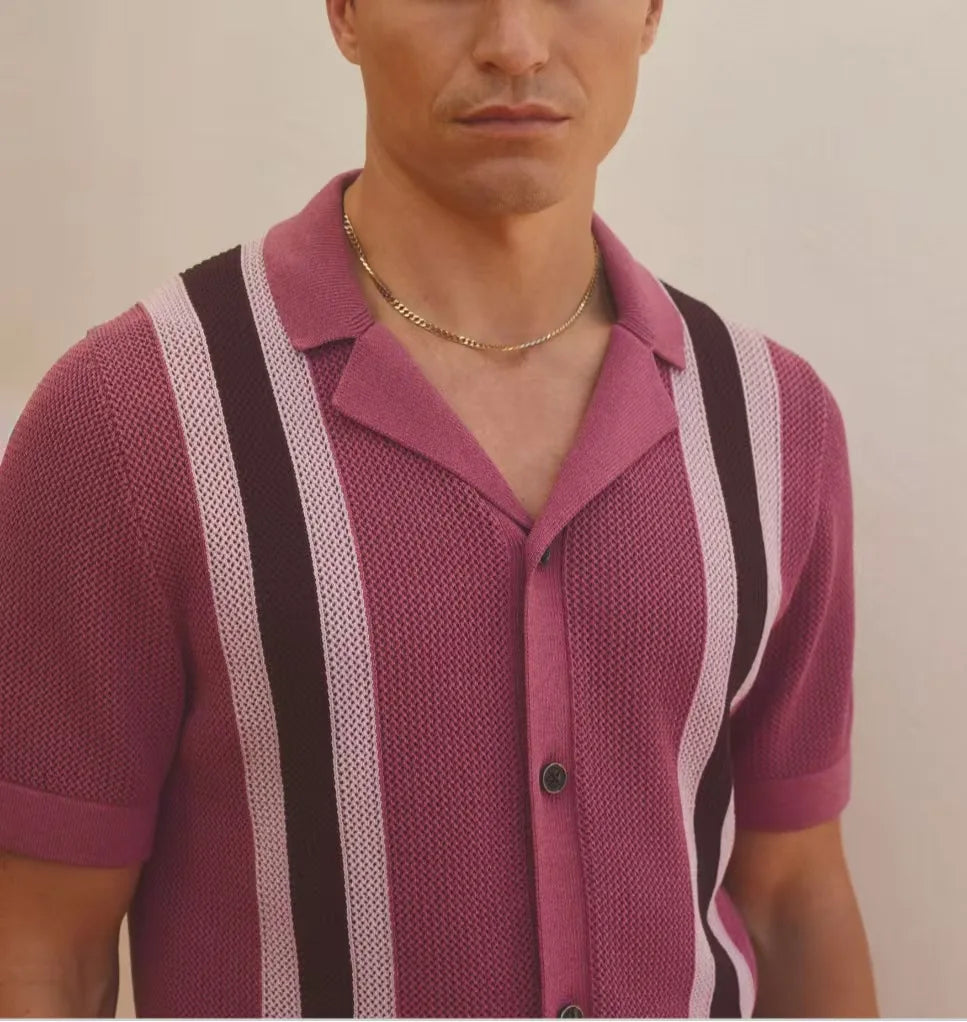 WIAOFELLAS  -  Summer New Striped Knitted Shirt For Men Lapel Casual Tees Shirts Fashion Business Social Knit Cardigan Men Clothing Streetwear