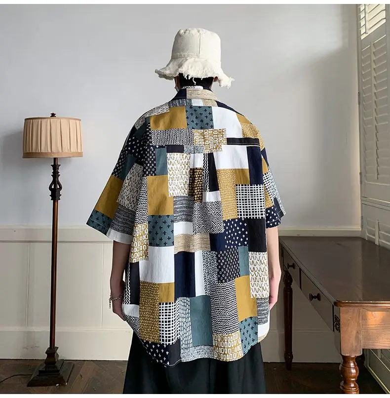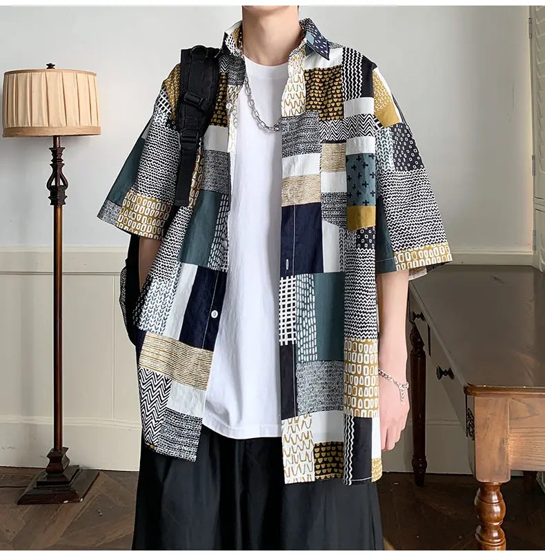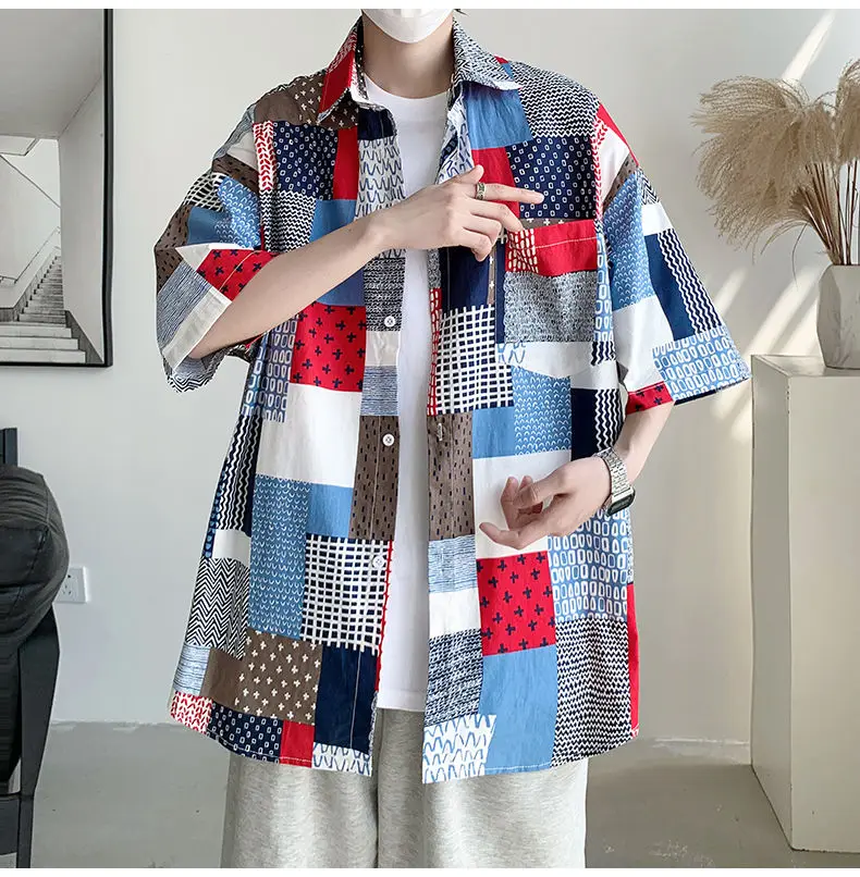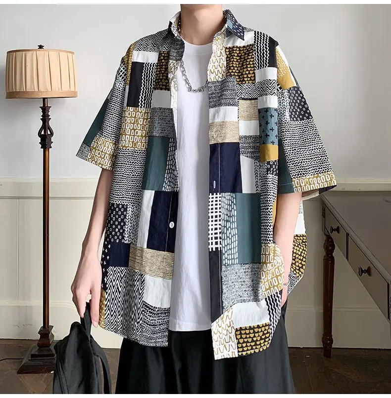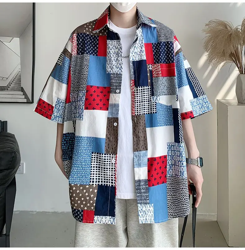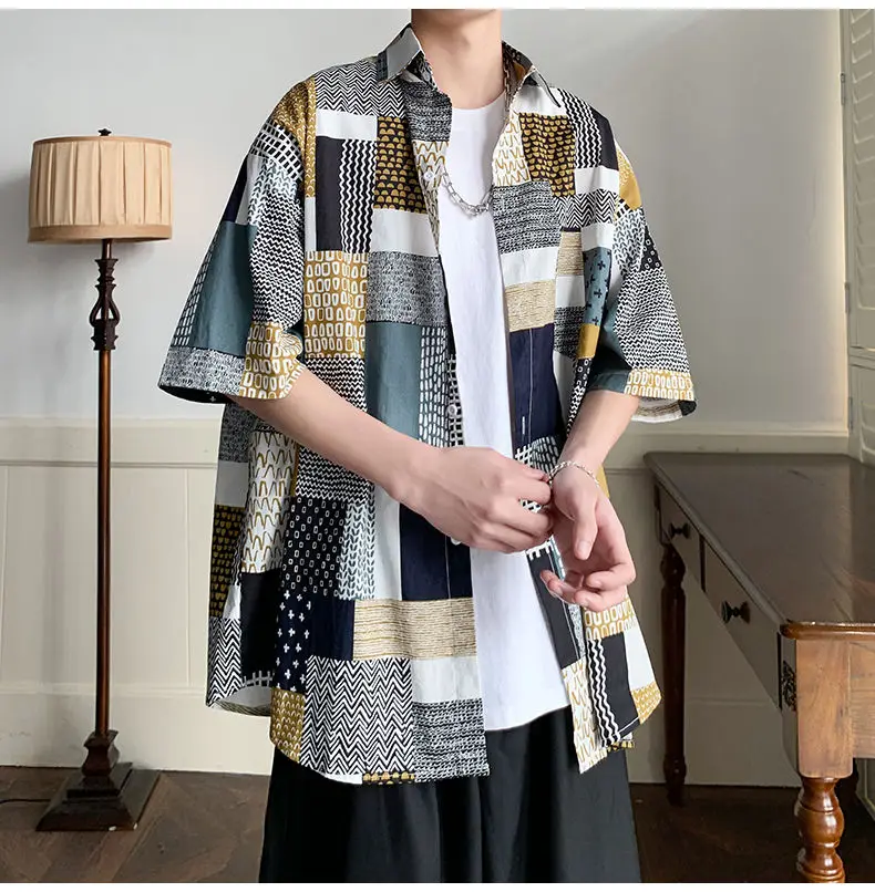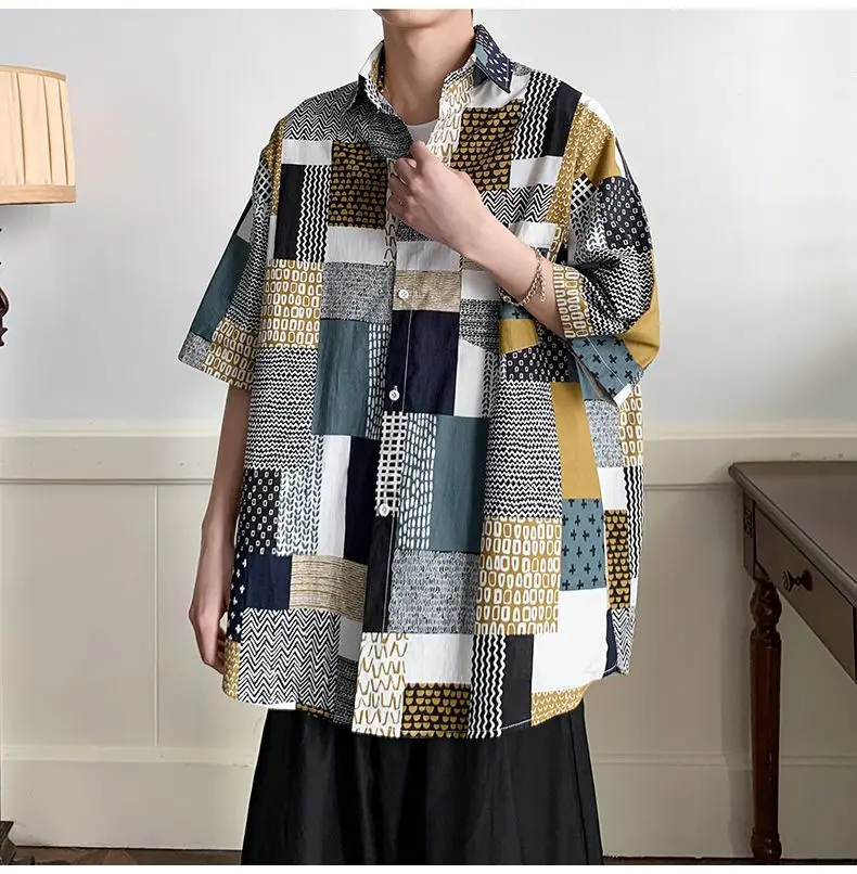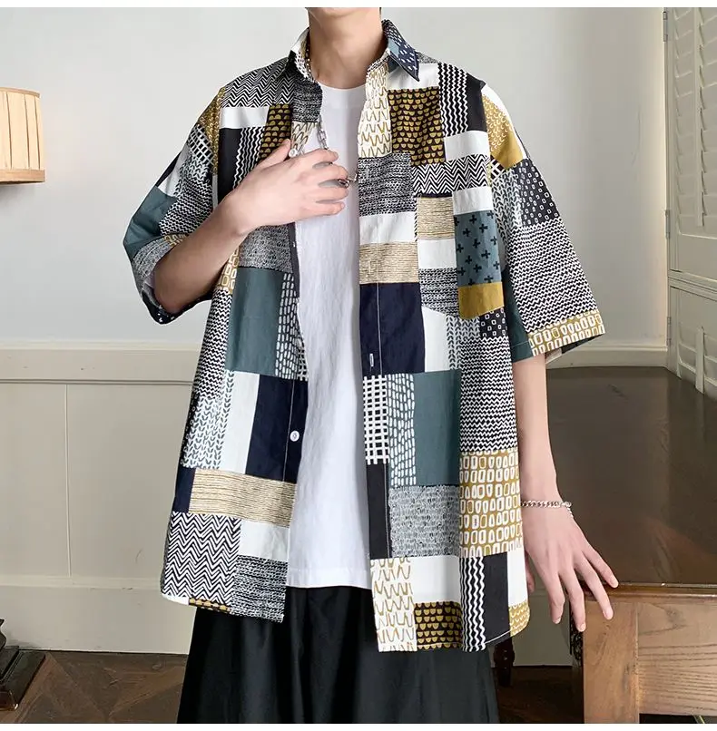 WIAOFELLAS - Summer New Turn-down Collar Fashion Short Sleeve Shirt Man Harajuku Casual Loose Button Cardigan Y2K Printing Pure Cotton Blouse