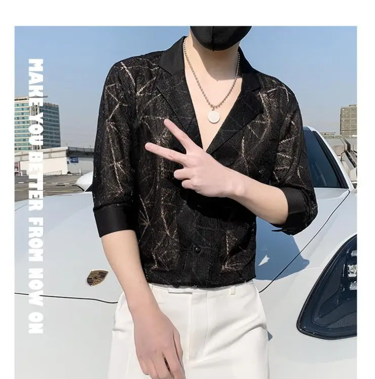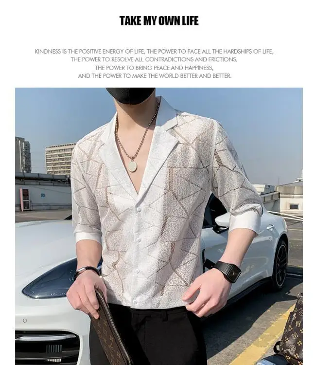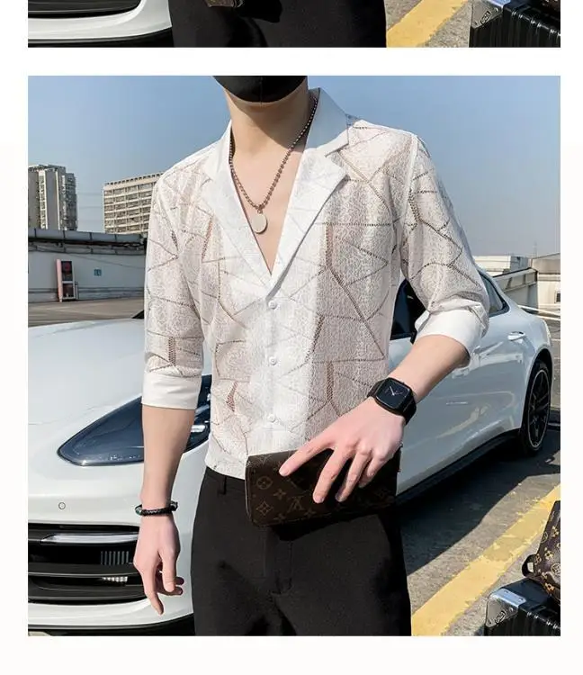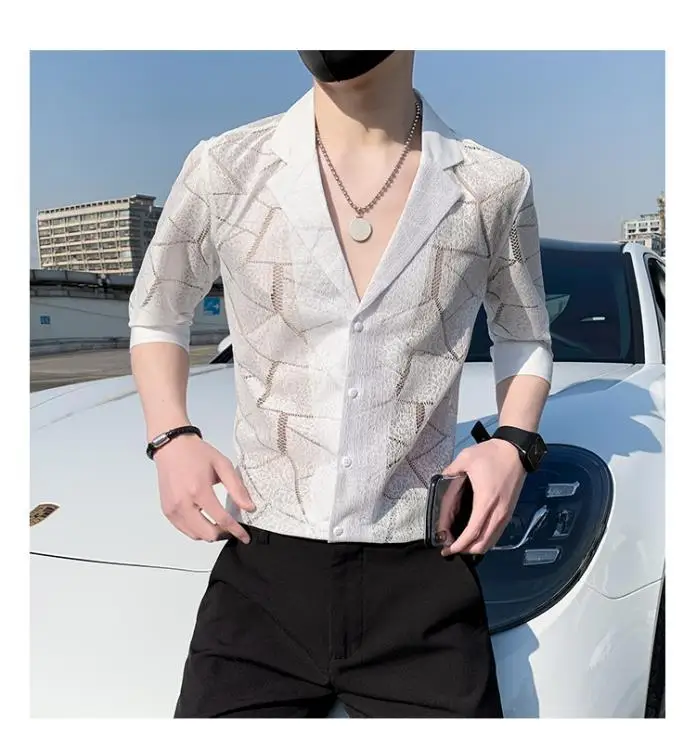 WIAOFELLAS - Summer Thin Cutlery Shirt 2025 Half-sleeved Men Casual Top