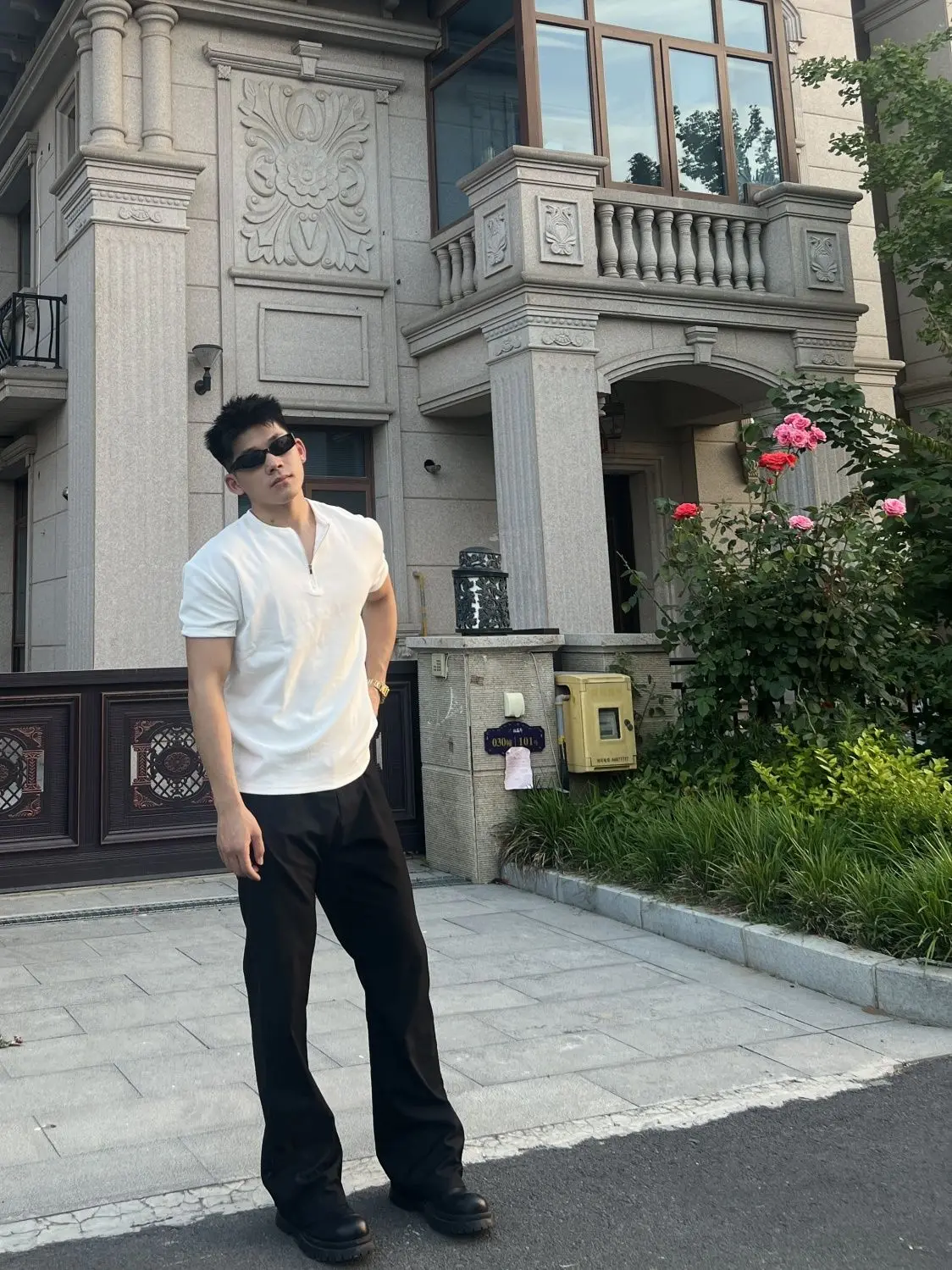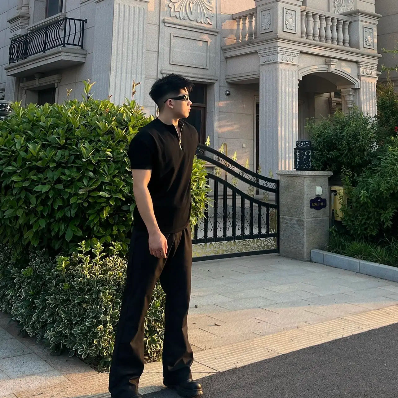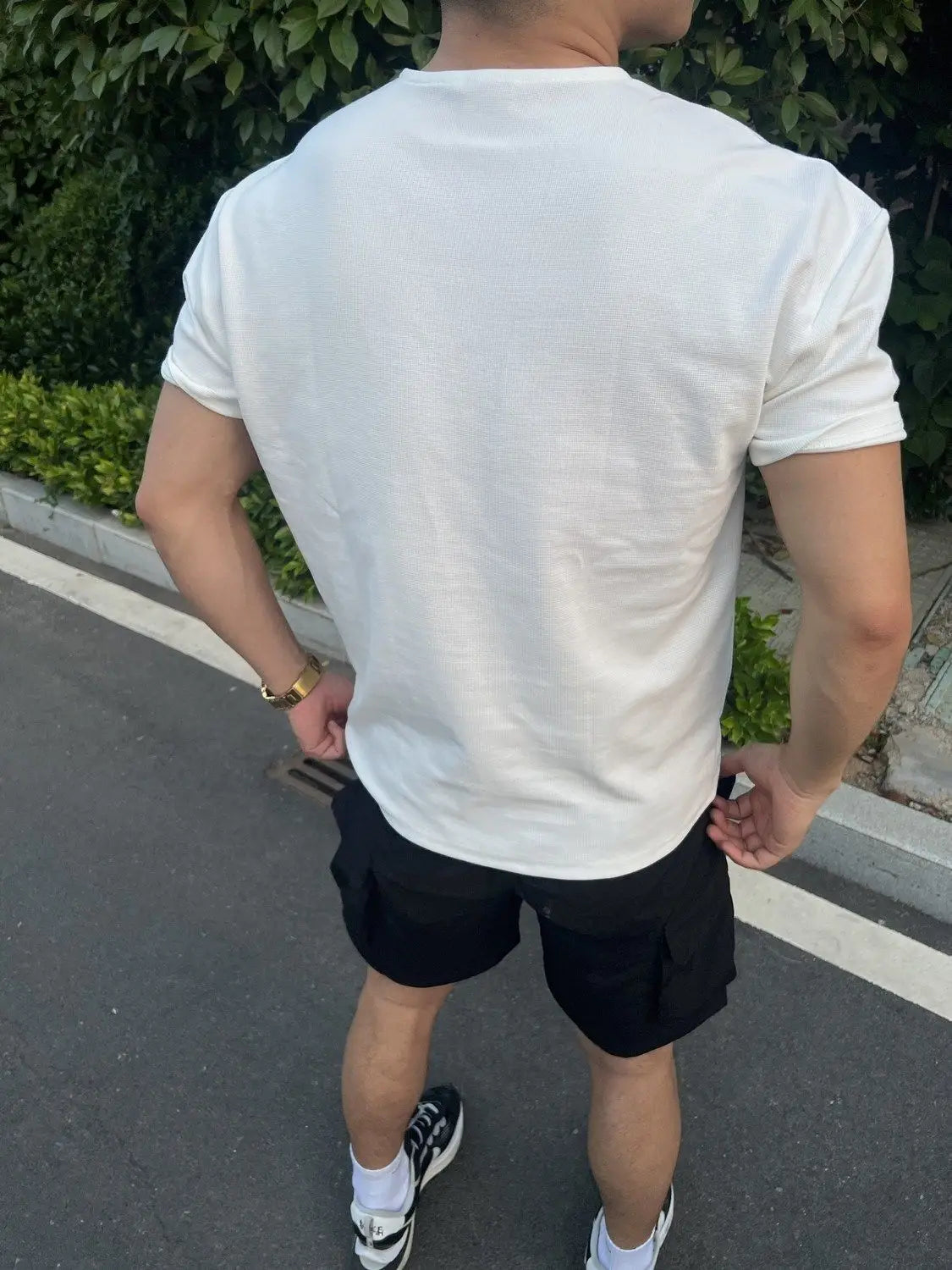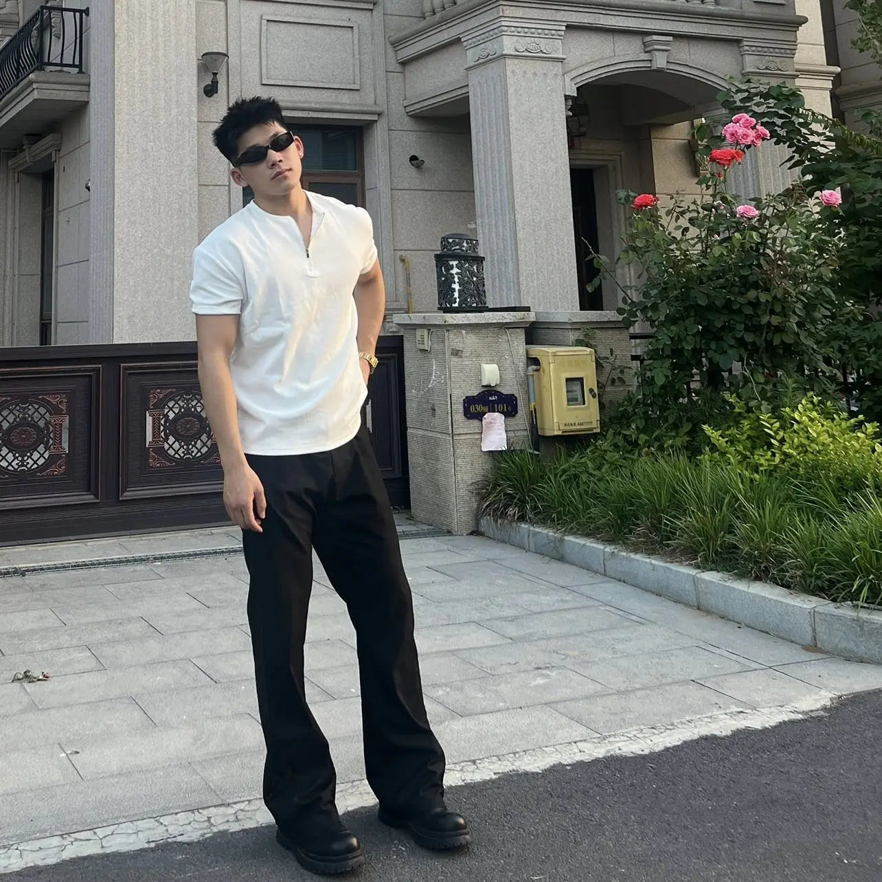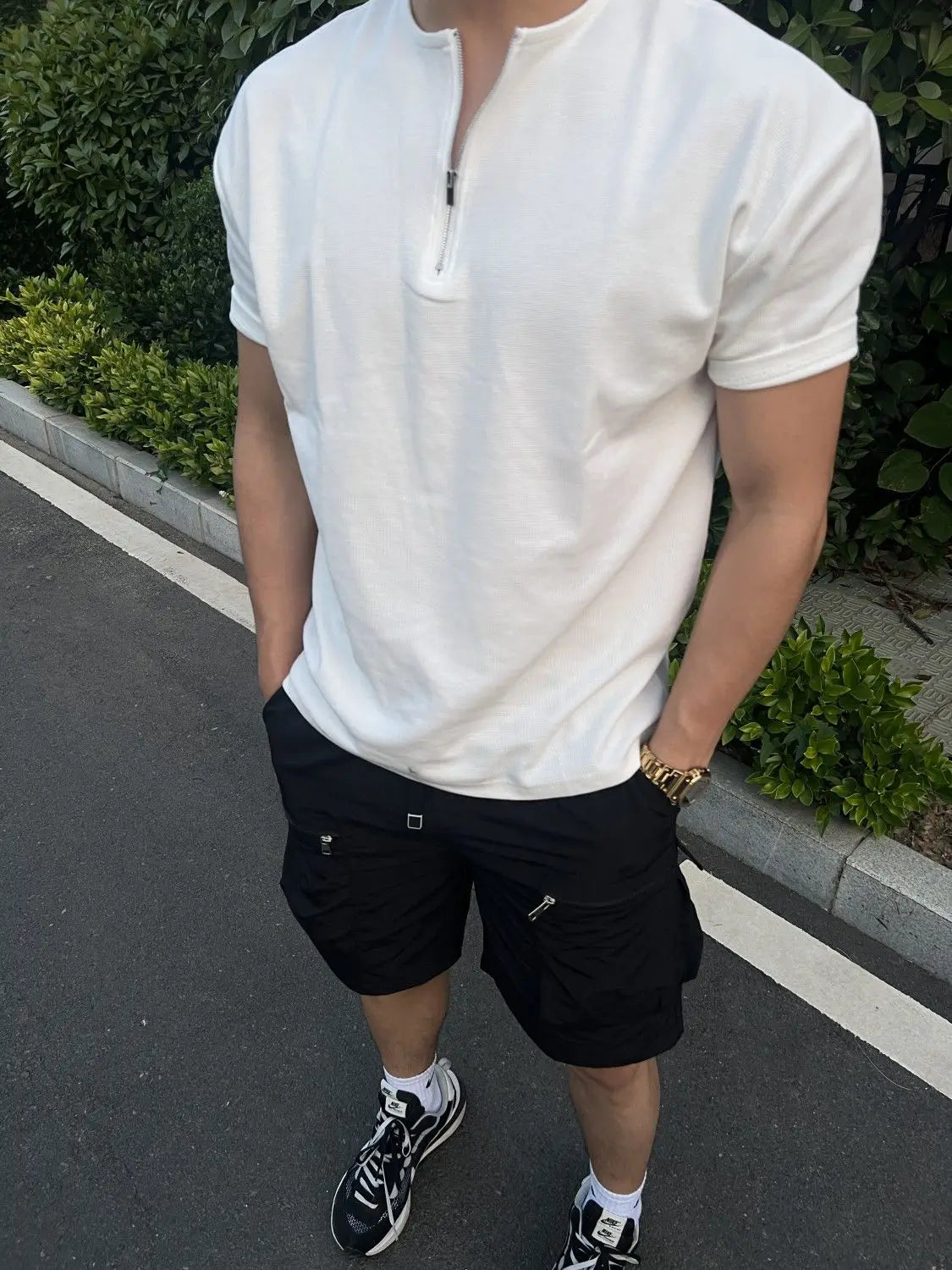 WIAOFELLAS - T Shirts for Men Summer New High-end Advanced Casual Simple Breathable and Versatile Half-zipper Waffle Short-sleeved T-shirt