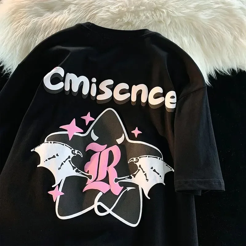 WIAOFELLAS - Trendy Nicheshort Sleeve Cotton T-Shirt For Men Loose Fit Summer Hip Hop Korean Style Casual Tshirt InsFashionable Half Sleeve T