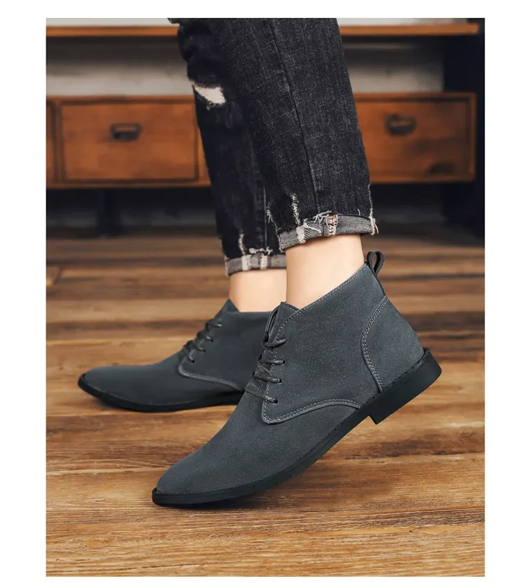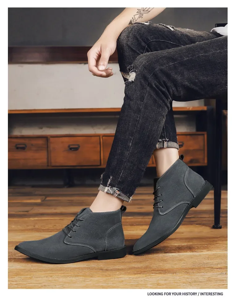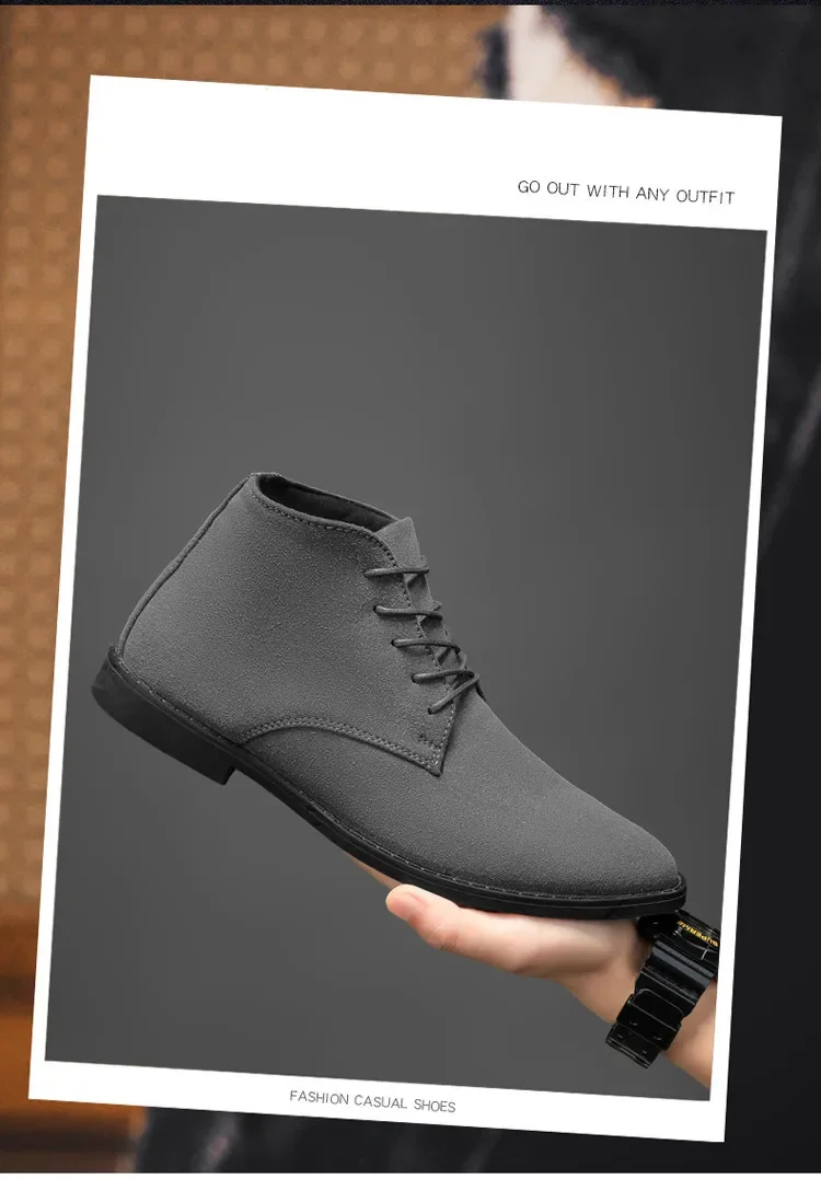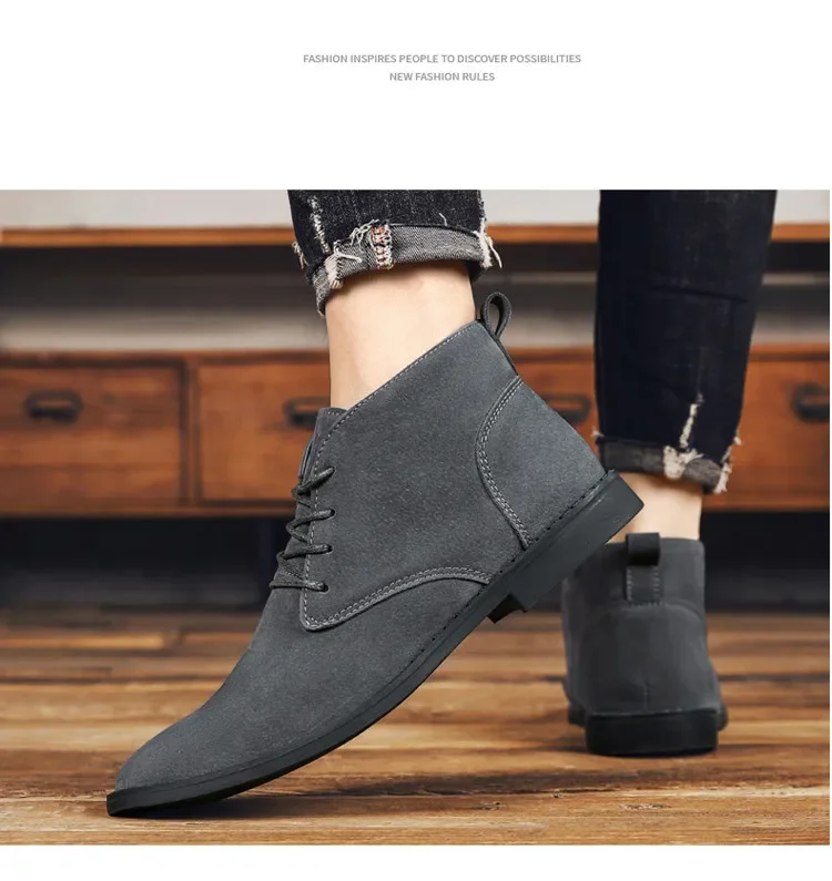 WIAOFELLAS - Classic Grey Dress Shoes Man Pointed-Toe Flat Comfortable Man Shoes High Top Designer Luxury Large Size 46 Leather Casual Shoes