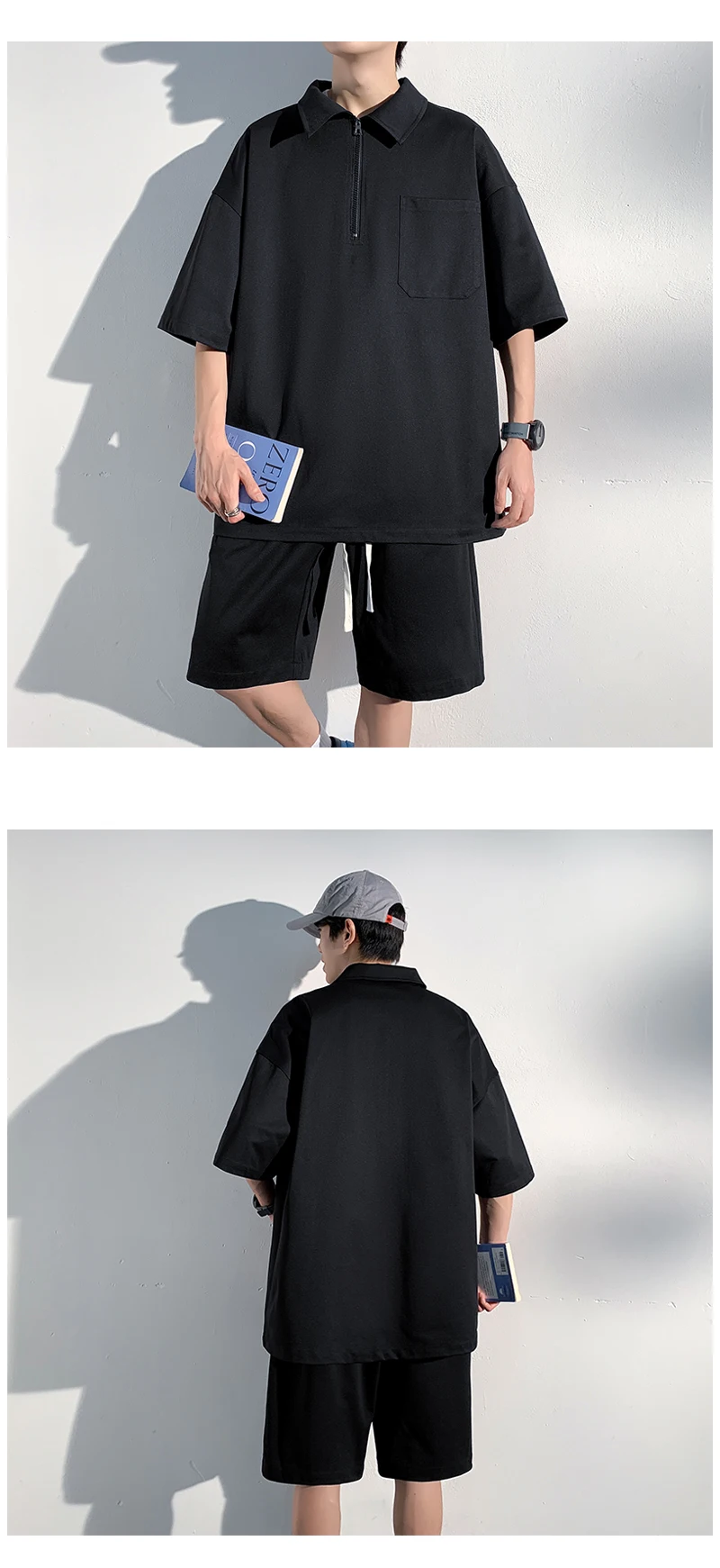 Wiaofellas - Fashion Suits Short Sets 2 Piece Set Men's Clothing Trends Costumes Summer Outfit Sports Sleeve Pants Two-piece Trendy New