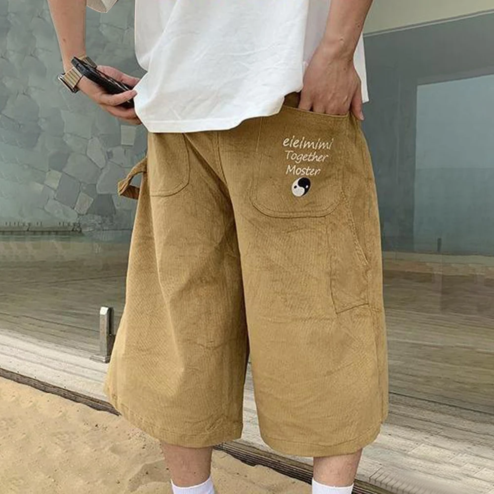 Wiaofellas  -  Mens Corduroy Casual Wide Leg Cropped Pants Genderless Spring New Breathable Streetwear Loose Versatile Shorts Unisex