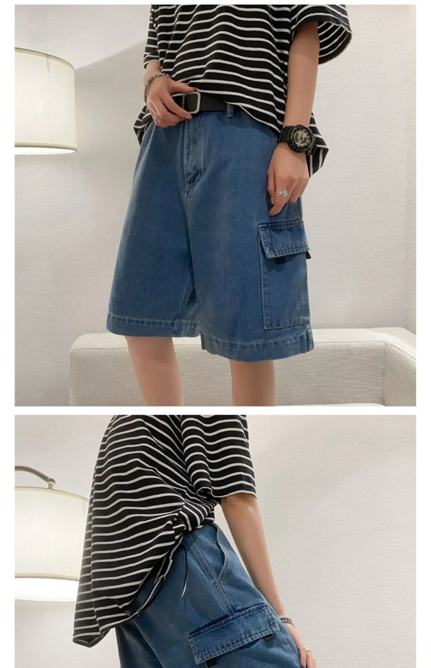WIAOFELLAS - 2025 Fashion Men Summer Retro Casual Big Pocket Shorts Mens Thin Five Point Casual Pants Male Loose Straight Denim Shorts P902