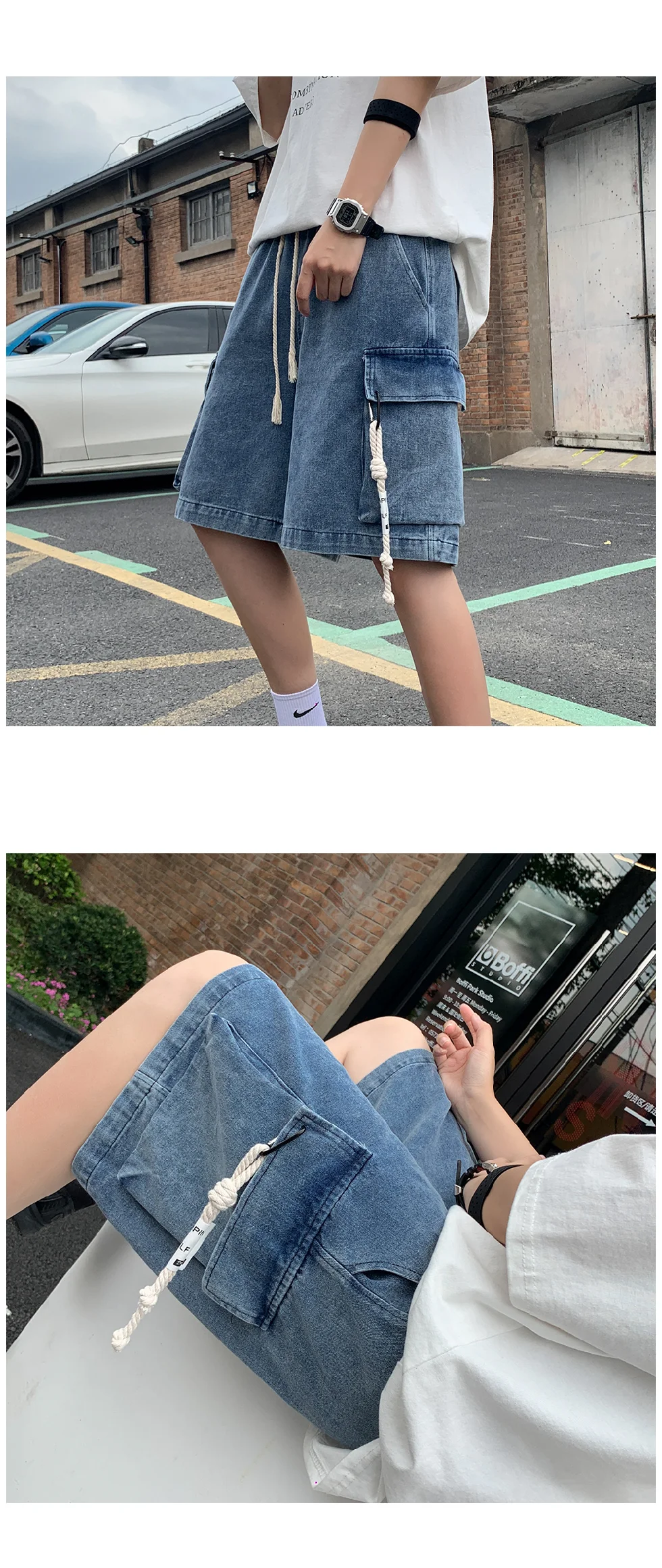 WIAOFELLAS - Denim shorts men's summer tide brand casual medium pants tooling loose large size five point pants