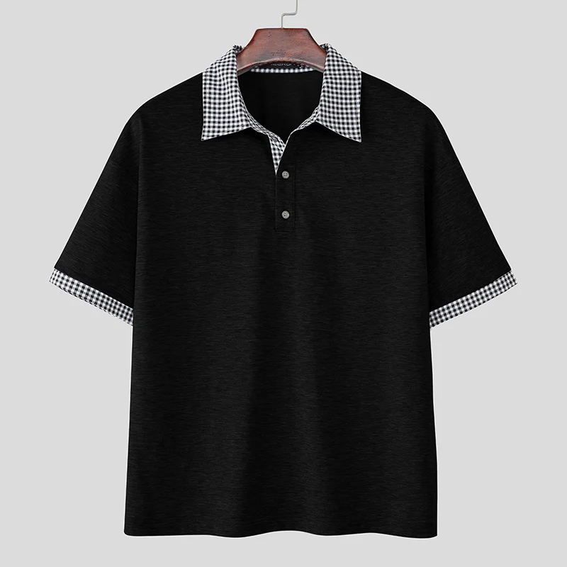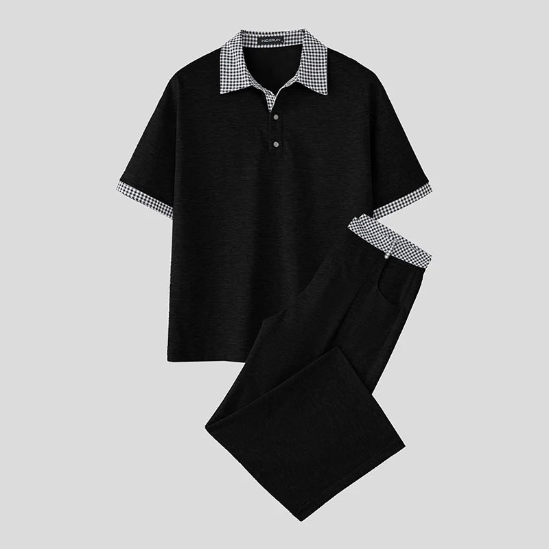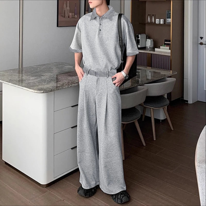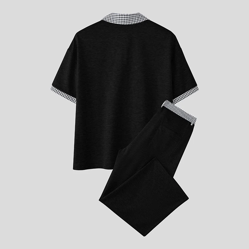WIAOFELLAS - Men Sets Patchwork Lapel Short Sleeve T Shirt & Pants Two Pieces Sets Streetwear Loose Fashion Men's Casual Suits