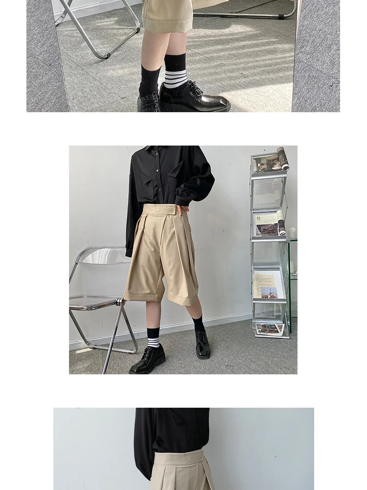 Wiaofellas New Niche Design Pasted High Waist Khaki Causal Wide Leg Shorts Summer Korean Trend Men's Knee Length Pants 2Y8372