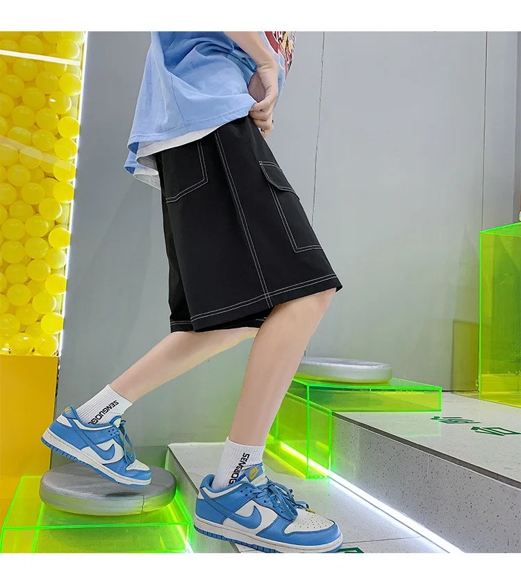 Wiaofellas Simple 5-points Casual Pants Summer All-match Loose Straight Wide-leg Shorts Casual Sports Trend Multi-pocket Overalls Thin