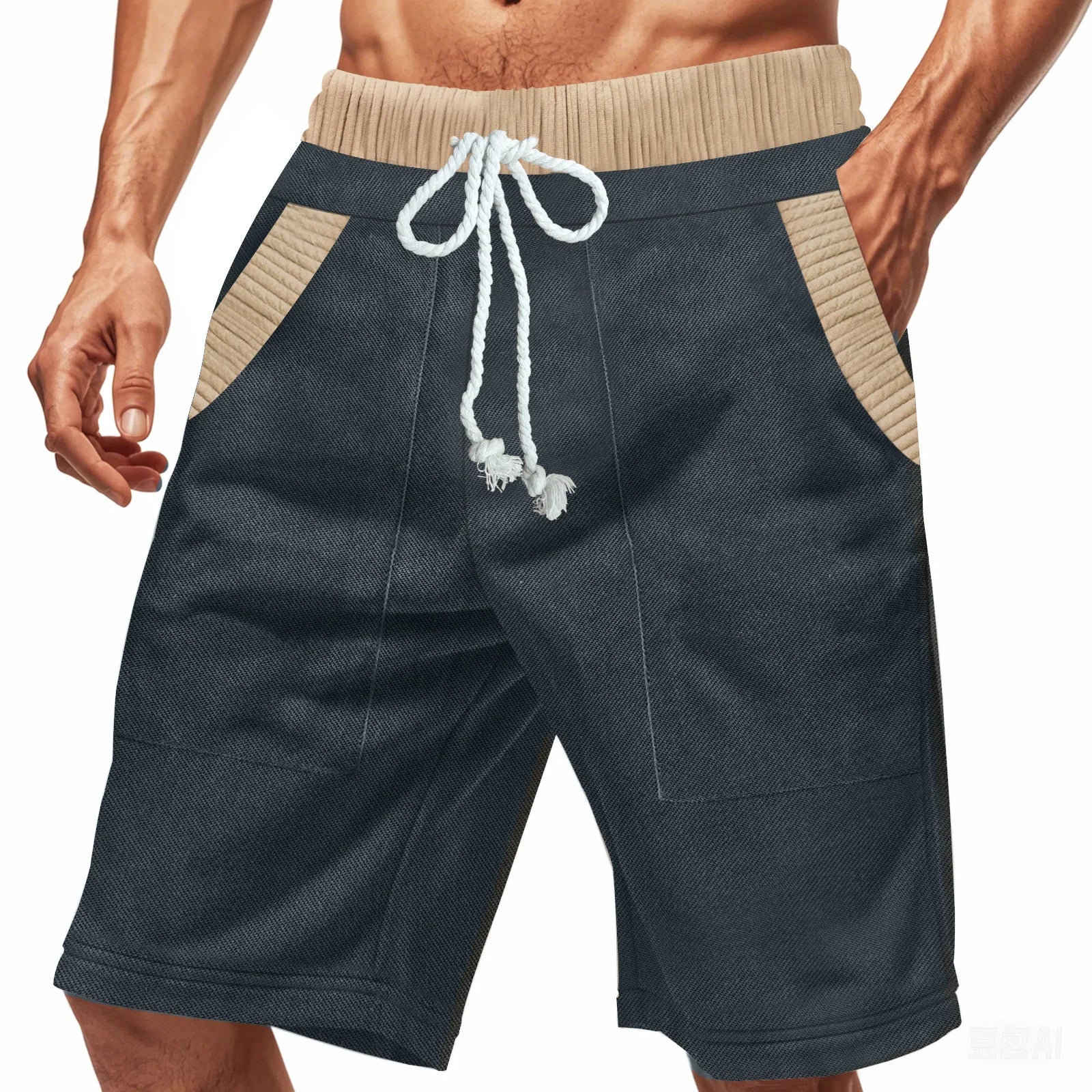 WIAOFELLAS - Summer Men's Casual Shorts Patchwork Drawstring Running Sports Short Pants Male Jogger High Street Straight Knee Length Shorts
