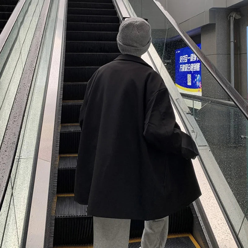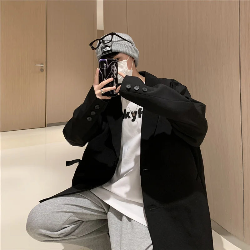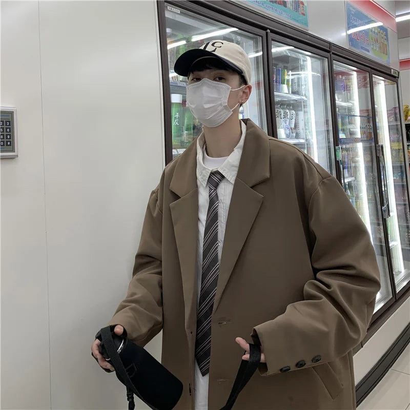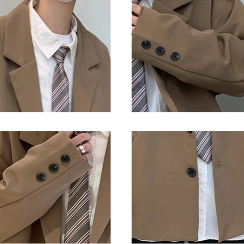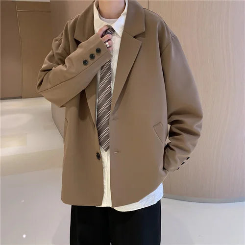 WIAOFELLAS - Blazers Men Casual Solid Color Loose Long Sleeve Singe Breasted Streetwear for Male Daily Outerwear Spring Fall Suit's Tops Chic