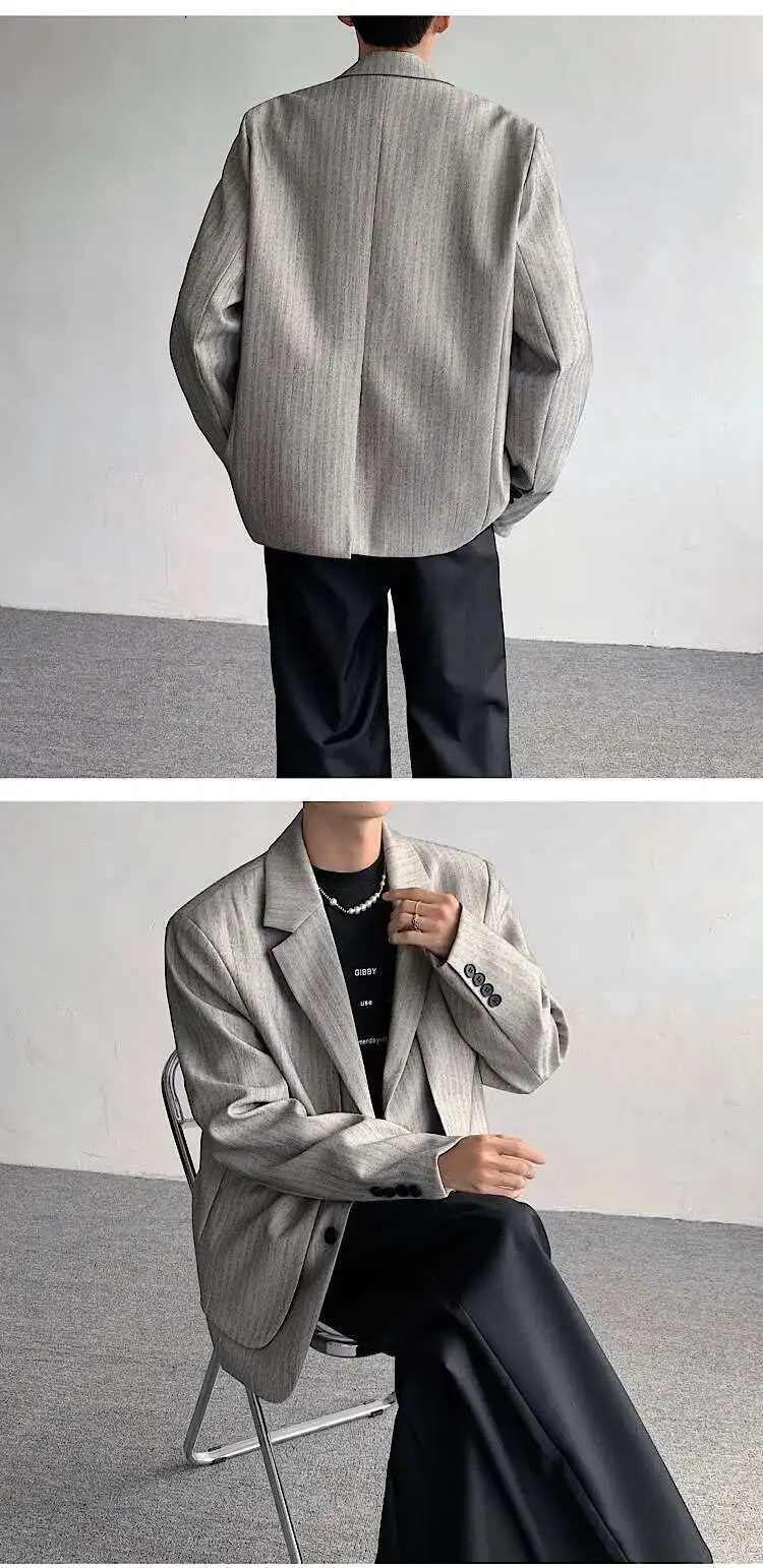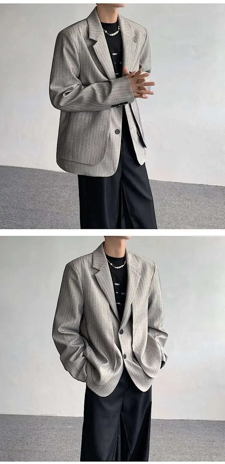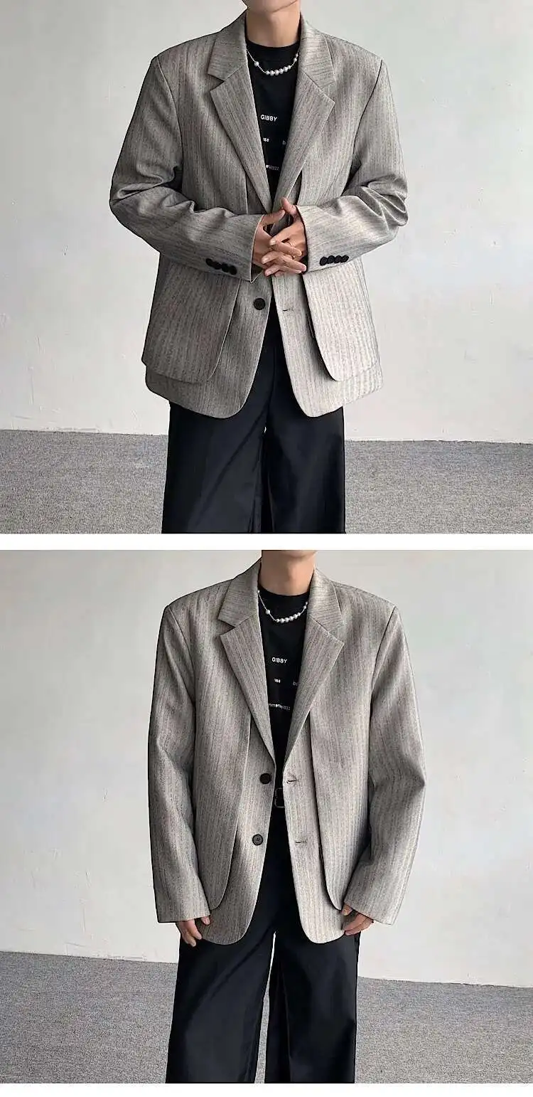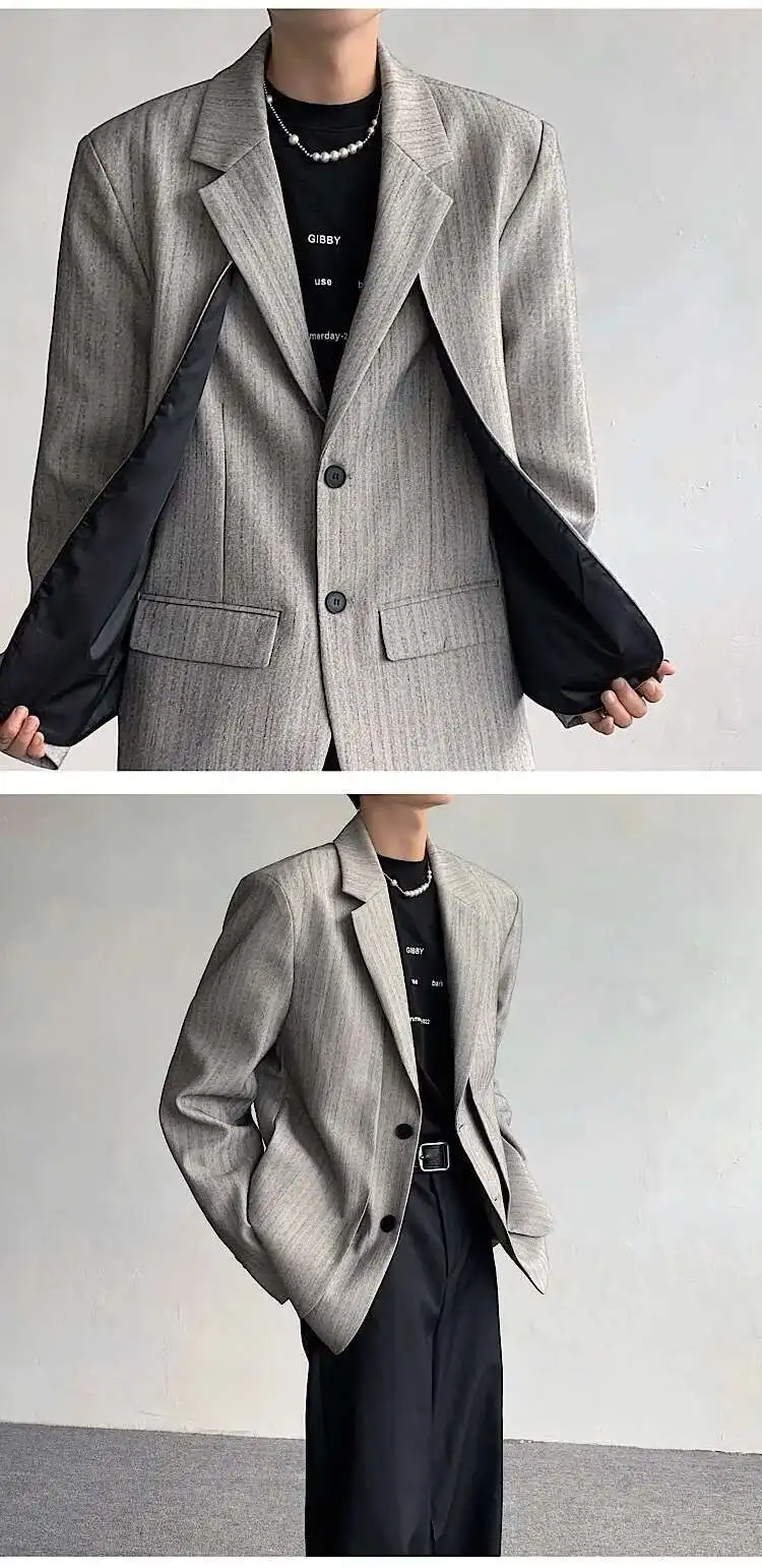 WIAOFELLAS - Fake Two Piece Men's Suit Shoulder Padded Design Solid Color Stripe Single Breasted Spring New Male Blazers Fashion