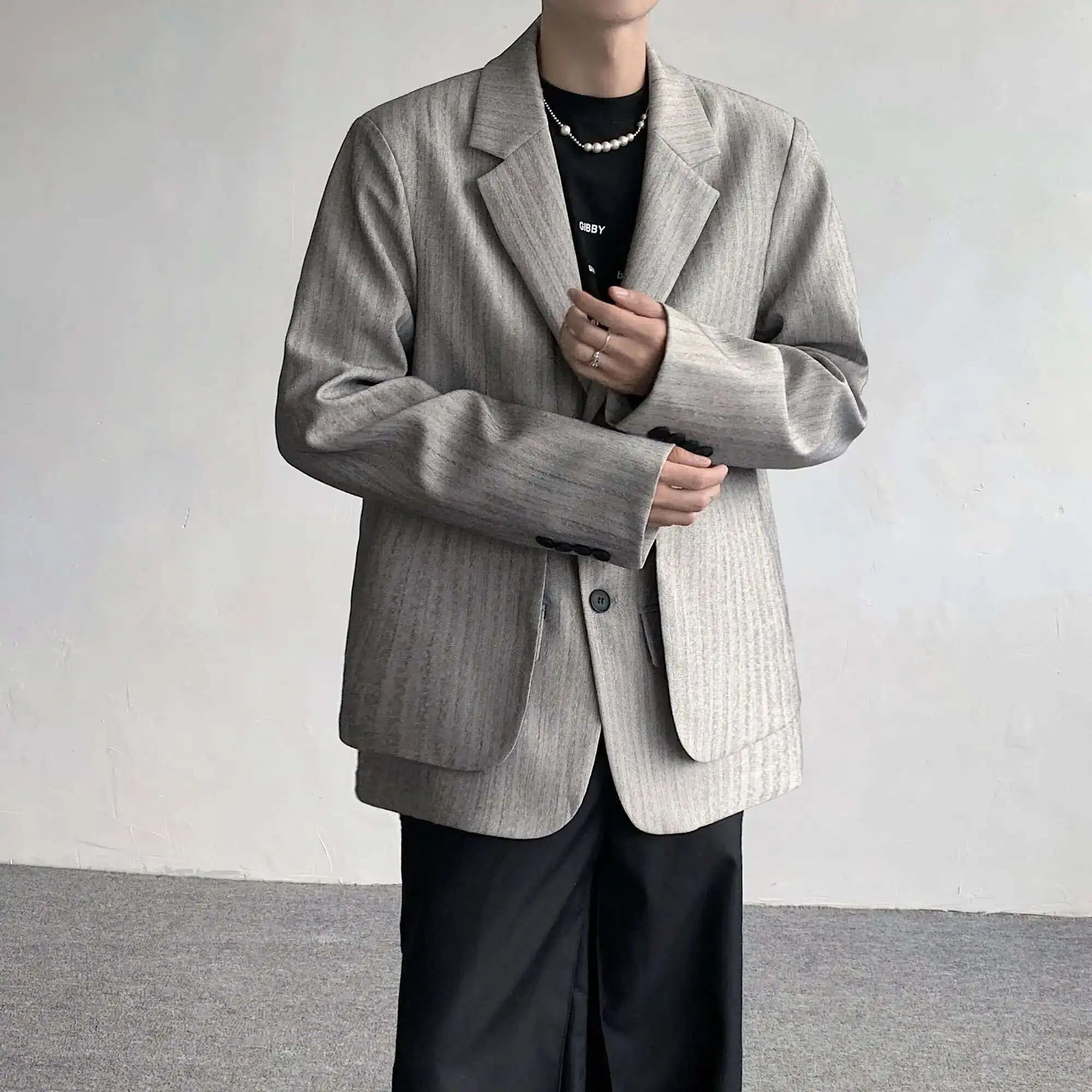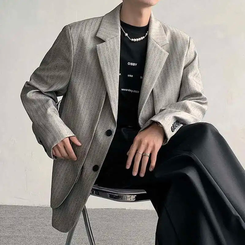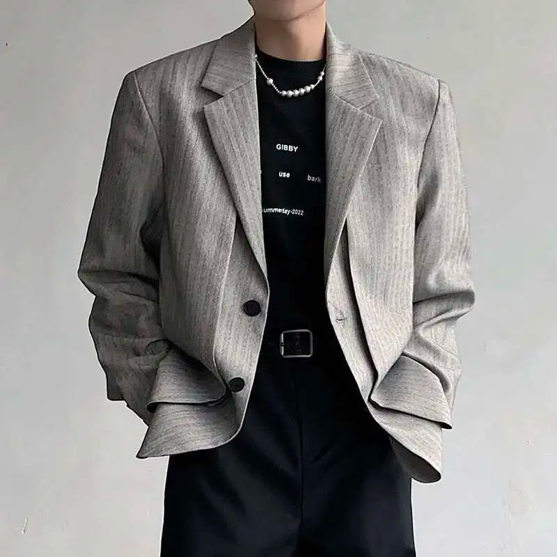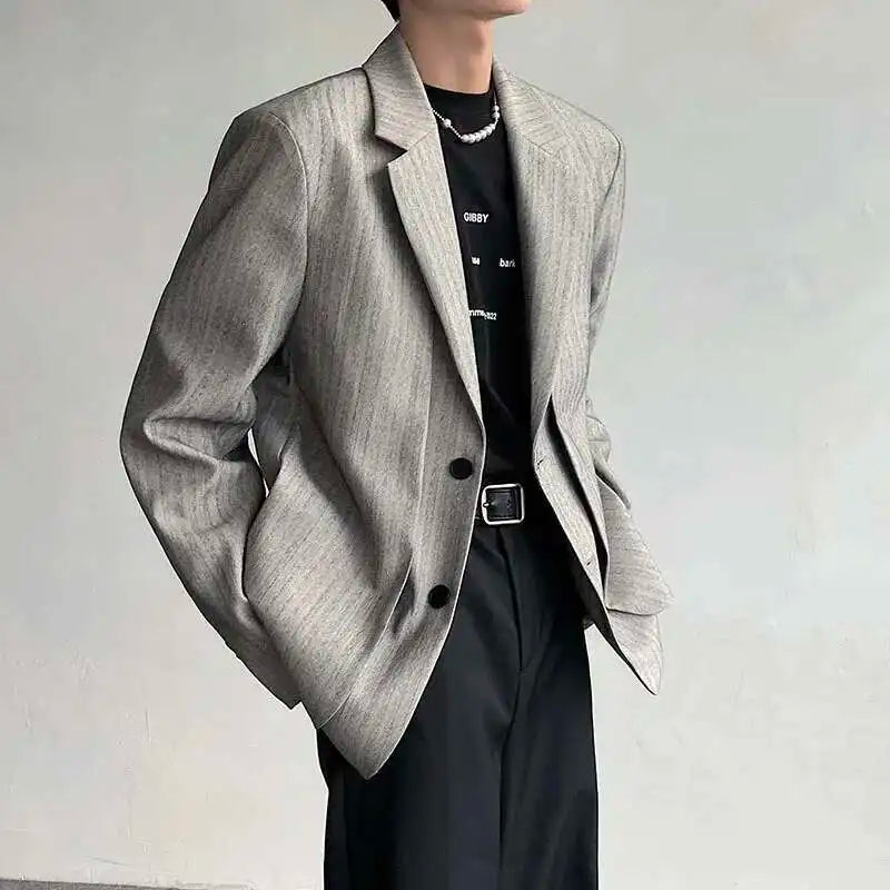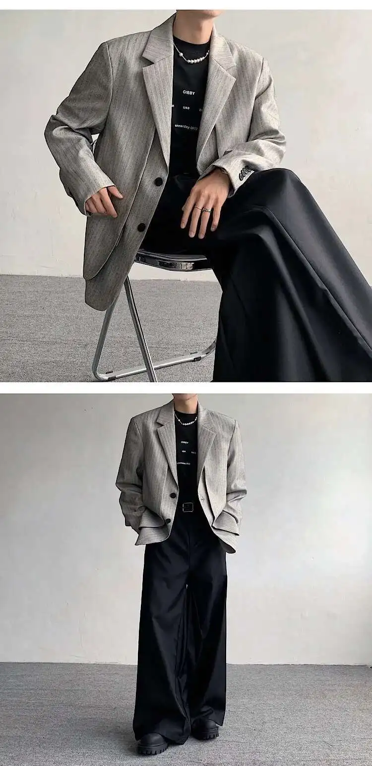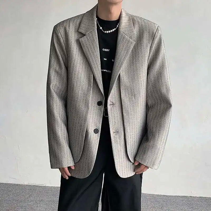 WIAOFELLAS - Fake Two Piece Men's Suit Shoulder Padded Design Solid Color Stripe Single Breasted Spring New Male Blazers Fashion