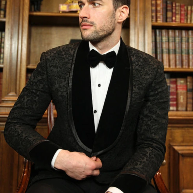 Wiaofellas - Jacquard Wedding Suit Jacket for Men Shawl Lapel Male Prom Blazer 1 Piece Floral Formal Groom Tuxedo Jacket Slim Fit Terno