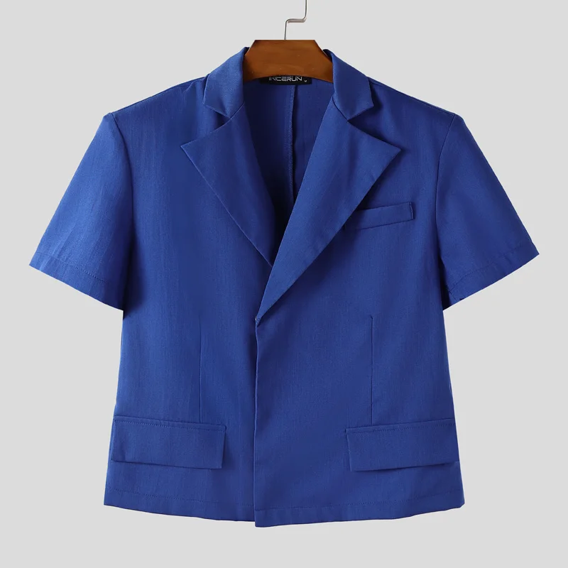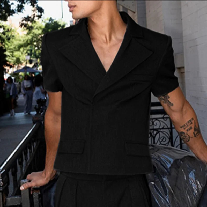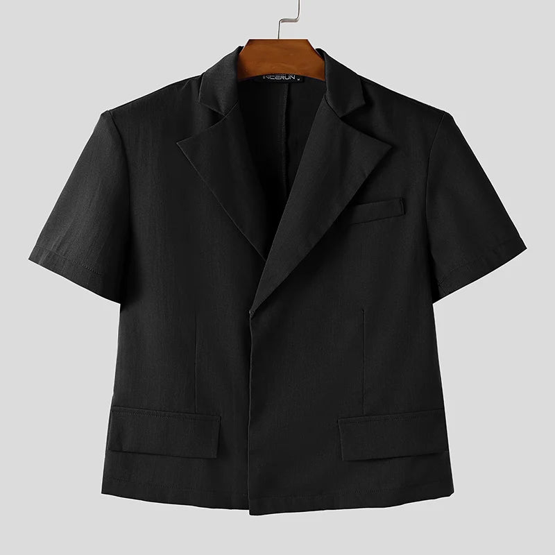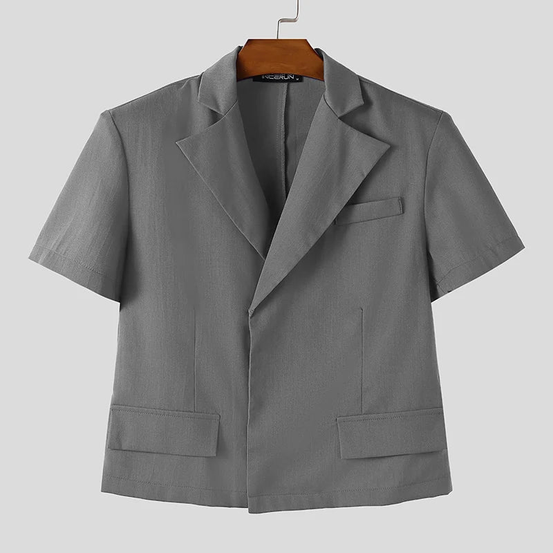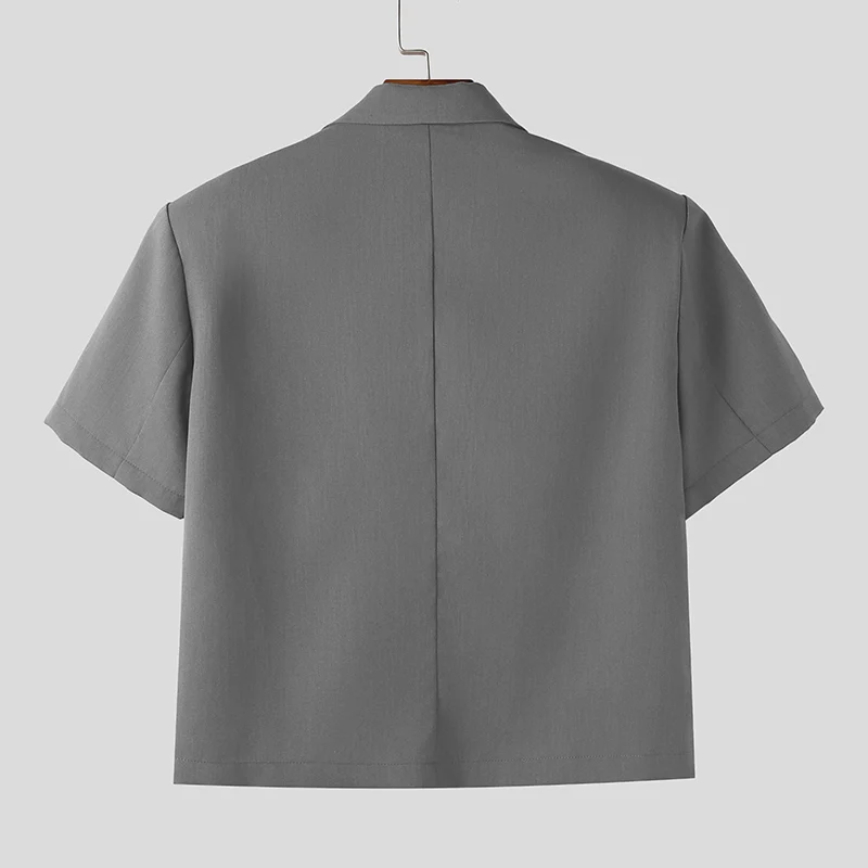 WIAOFELLAS - Men Blazer Solid Color Lapel Short Sleeve Casual Crop Blazer Men Streetwear Fashion Elegant Leisure Male Suit S-5XL 2026