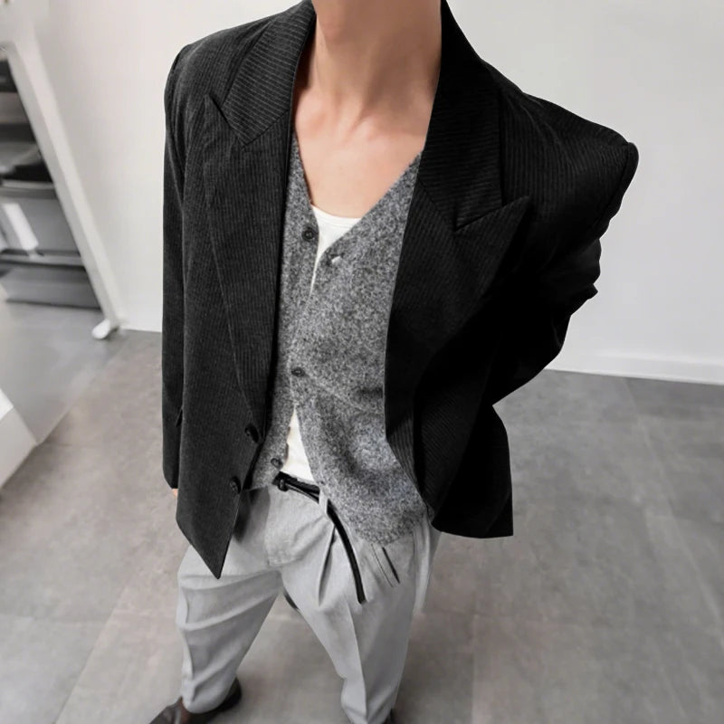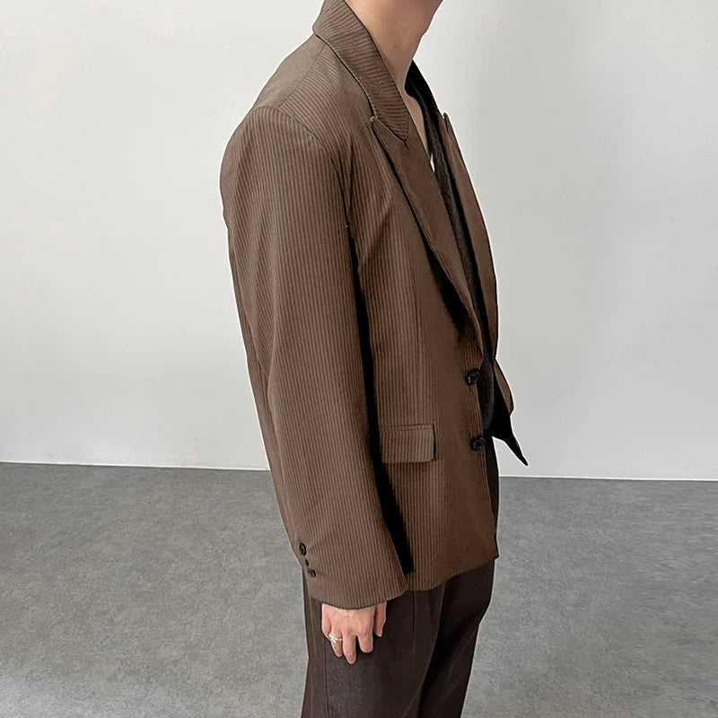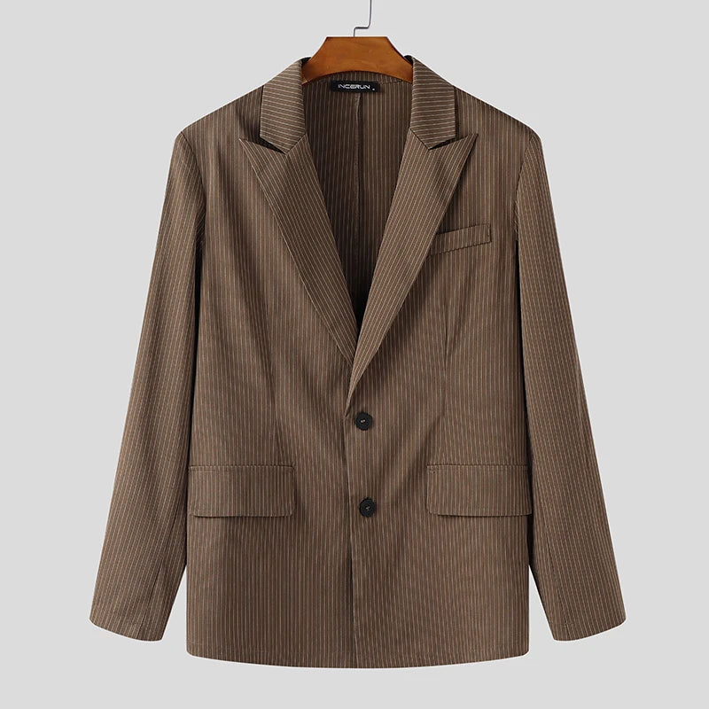WIAOFELLAS - Men Striped Blazer Lapel Long Sleeve Button Casual Male Suit Streetwear Elegant Fashion Thin Coats Men Blazer S-5XL