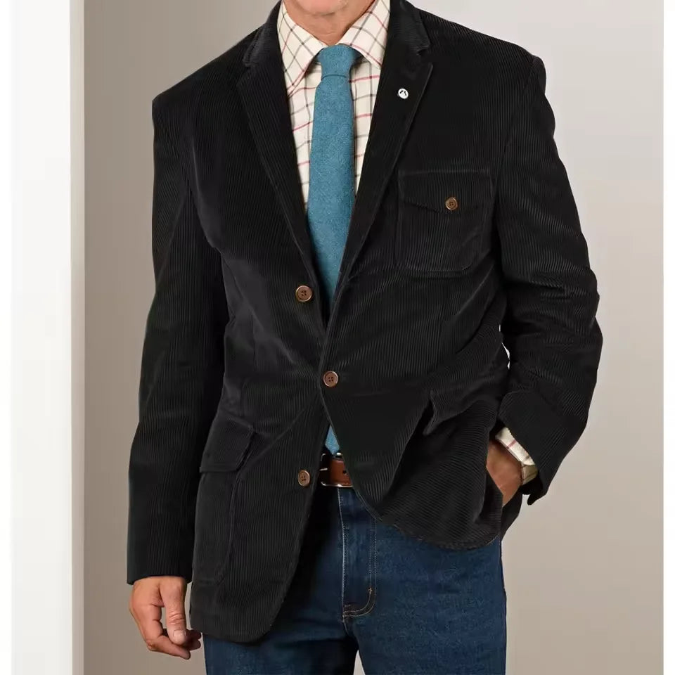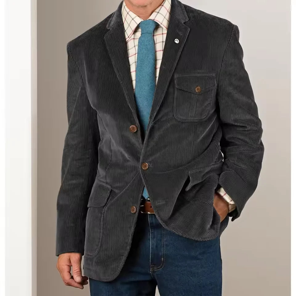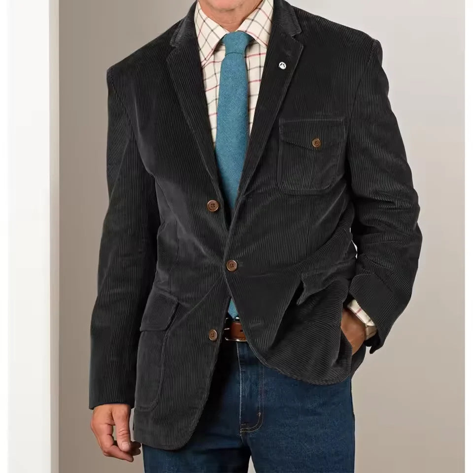 WIAOFELLAS - Mens Corduroy Blazer Single Breasted Casual Jacket Fashion Slim Fit Comfortable Elegant Suit Jacket Business Attire Formal Wear