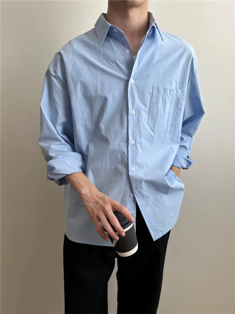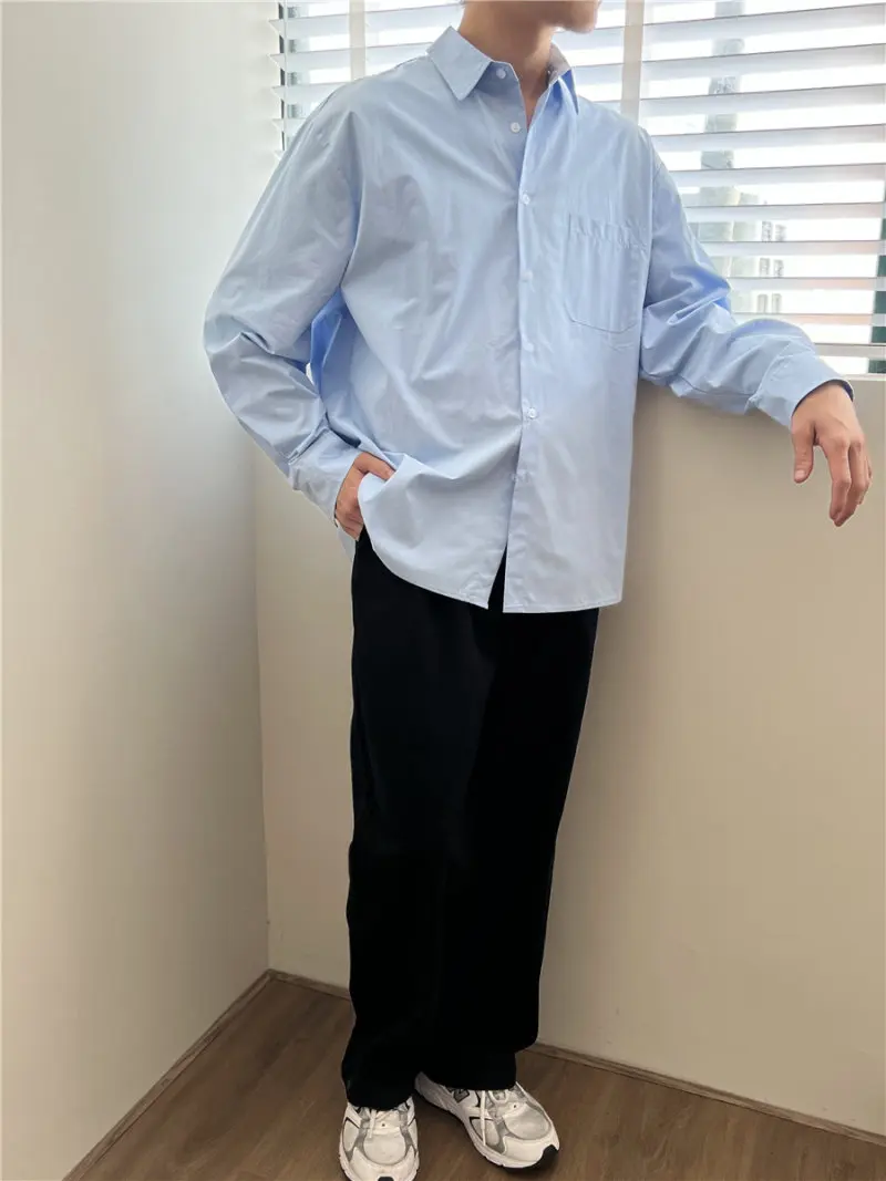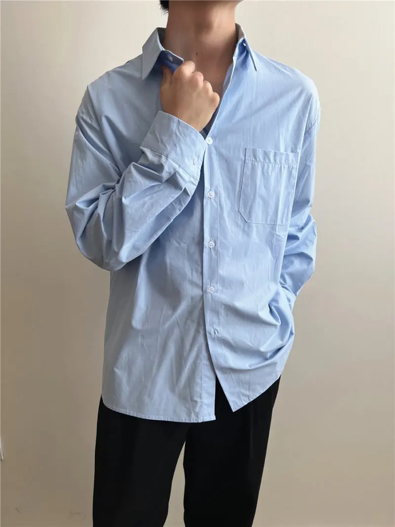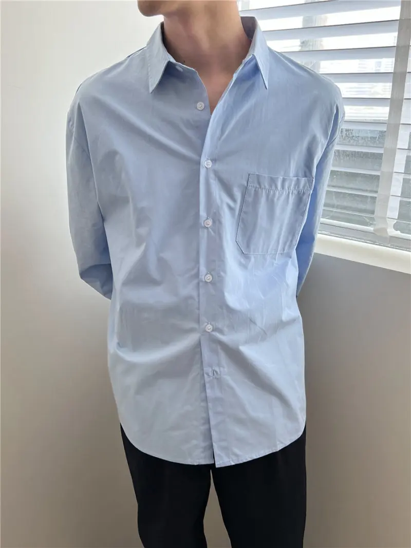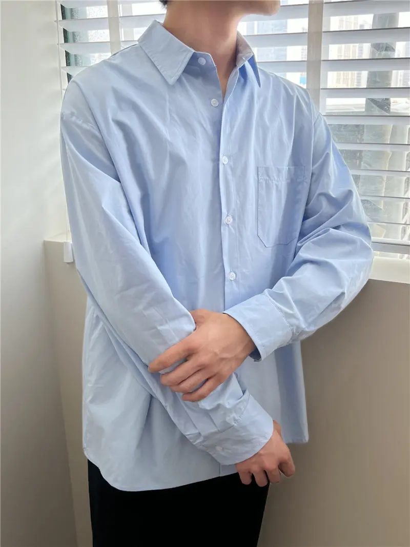 Wiaofellas  -  Blue White Long Sleeved Shirt Men Fashion Social Mens Dress Shirt Korean Loose Casual Shirts Mens Office Formal Shirt M-2XL