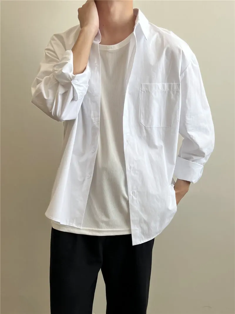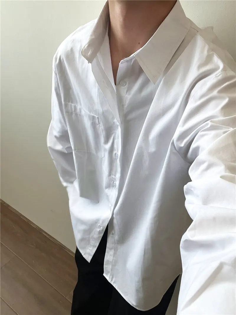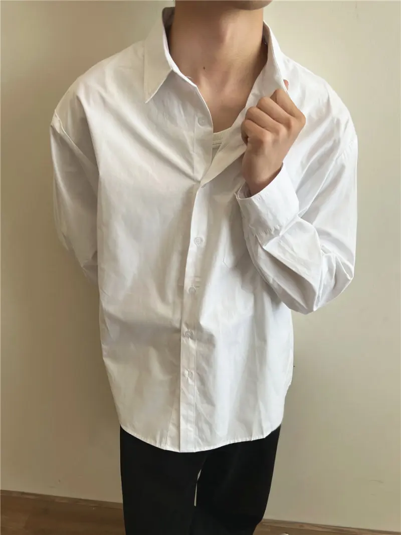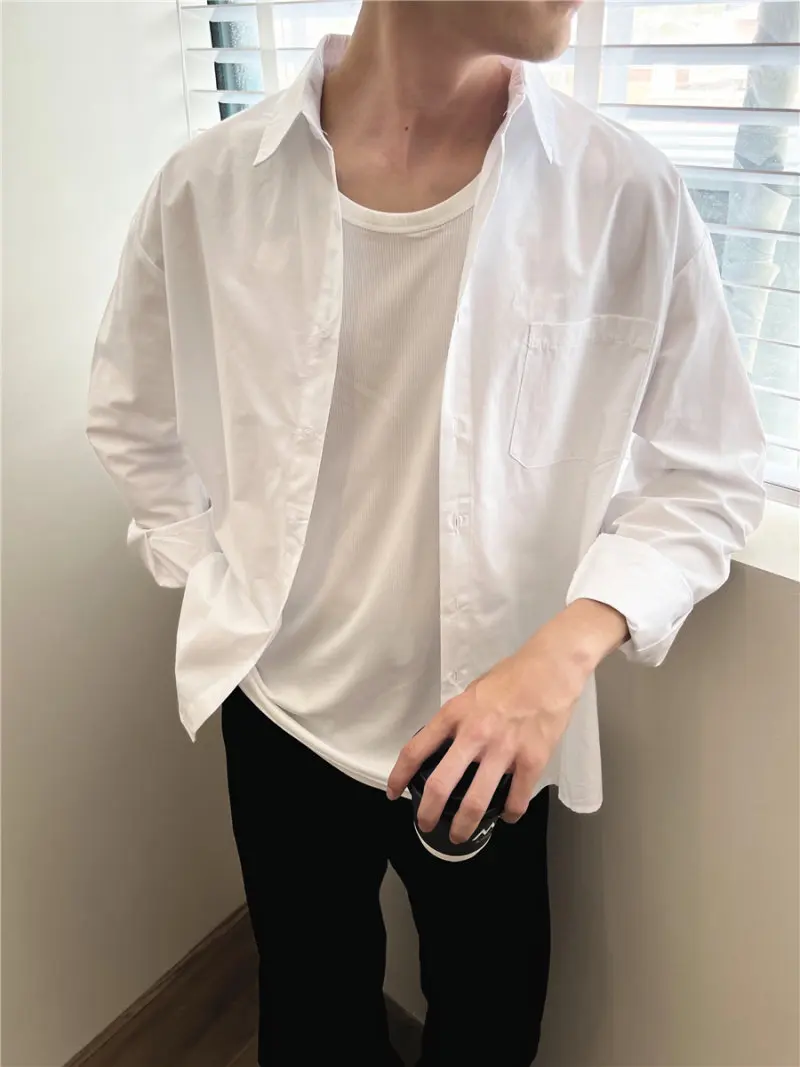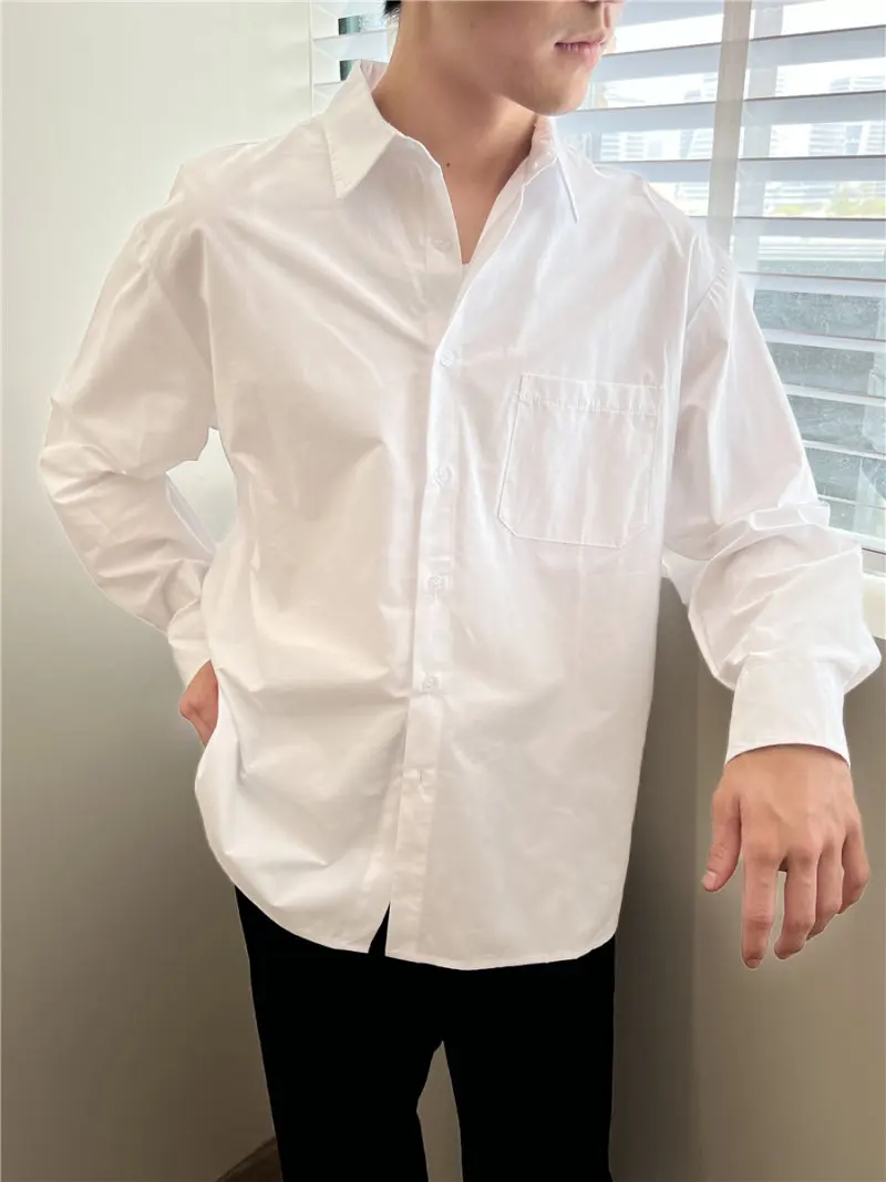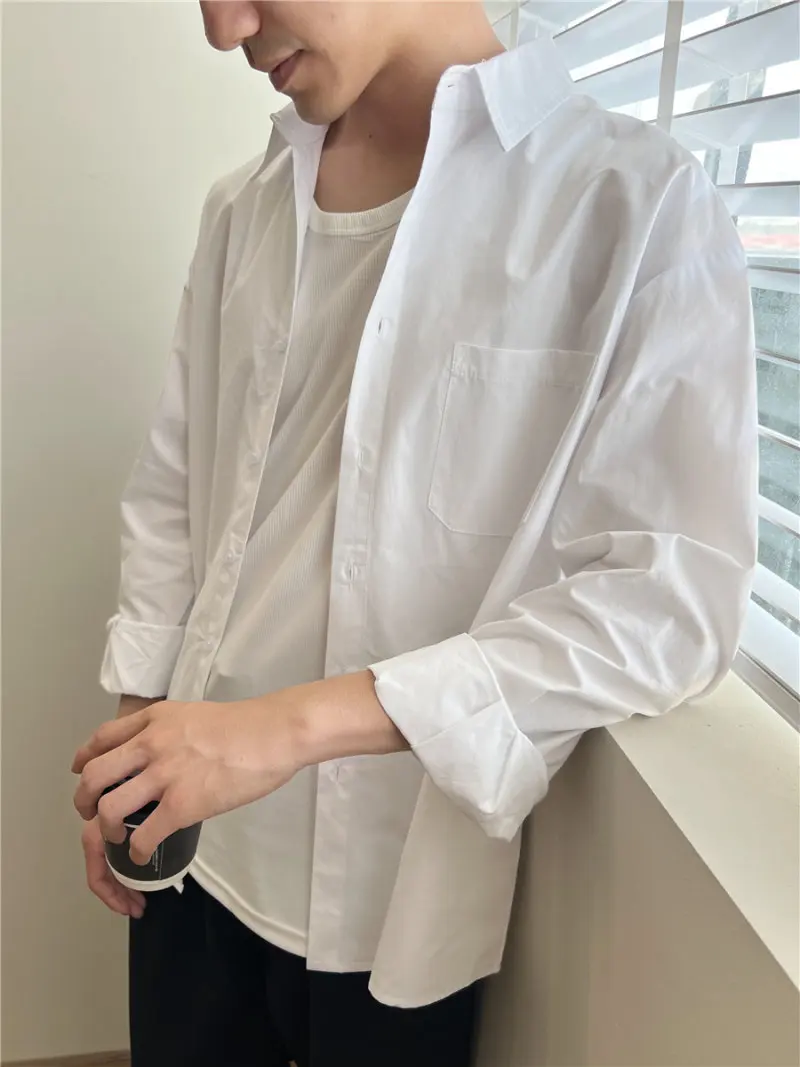Wiaofellas  -  Blue White Long Sleeved Shirt Men Fashion Social Mens Dress Shirt Korean Loose Casual Shirts Mens Office Formal Shirt M-2XL