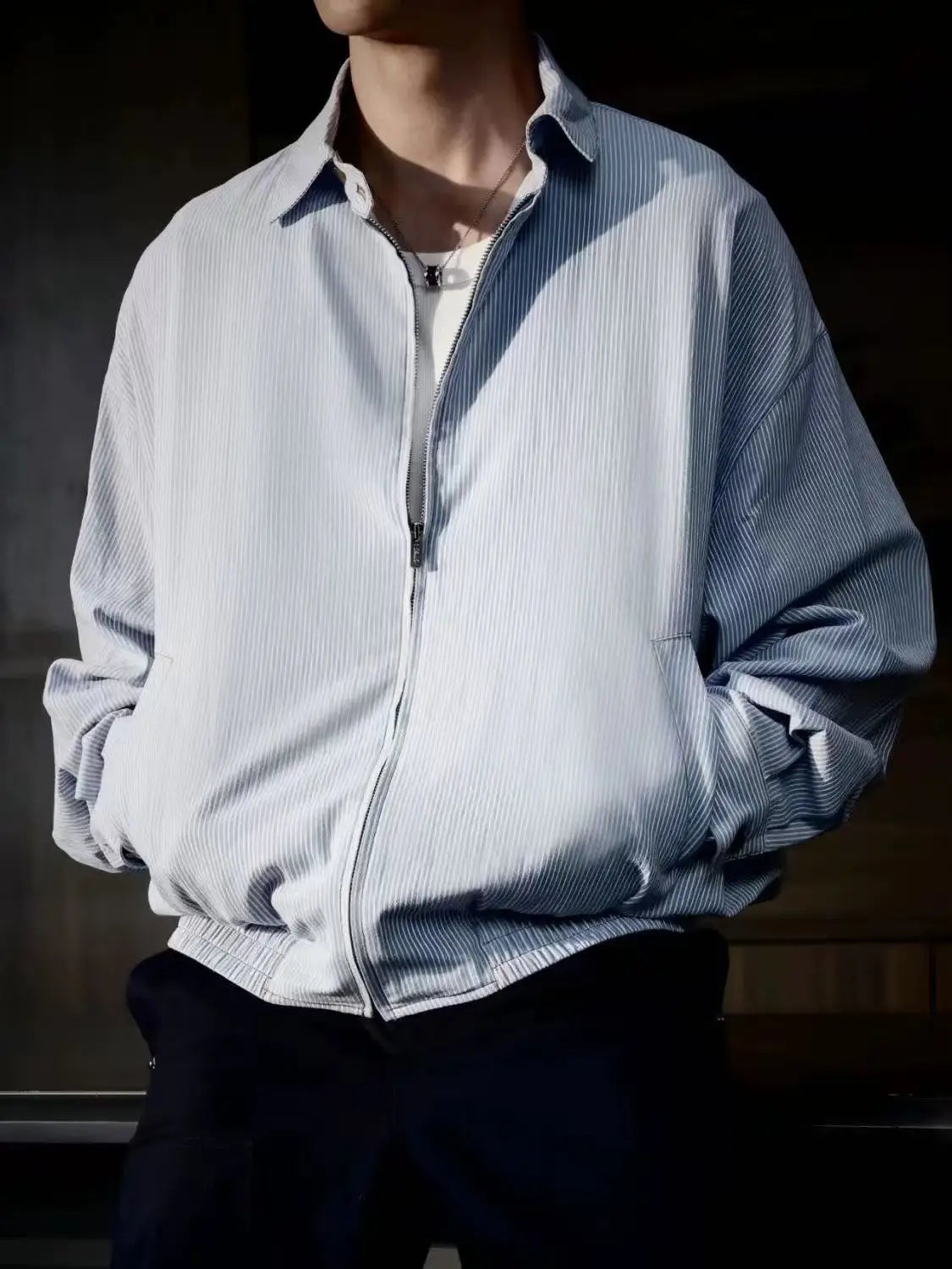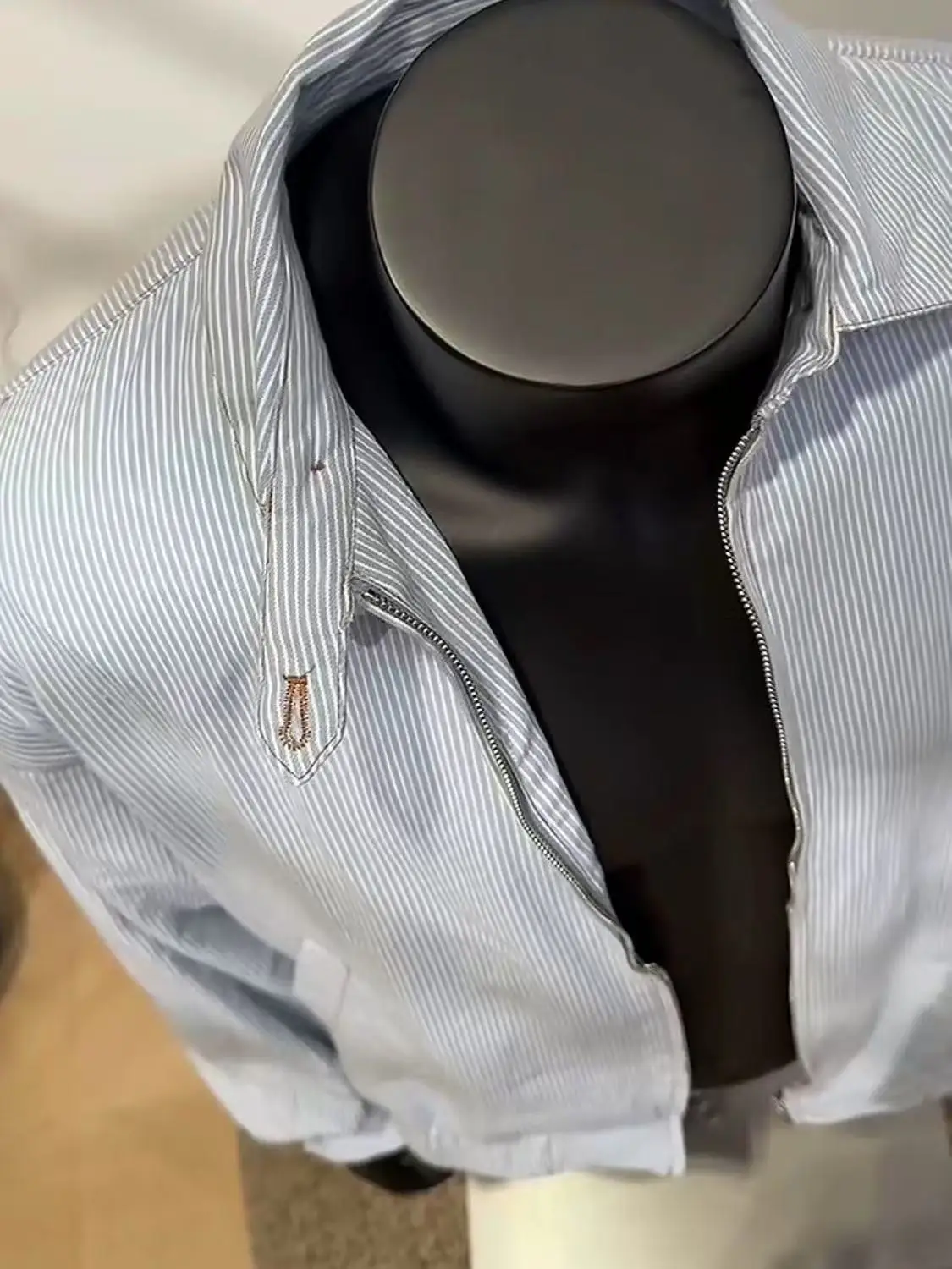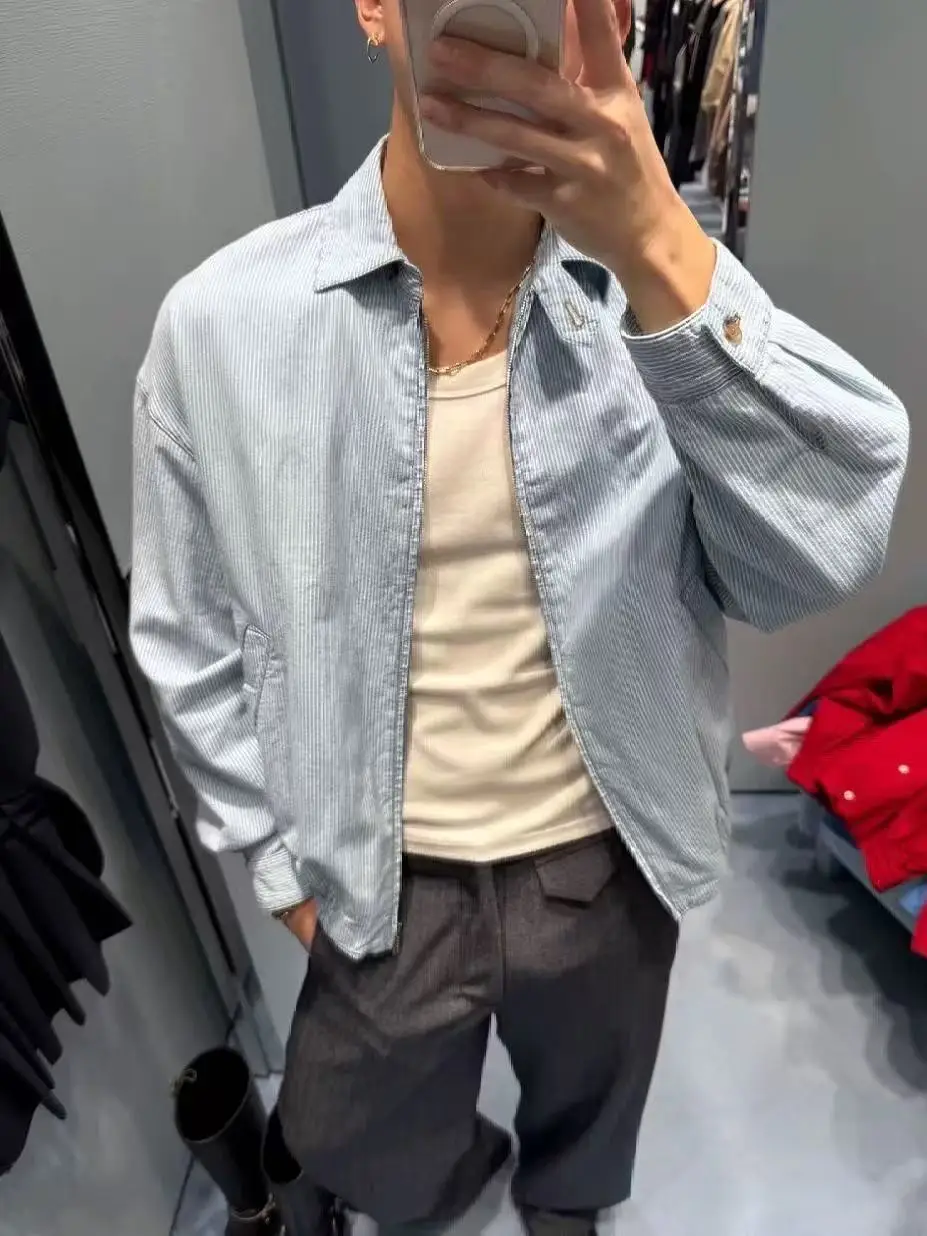 WIAOFELLAS - Autumn New Blue White Striped Men's Women's ort Jaet irt Outerwear mat High-End Commuting Sle Loose Fit Long Sleeve