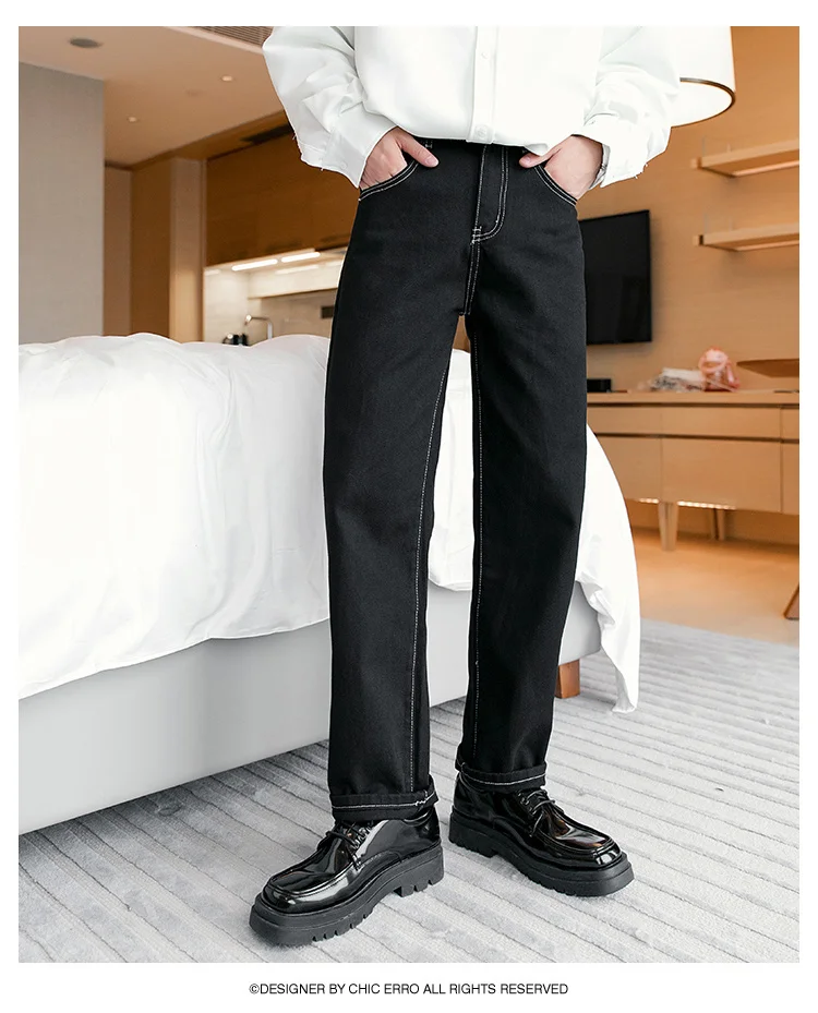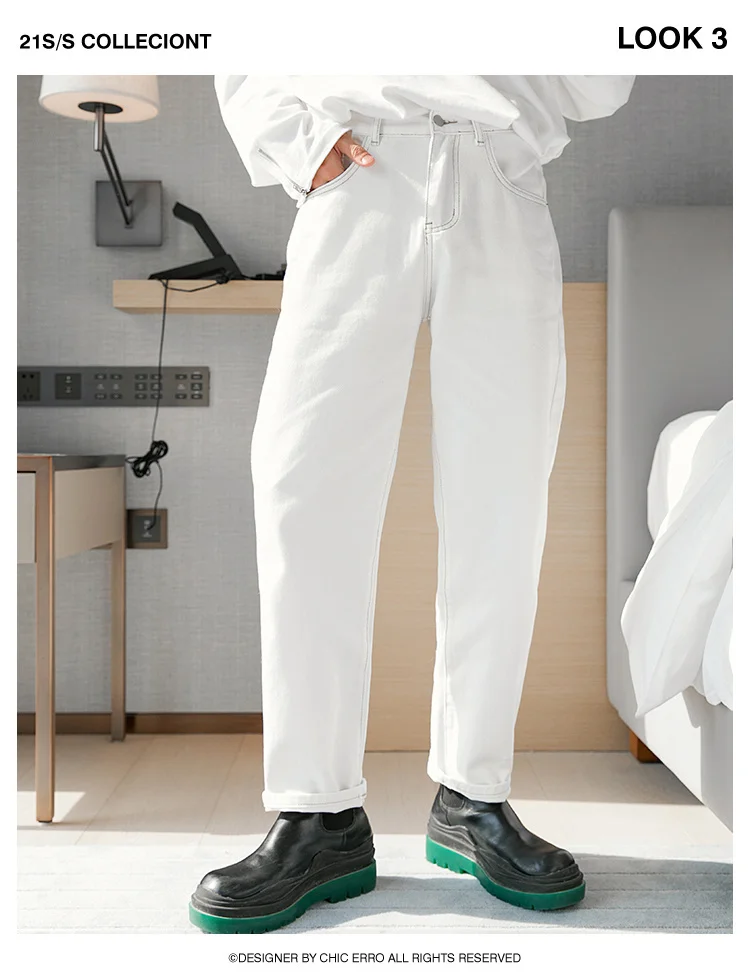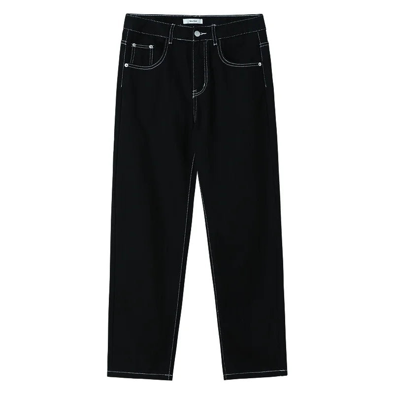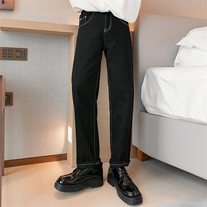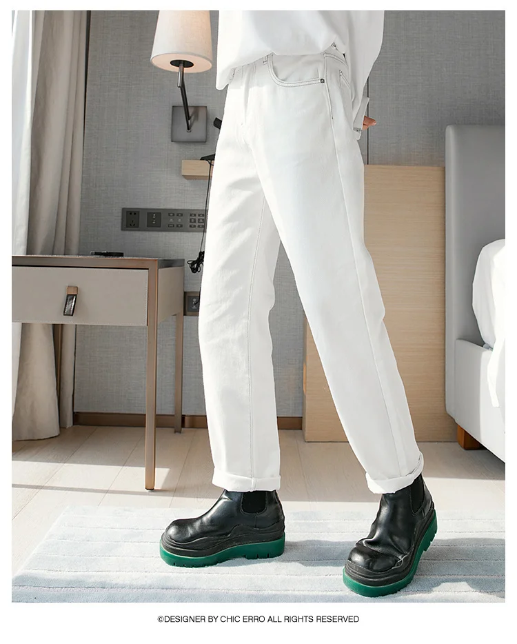 WIAOFELLAS - Fashion Men's Black White Jeans New Spring Casual Korean Straight Ankle Length Pants Tide Denim Trousers Tide 2Y2022