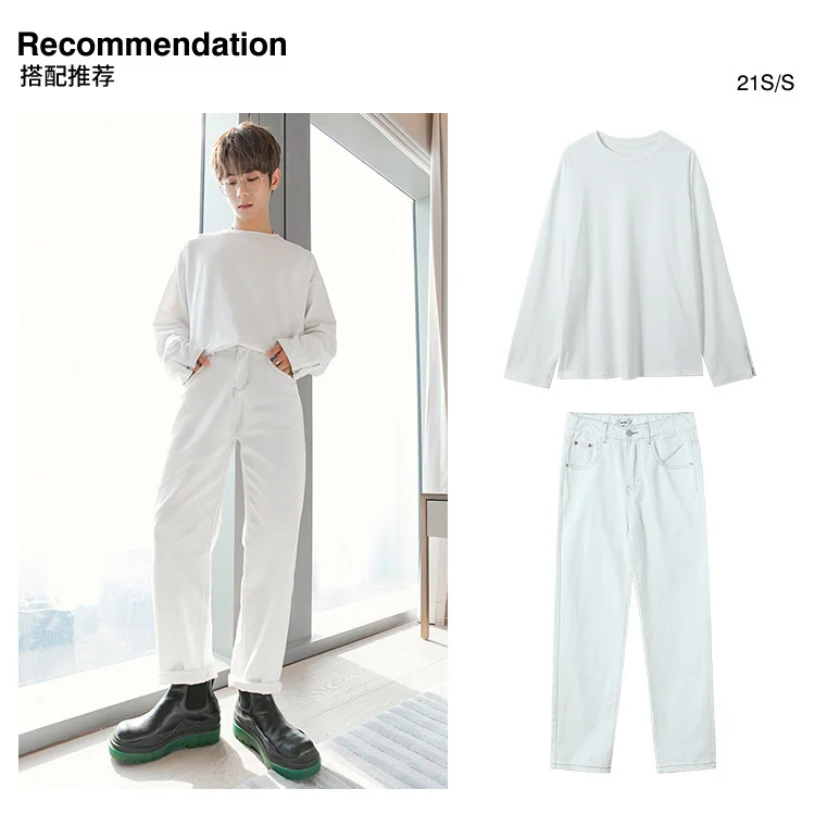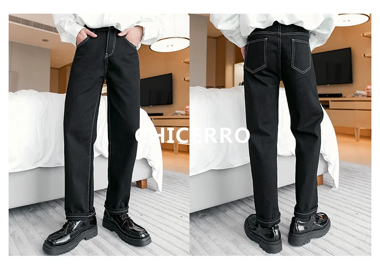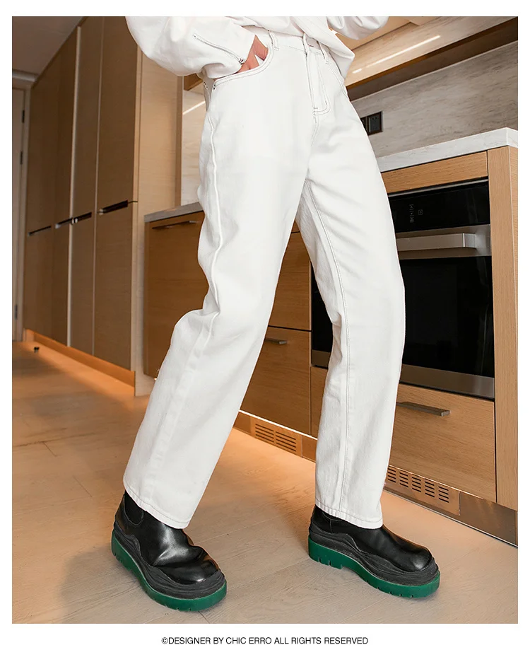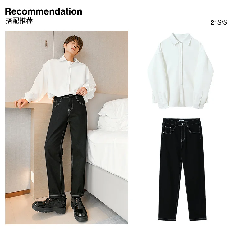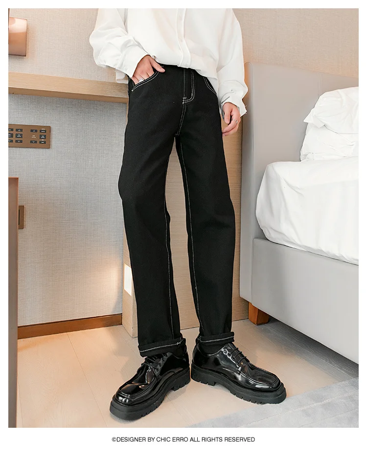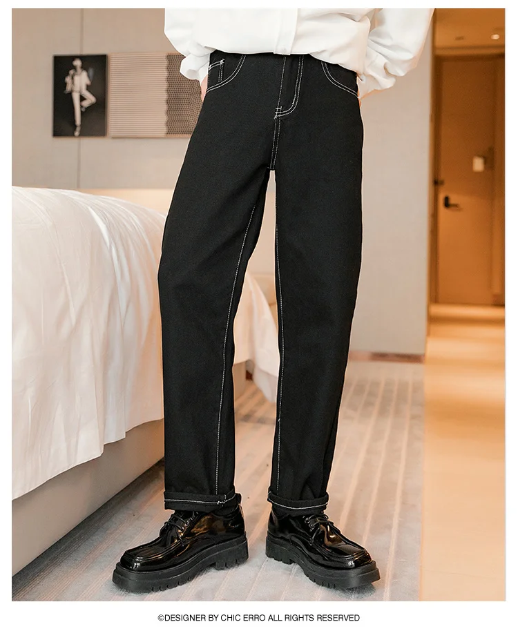 WIAOFELLAS - Fashion Men's Black White Jeans New Spring Casual Korean Straight Ankle Length Pants Tide Denim Trousers Tide 2Y2022