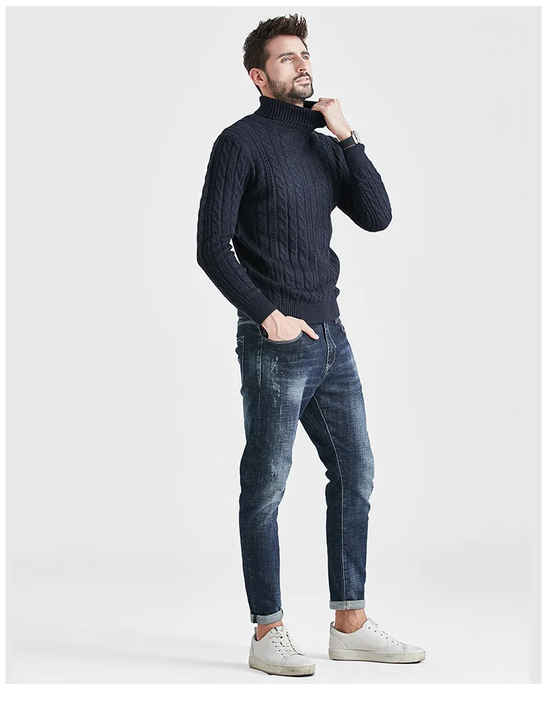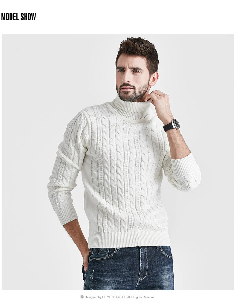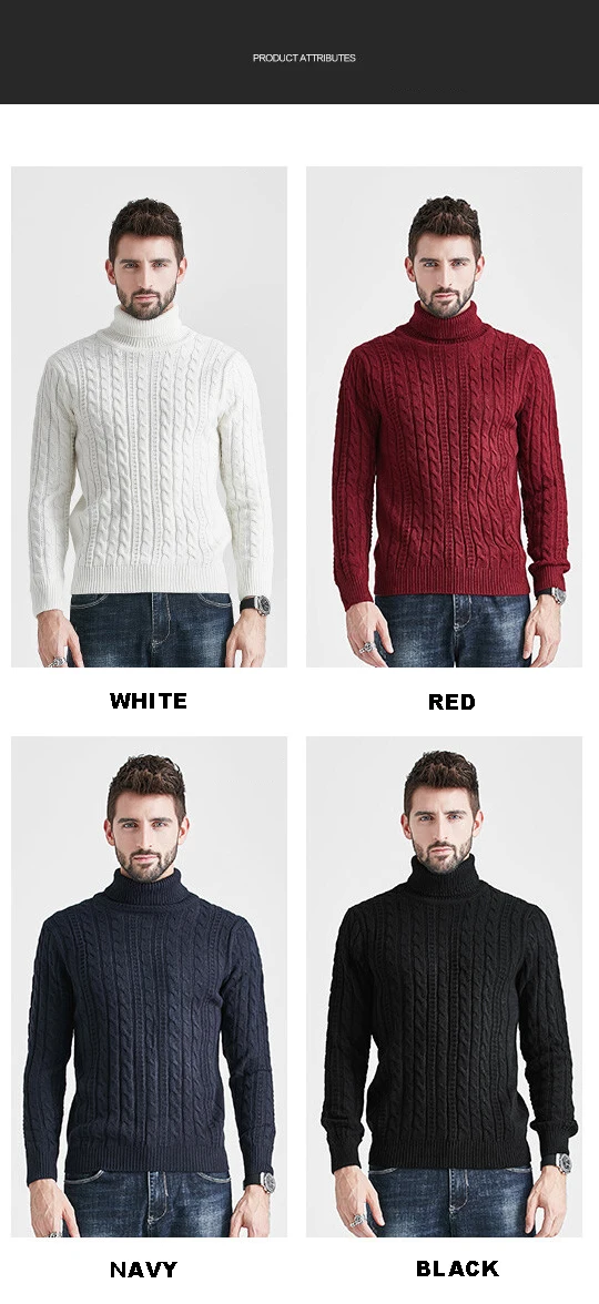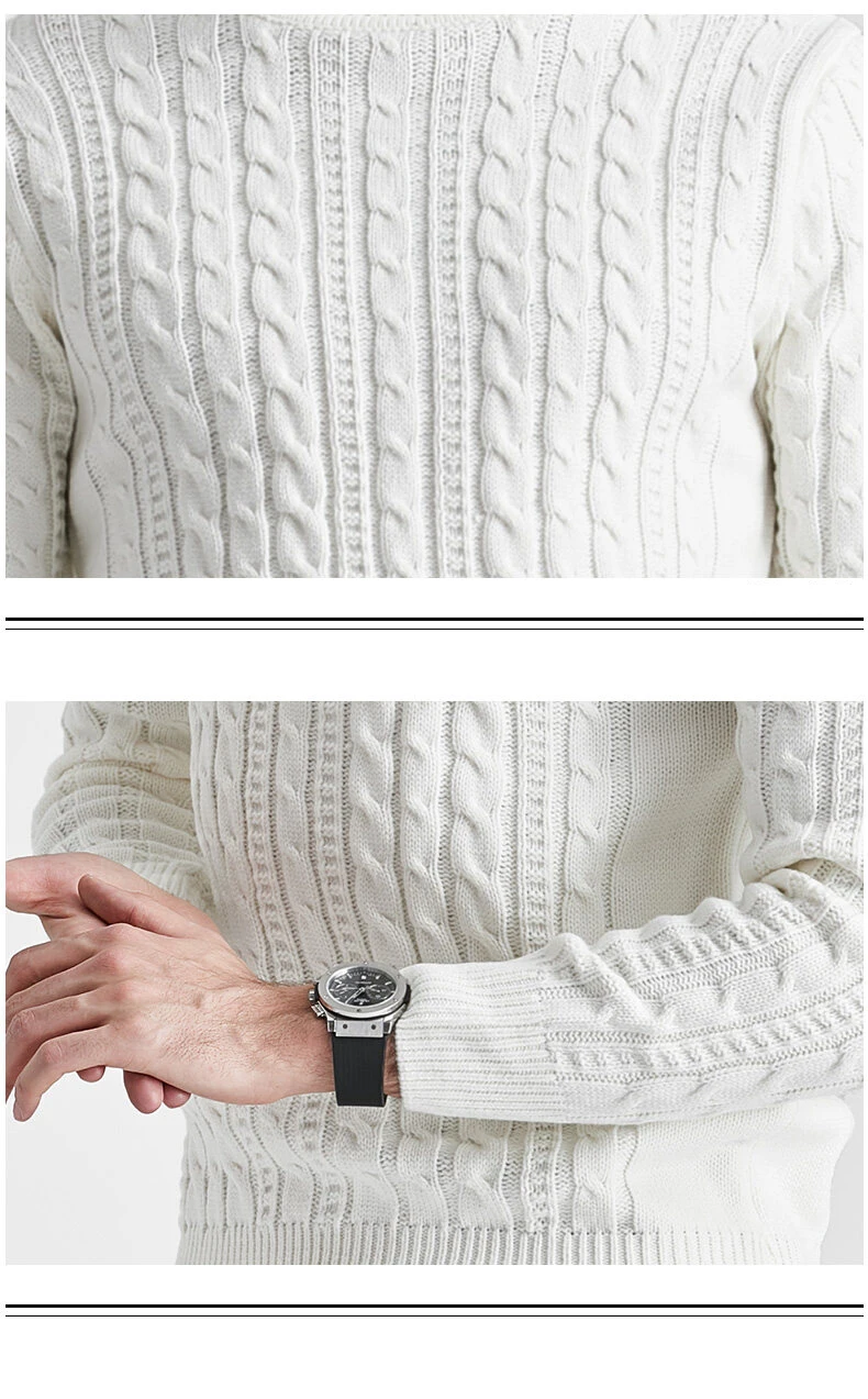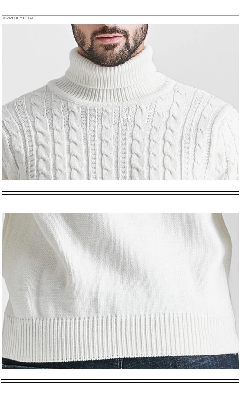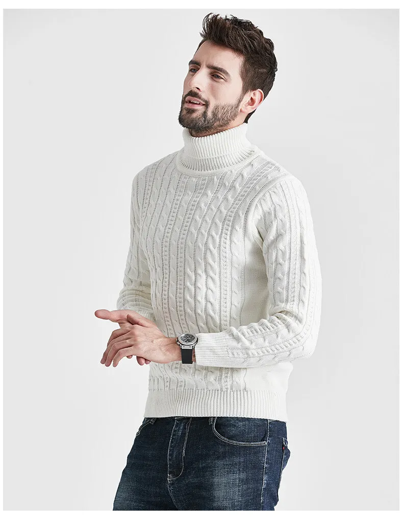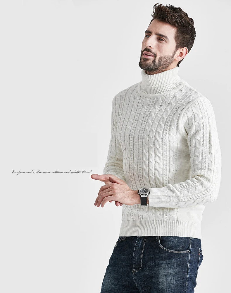 Wiaofellas High Neck Sweater Men Turtleneck Pullover Sweater Knitted Men Fashion Clothing Solid Color Warm Jumpers Pure Color White