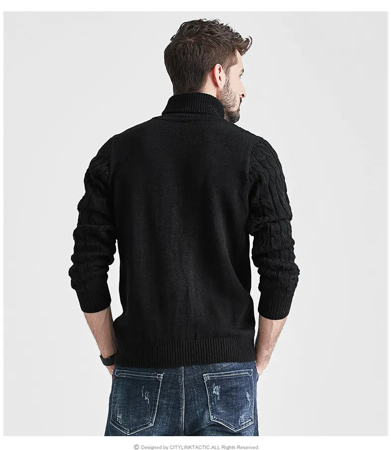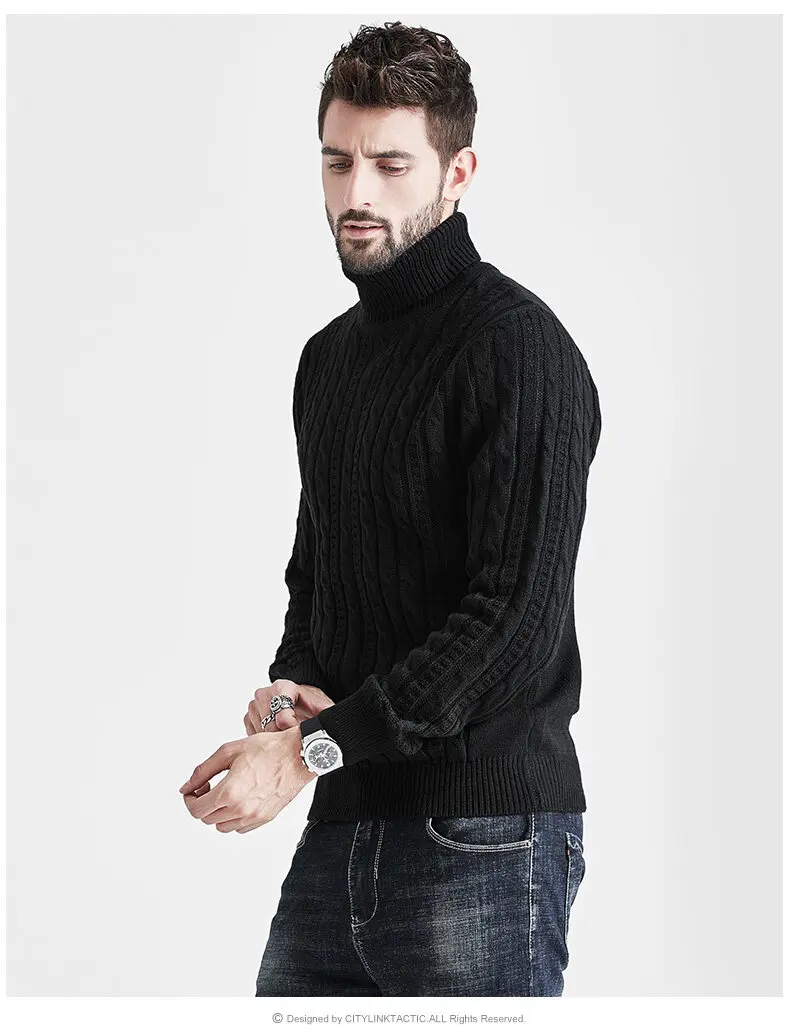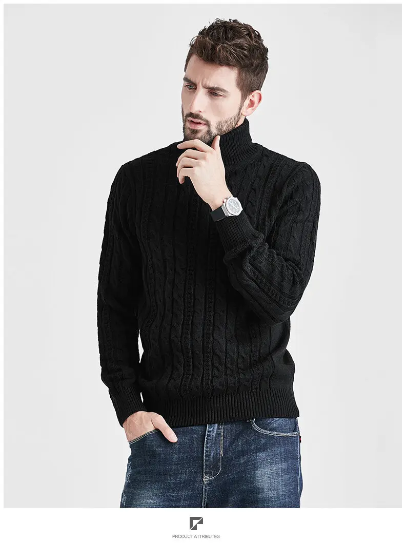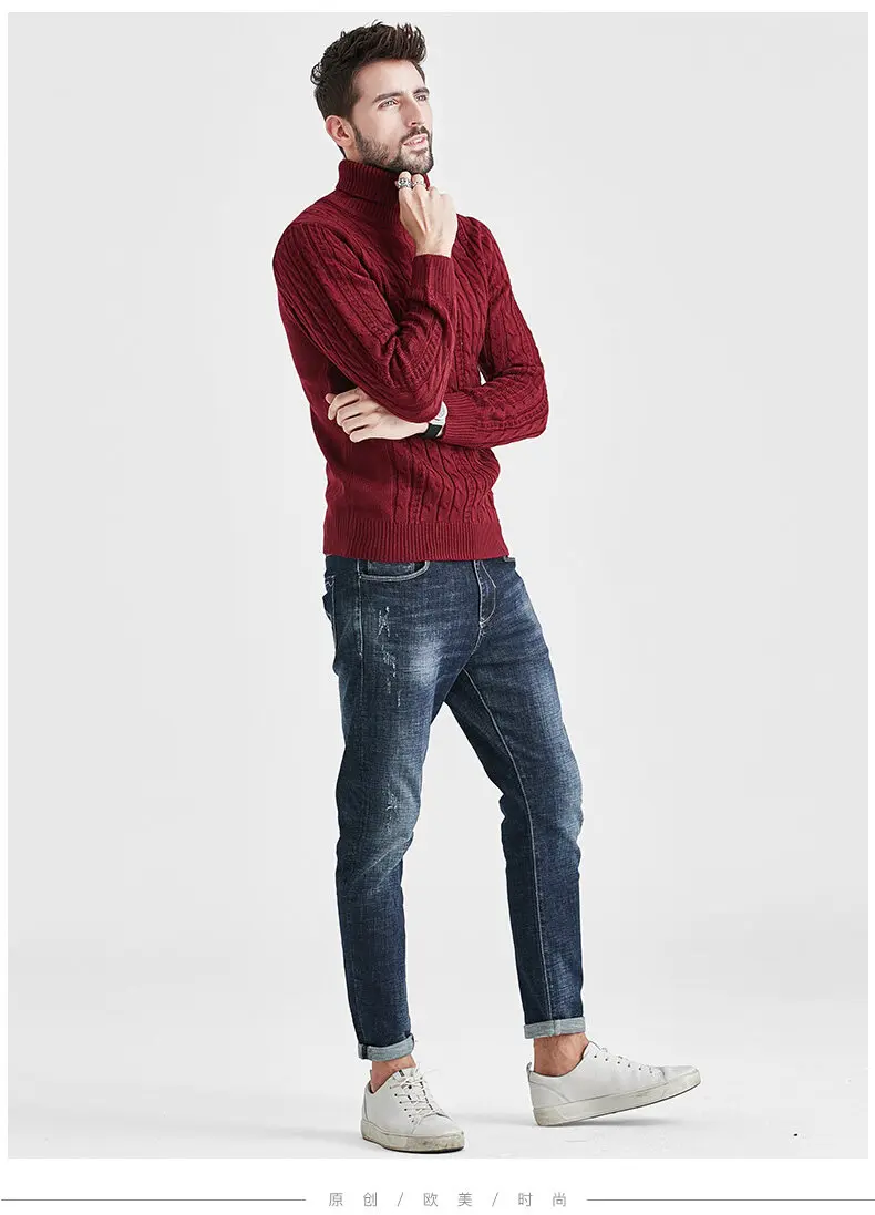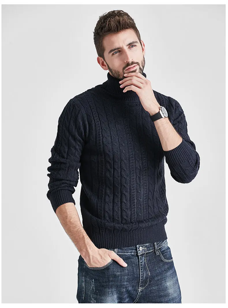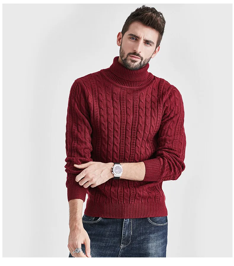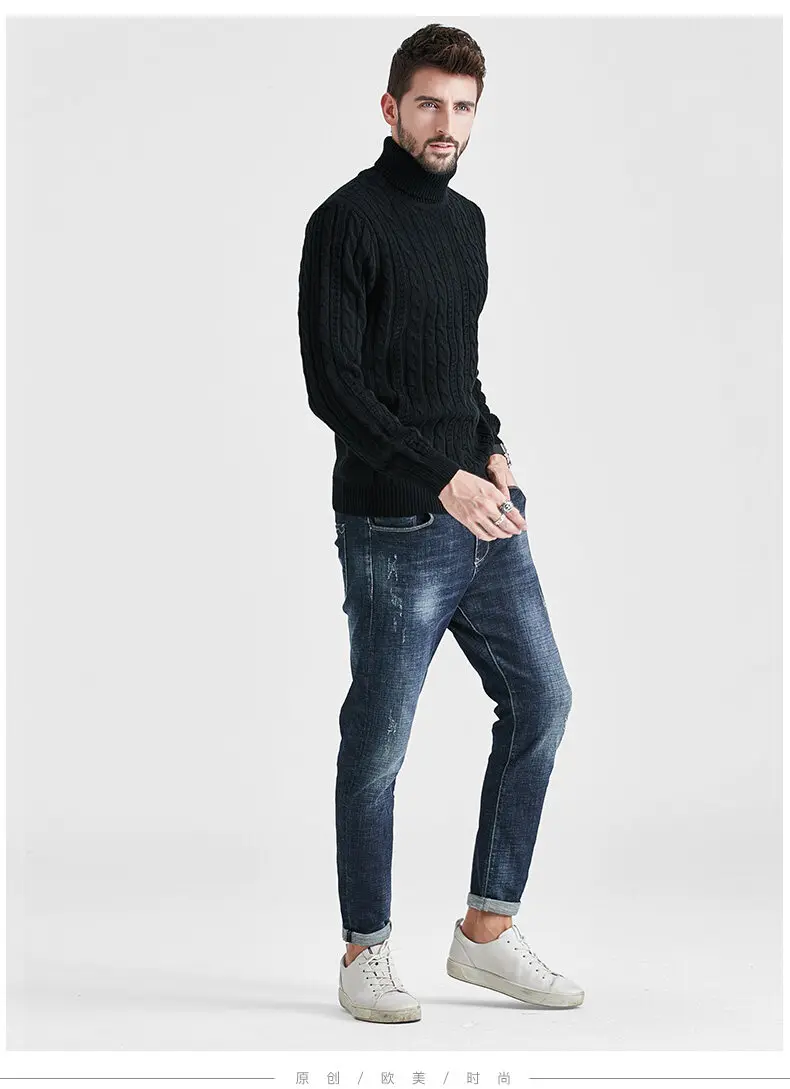 Wiaofellas High Neck Sweater Men Turtleneck Pullover Sweater Knitted Men Fashion Clothing Solid Color Warm Jumpers Pure Color White